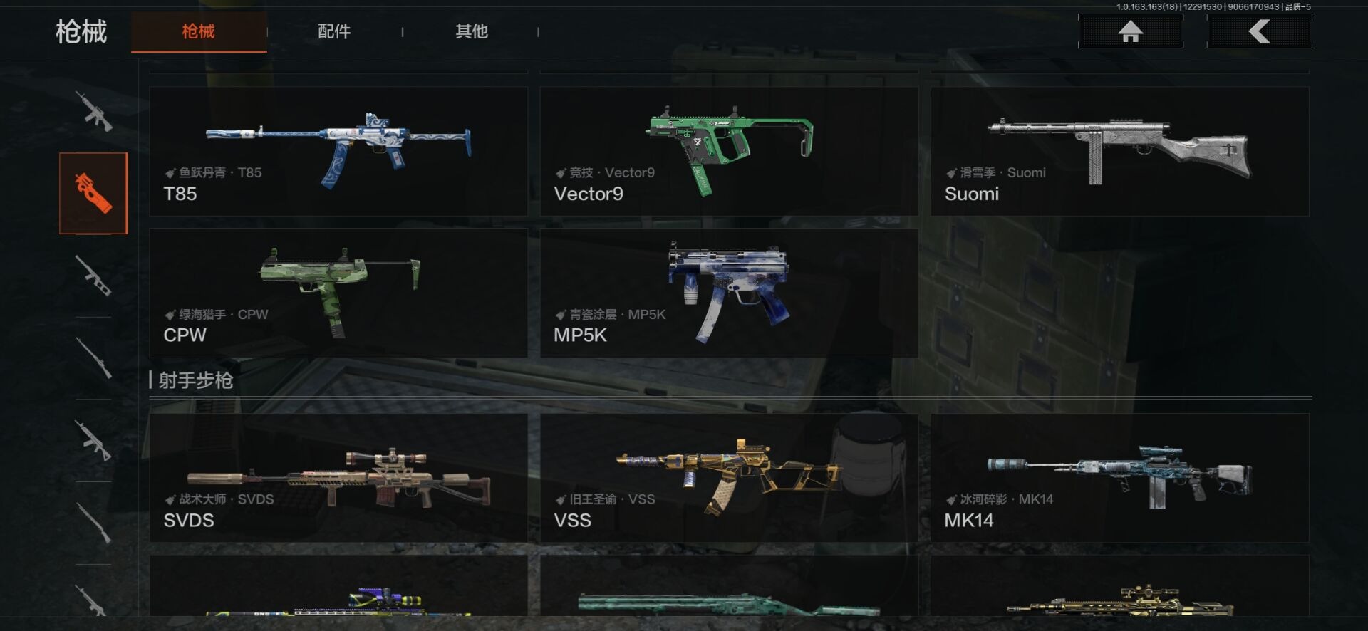 库存价值212.0 8近战武器 5金套装 8金枪皮 可修改实名 【柯恩币数量】:3145【角色装扮(金)】:罗尔夫,使徒·欧瑞恩,朱迪·阿尔瓦雷兹,火绒·塔莉娅,脉冲·马克西姆【近战武器】:空腔战术,苍穹利爪,收割者,S-07折刀,热能武器·补牢,赢家匕首,寒牙手刺,工兵铲【金色枪皮】:旧王圣谕·QBZ191,棱光裂变·QBU191,战术大师·QBZ192,告丧夜曲·AUG,告丧夜曲·AR57,利齿风暴·MPX,旧王圣谕·VSS,包络战术·AKM【紫色枪皮】:狂怒荣耀·Vector9,高塔之内·P90,武侍·SJ16,棱光裂变·AK74N,利齿风暴·T03,利齿风暴·T79,棱光裂变·AK102,棱光裂变·ACE31,棱光裂变·莫辛,赢家·F2000,饰金·MP5,战术大师·SVDS,旗帜脉冲·M110,战术大师·Suomi,粉绒臻选·AR30,鱼跃丹青·T85,伦琴计量·SCAR,伦琴计量·T951,边缘矢量·AX50,幻域莎绫·M4A1,典礼武备·MCX,禁止访问·UMP45