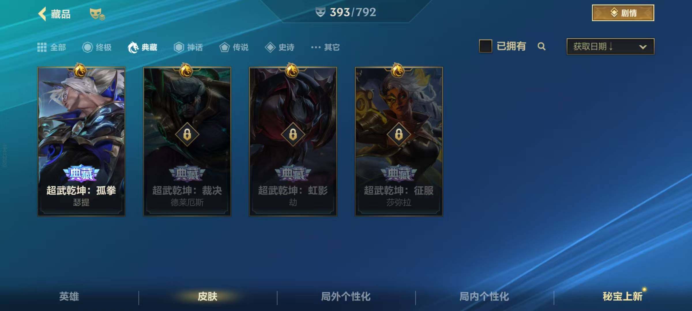 安卓Q区:可二次实名 英雄132 皮肤324 1典藏4神话42传说164史诗 璀璨钻石Ⅰ