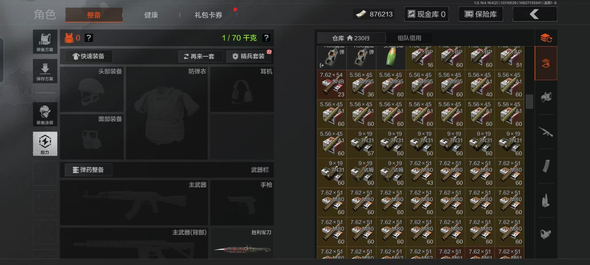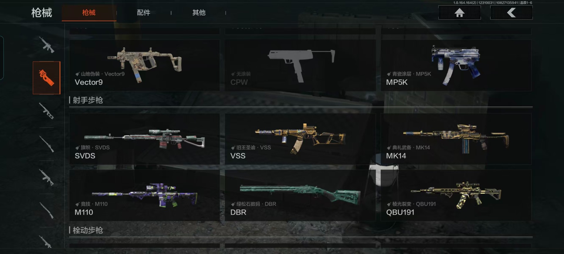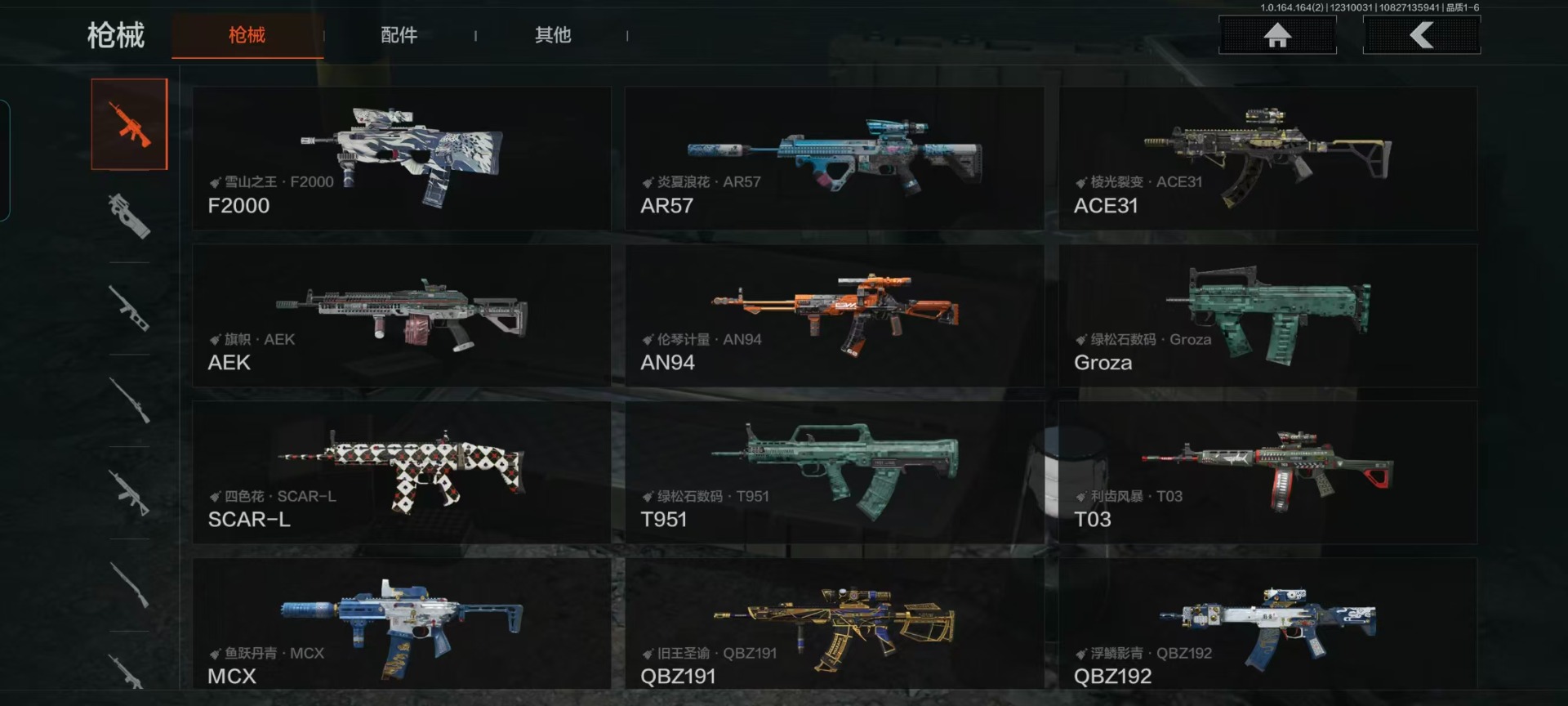 AQ426安Q-1金枪皮-仓库价值:17.3M 科恩币:10025K-无二次-【金枪皮】:战术大师·AN94 【枪皮】:玄墨披挂·MDR 雪山之王·F2000 骑士之剑·Groza 虎纹·FAMAS 骑士之剑·SCAR-L 森林迷彩·T951 涙鸦ㆍM870 营房暖冬·USAS12 无声暗月·MP5 禁止访问·UMP45