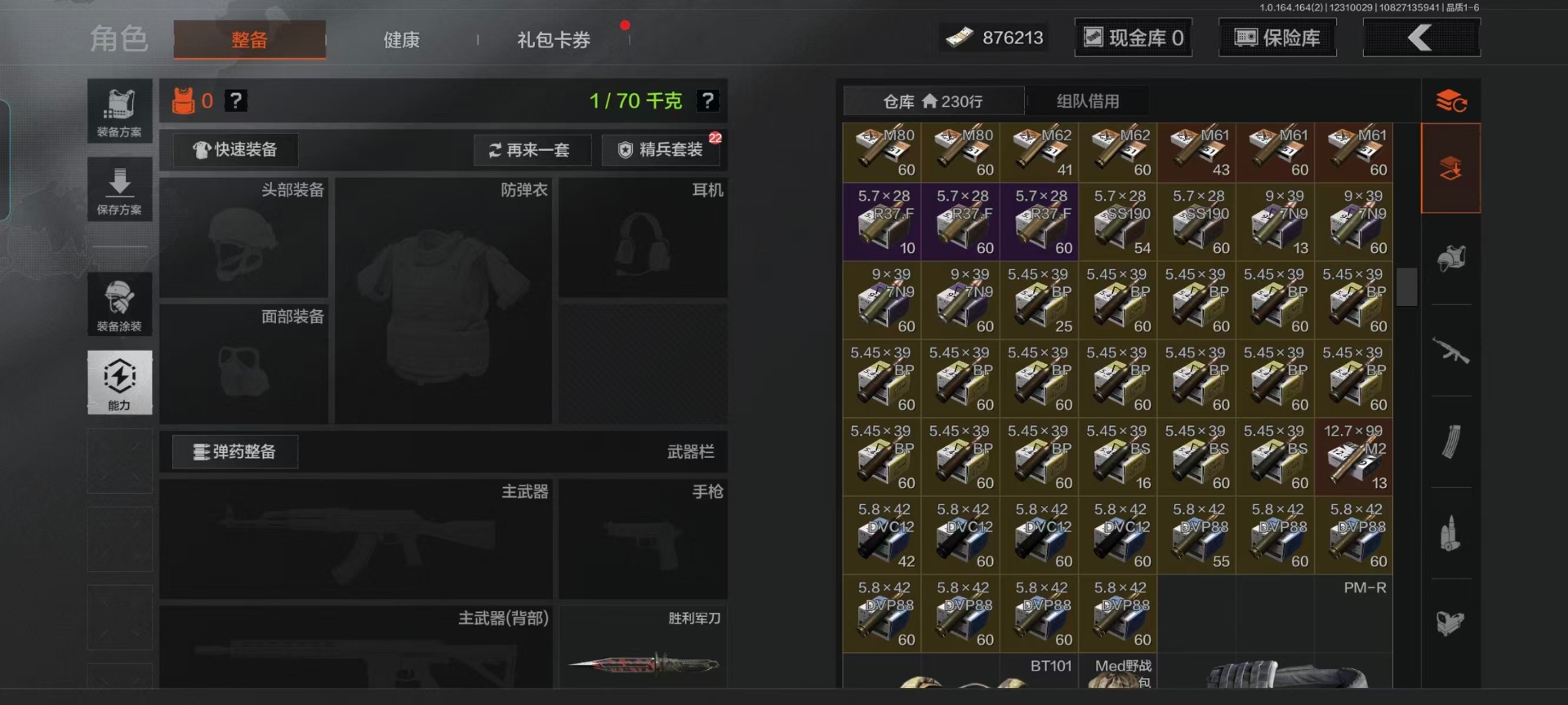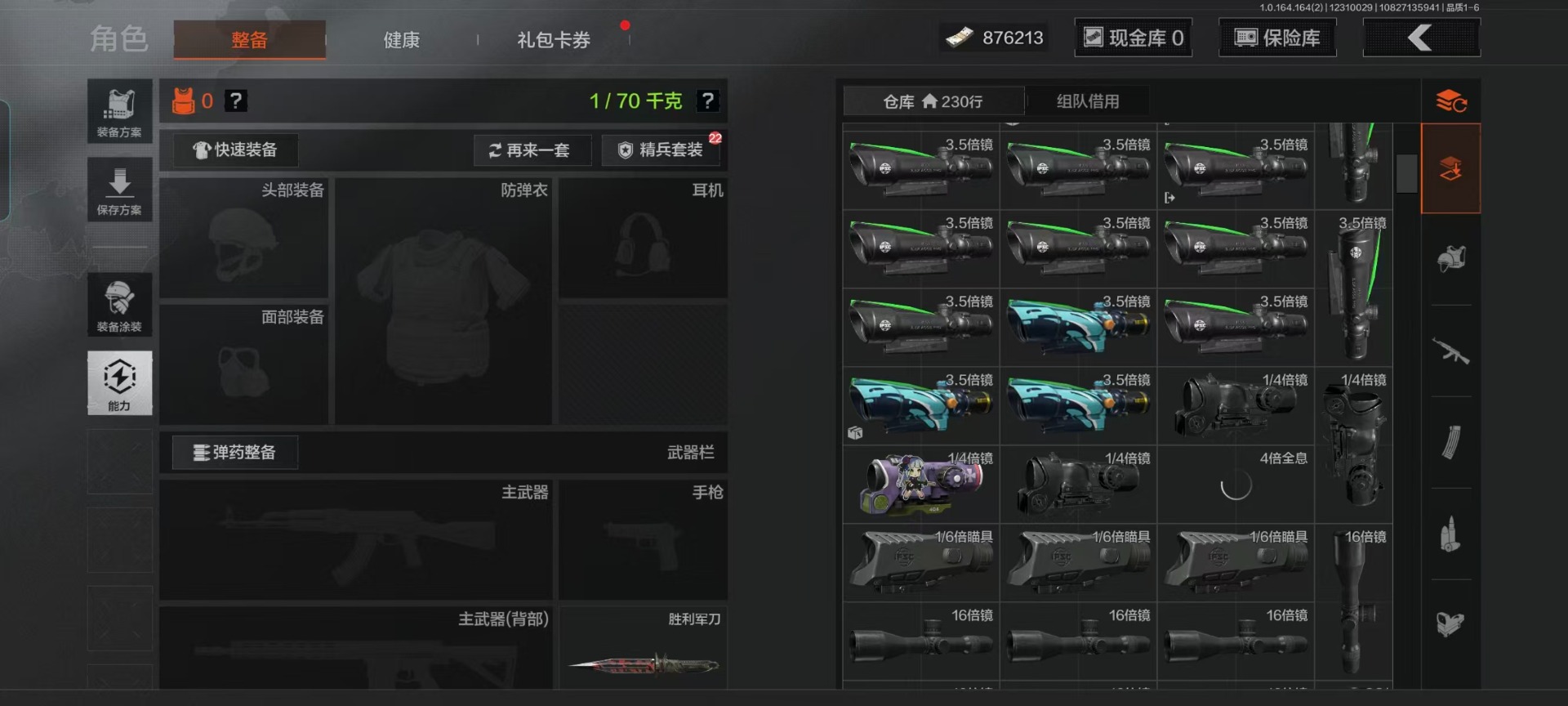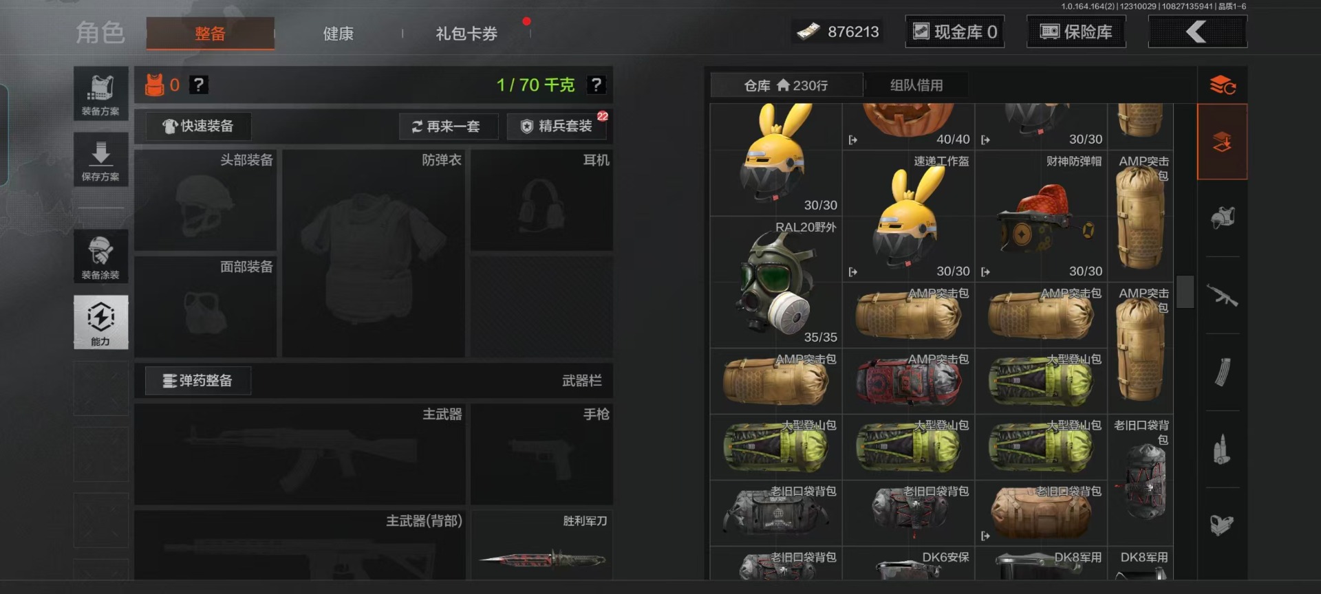 AQ426安Q-1金枪皮-仓库价值:17.3M 科恩币:10025K-无二次-【金枪皮】:战术大师·AN94 【枪皮】:玄墨披挂·MDR 雪山之王·F2000 骑士之剑·Groza 虎纹·FAMAS 骑士之剑·SCAR-L 森林迷彩·T951 涙鸦ㆍM870 营房暖冬·USAS12 无声暗月·MP5 禁止访问·UMP45
