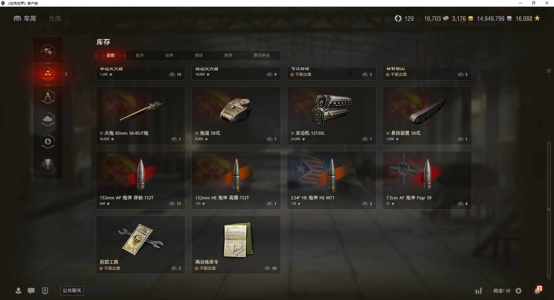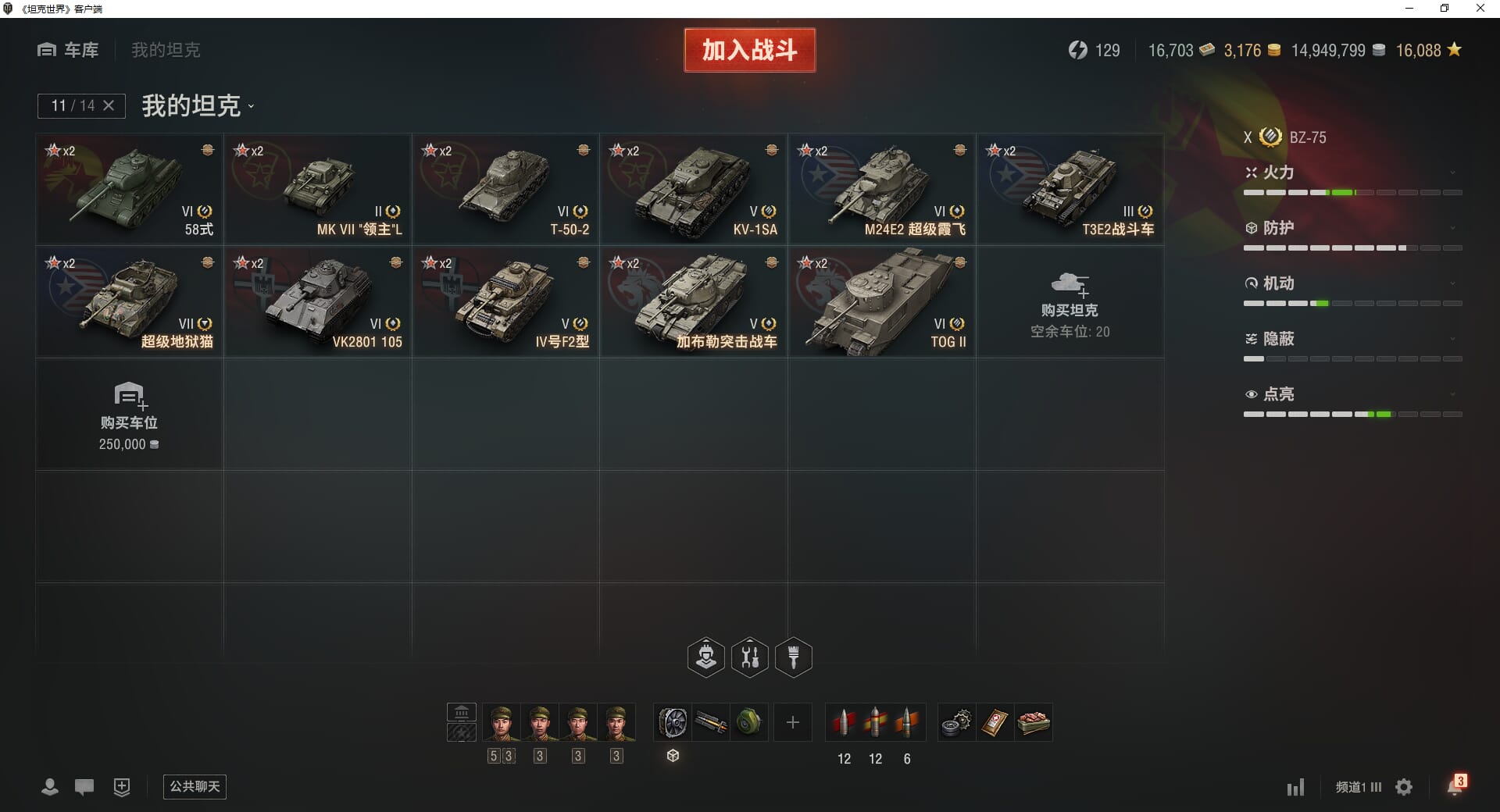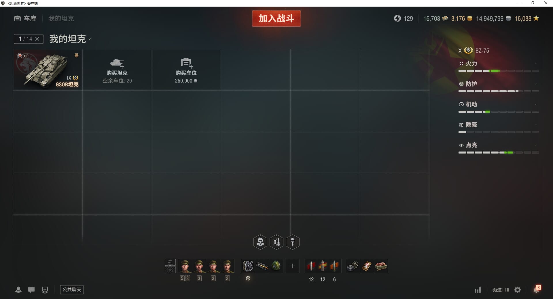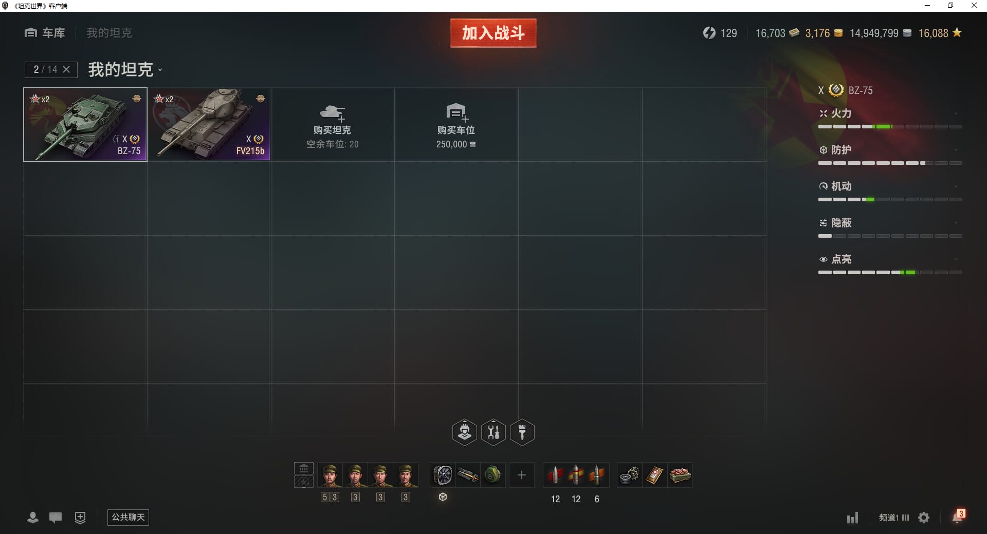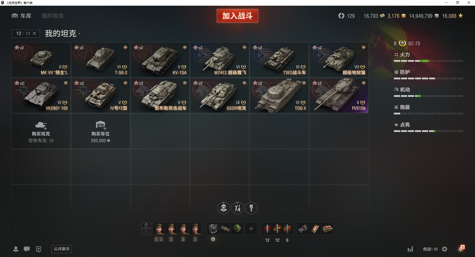 TD1238/无绑定-绝对安全/全部坦克14/金币坦克12/10级2/9级1/10级/BZ-75/FV215b/9级/GSOR坦克/乘员112/债券16793/金币3176/银币1494w/全局16088