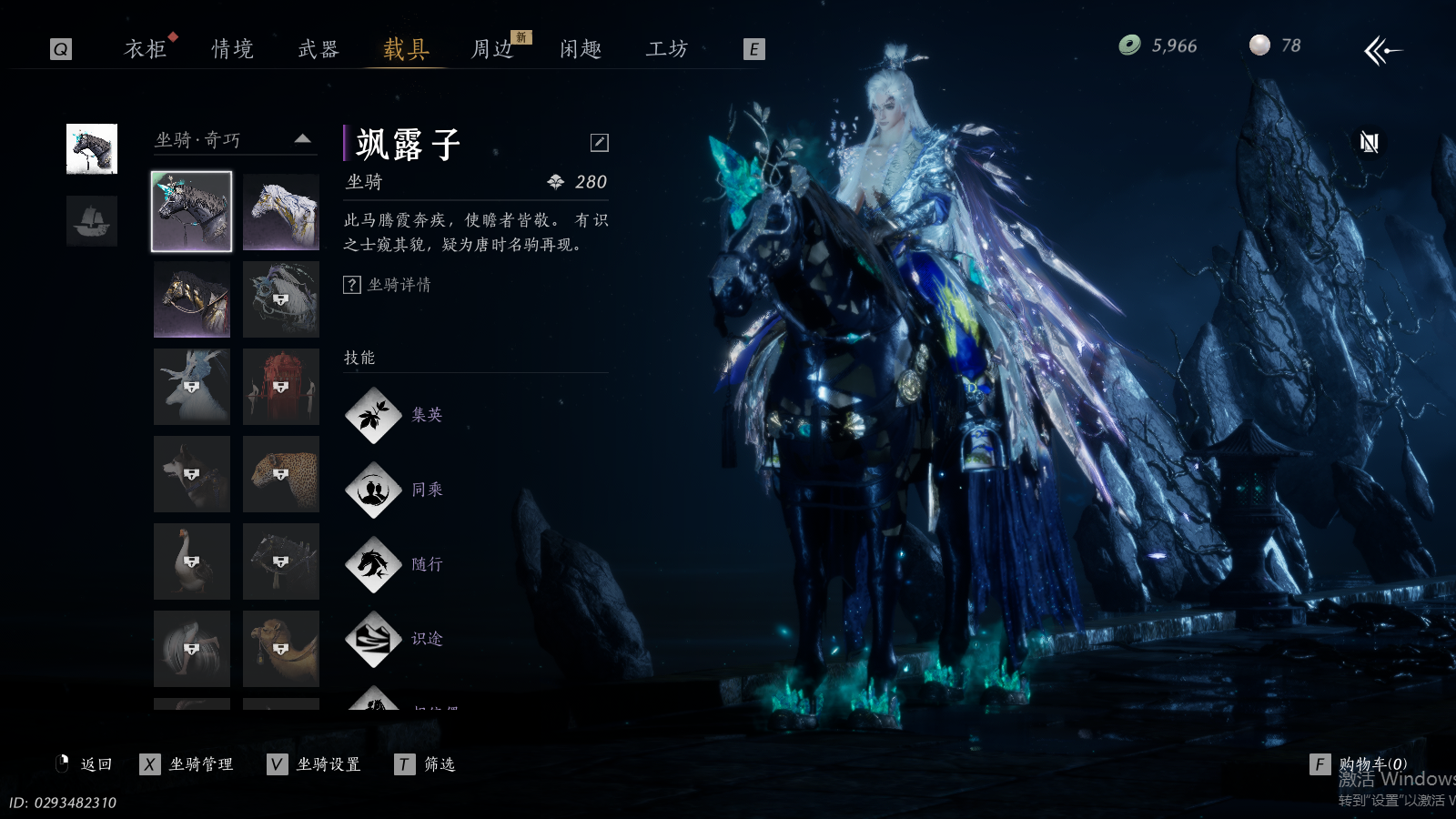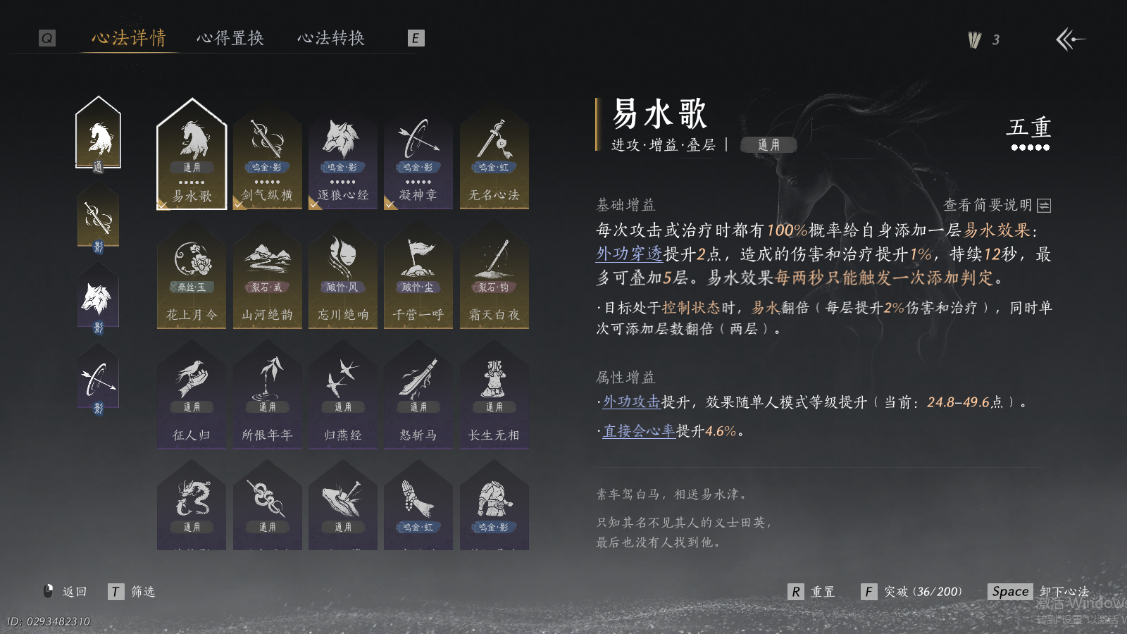 【不可封装陌刀,青丘千岁,瑞鹤仙,戍魂丹心武学,天龙舞火鳞跃天倾奇术,4套258时装,心法6665】 风华值39286 武林造诣(鹅)35775 已用八音窍数量4 未用八音窍数量0 等级100 角色性别【文本】女 【绝境】 【无换绑CD】 【未绑定或可换绑】 【未注册】 【不支持人脸包赔】 【女】 【无】 【ios】 【是】 【是】 【否】 稀有套装2 稀有武器外观1 稀有武学奇术3 套装4 稀有套装:瑞鹤仙,青丘千岁; 稀有武器外观:藏音·万古悲尘; 稀有武学奇术:鳞跃天倾,天龙舞火,戍魂丹心; 套装:白龙,剑影藏心,穿云游雪,蜀戏春;