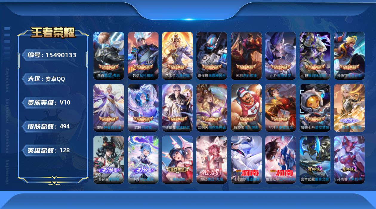 商品描述:[15490133]Xr44799-可修改-安卓Q-V10-最强王者段位-128英雄-494皮肤-15典藏皮肤-1典藏英雄-5无双-4星元-2珍品传说-44传说-160史诗【英雄全皮】:刘禅全皮,刘邦全皮,孙权全皮,娜可露露全皮,雅典娜全皮,李信全皮,猪八戒全皮,曜全皮,蒙犽全皮,澜全皮,戈娅全皮,影全皮【荣耀典藏】:武则天英雄,孙悟空全息碎影,武则天倪克斯神谕,夏侯惇无限飓风号,小乔天鹅之梦,鲁班七号星空梦想,芈月大秦宣太后,程咬金活力突击,李白鸣剑曳影,诸葛亮星域神启,花木兰九霄神辉,关羽赤影疾锋,铠银白咏叹调,貂蝉幻阙歌,韩信弑枪猎影,虞姬神鉴启示录【无双皮肤】:妲己青丘九尾,瑶真我赫兹,小乔时之魔女,公孙离离恨烟,曜器灵螭龙剑【珍品传说】:马可波罗怪盗基德,鲁班七号江户川柯南【传说皮肤】:后羿神树通天,澜愿照九州拓,桑启鸣野蒿,孙尚香乘龙问璇玑,孙策乘龙淬吴钩,赵云乘龙铭钟鼎,马超琥珀纪元,澜逐花归海,艾琳觅芳踪,宫本武藏惊梅引,东皇太一灼幽烈阳,澜电玩雷克斯,伽罗炽翼辉光,曜山海苍雷引,李信山海炽霜斩,李白诗剑行,百里守约碎云,娜可露露前尘镜,后羿无尽星芒,马超无双飞将,大乔挚爱花嫁,孙策挚爱之约,孙策末日机甲,孙尚香异界灵契,赵云淬星耀世,曜李逍遥 ,诸葛亮时雨天司,铠绛天战甲,镜炽阳神光,虞姬启明星使,孙悟空零号赤焰,关羽武圣,曜云鹰飞将,李信一念神魔,伽罗太华,貂蝉猫影幻舞,干将莫邪久胜战神,虞姬云霓雀翎,花木兰冠军飞将,貂蝉仲夏夜之梦,孙尚香末日机甲,宫本武藏地狱之眼,吕布天魔缭乱,狄仁杰超时空战士【限定皮肤】:白起狰,公孙离离恨烟,蒙犽顽岩魄,蔡文姬夏日便利店,虞姬夏日便利店,姜子牙天穹之誓,杨戬破阵退雄兵,狄仁杰阴阳师,虞姬凯尔特女王,赵云皇家上将,墨子神迹守卫,墨子降魔,嬴政优雅恋人,嬴政白昼王子,孙尚香蔷薇恋人,孙尚香异界灵契,鲁班七号狮舞东方,鲁班七号乒乒小将,庄周高山流水,阿轲迷踪丽影,钟无艳超时空战士,扁鹊奇幻香踪,白起夜都怪侠,芈月幻夜卜梦,吕布天魔缭乱,吕布猎兽之王,吕布御风骁将,周瑜赤莲之焰,元歌云间偶戏,元歌无心,夏侯惇朔风刀,夏侯惇匿光决锋者,甄姬落雪兰心,曹操烛龙,曹操天狼征服者,马可波罗逐梦之星,马可波罗暗影游猎,马可波罗山海玄木吟,狄仁杰魔术师,狄仁杰万华元夜,达摩星际陆战队,达摩沙漠行僧,项羽海滩派对,项羽霸王别姬,老夫子