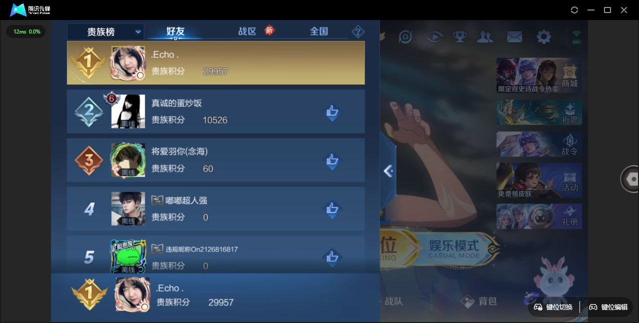营地号370453389-【QQ(安卓)】贵族7-贵族积分3万-127英雄-248皮肤-100铭文