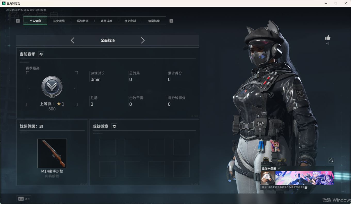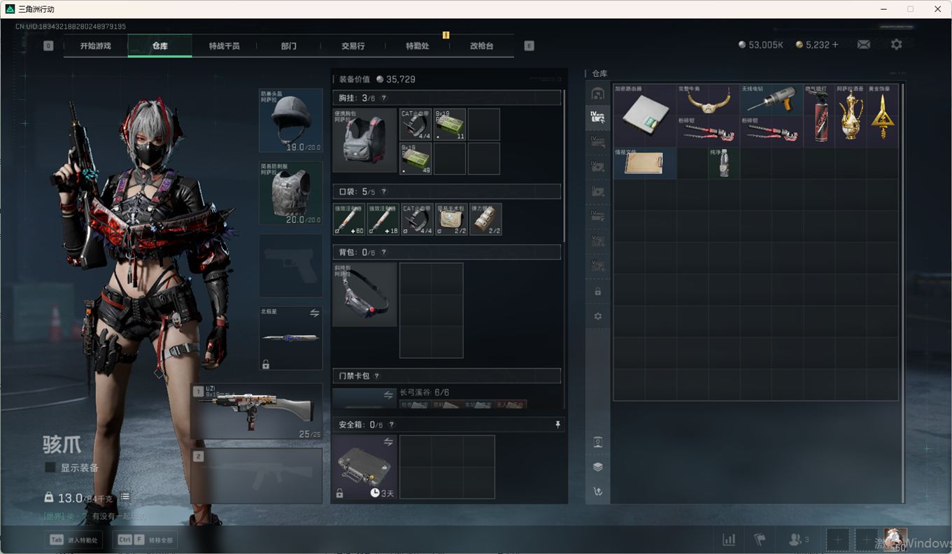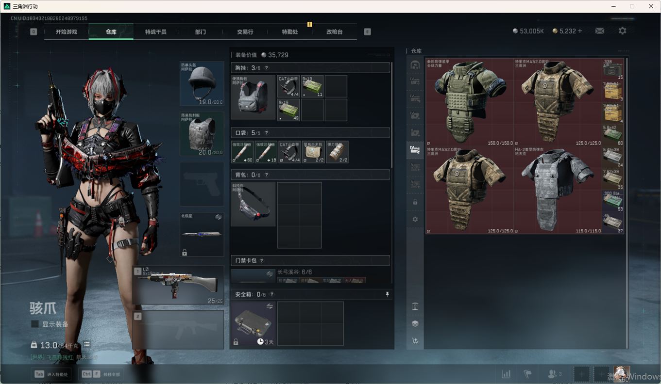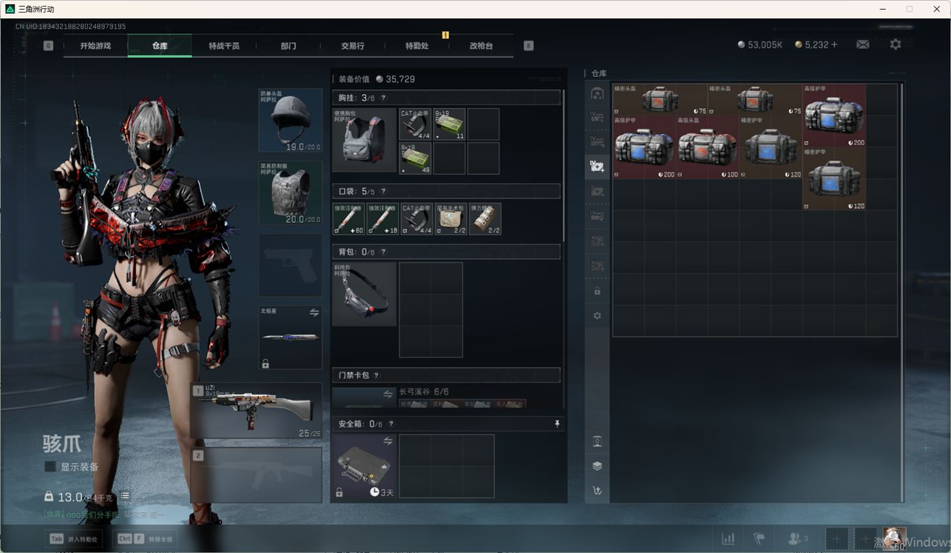 商品描述:N6317/微信区/哈夫币5300W/总资产185.7M/行动等级60/战场等级31/烈火冲天赛季高级安全箱3X2/近战/北极星/黑海/黑鹰/干员/红狼蚀金玫瑰/无名夜鹰/蜂医送葬人无题密令/露娜黑天际线/骇爪维什戴尔/骇爪水墨云图/枪皮/腾龙突击步枪气象感应/极品S/M4A1突击步枪阿米娅/CAR15突击步枪阿米娅/勇士冲锋枪能天使午夜邮差/725双管散弹枪送葬人无题密令/R93狙击步枪维什戴尔/复合弓黑天际线/找回包赔