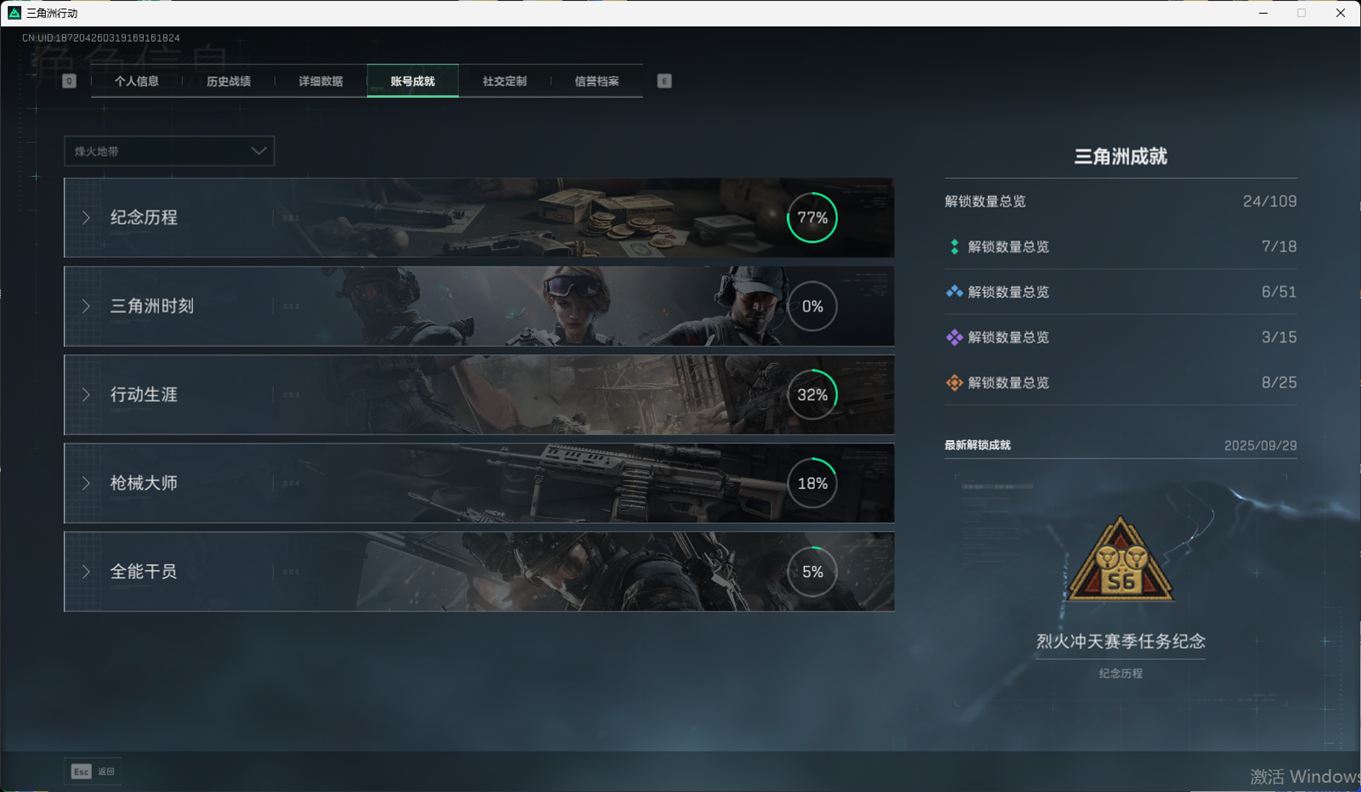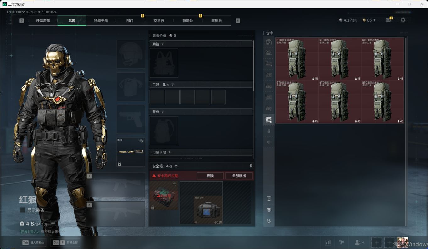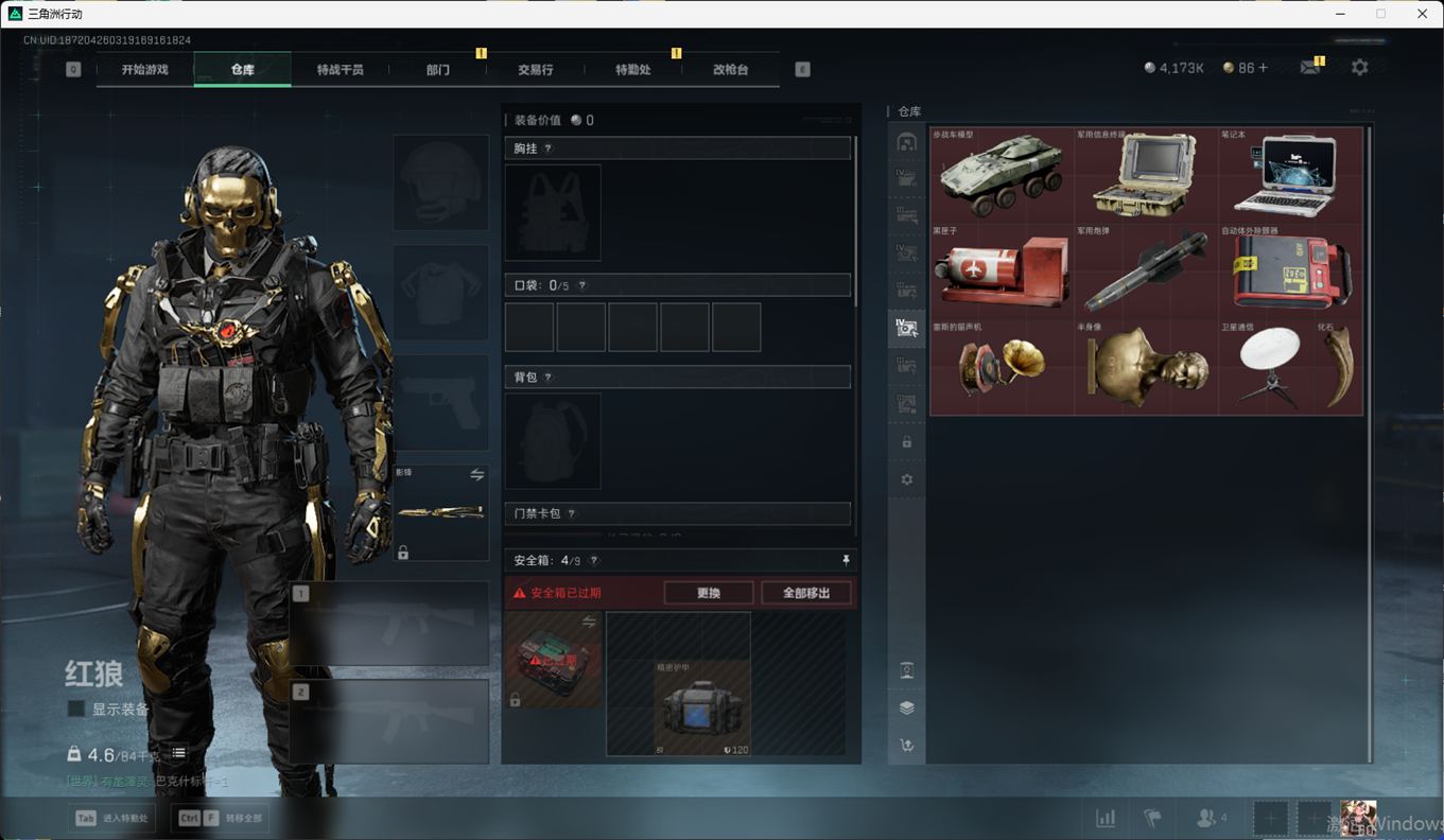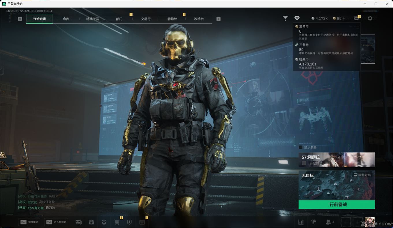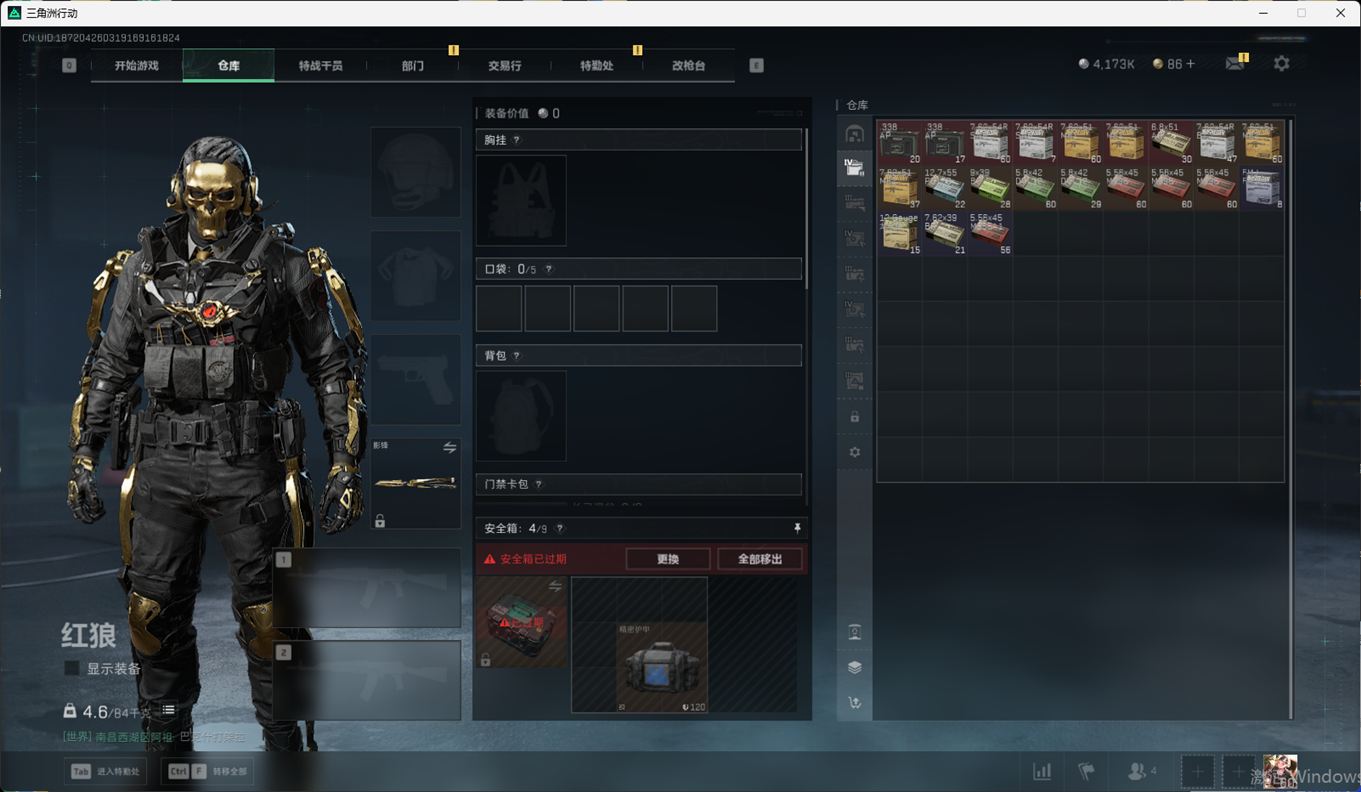 总资产:59.8M,哈夫币:260W,武器皮肤:25,钻石,战场60级:【安全箱】基础安全箱;【特勤处等级】仓库LV.8,靶场LV.7,训练中心LV.7;【干员皮肤】蜂医送葬人无题密令,无名夜鹰,红狼蚀金玫瑰;【近战武器】近战武器-北极星,近战武器-黑鹰;【步枪皮肤】M4A1突击步枪-蚀金玫瑰,M7战斗步枪-神秘艺术,SR-25射手步枪-水墨云图,ASVal突击步枪-蛇年祥瑞,AK-12突击步枪-夜鹰,K437突击步枪-北极星,CAR-15突击步枪-阿米娅,腾龙突击步枪-捞点薯条,AK-12突击步枪-特斯拉线圈,M4A1突击步枪-阿米娅,SCAR-H战斗步枪-启航,KC17突击步枪-电锯惊魂,SG552突击步枪-运动员;【冲锋枪皮肤】P90冲锋枪-神秘艺术,QCQ171冲锋枪-北极星,SMG-45冲锋枪-骑士,UZI冲锋枪-特斯拉线圈,SR-3M紧凑突击步枪-特斯拉线圈,勇士冲锋枪-能天使-午夜邮差;【狙击步枪皮肤】AWM狙击步枪-捞点薯条;【霰弹枪皮肤】725双管霰弹枪-送葬人-无题密令;【轻机枪皮肤】M250通用机枪-骑士之心;【手枪皮肤】93R-捞点薯条;