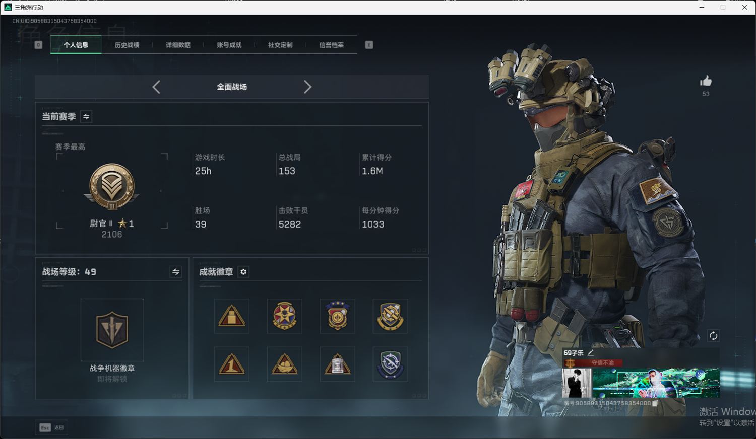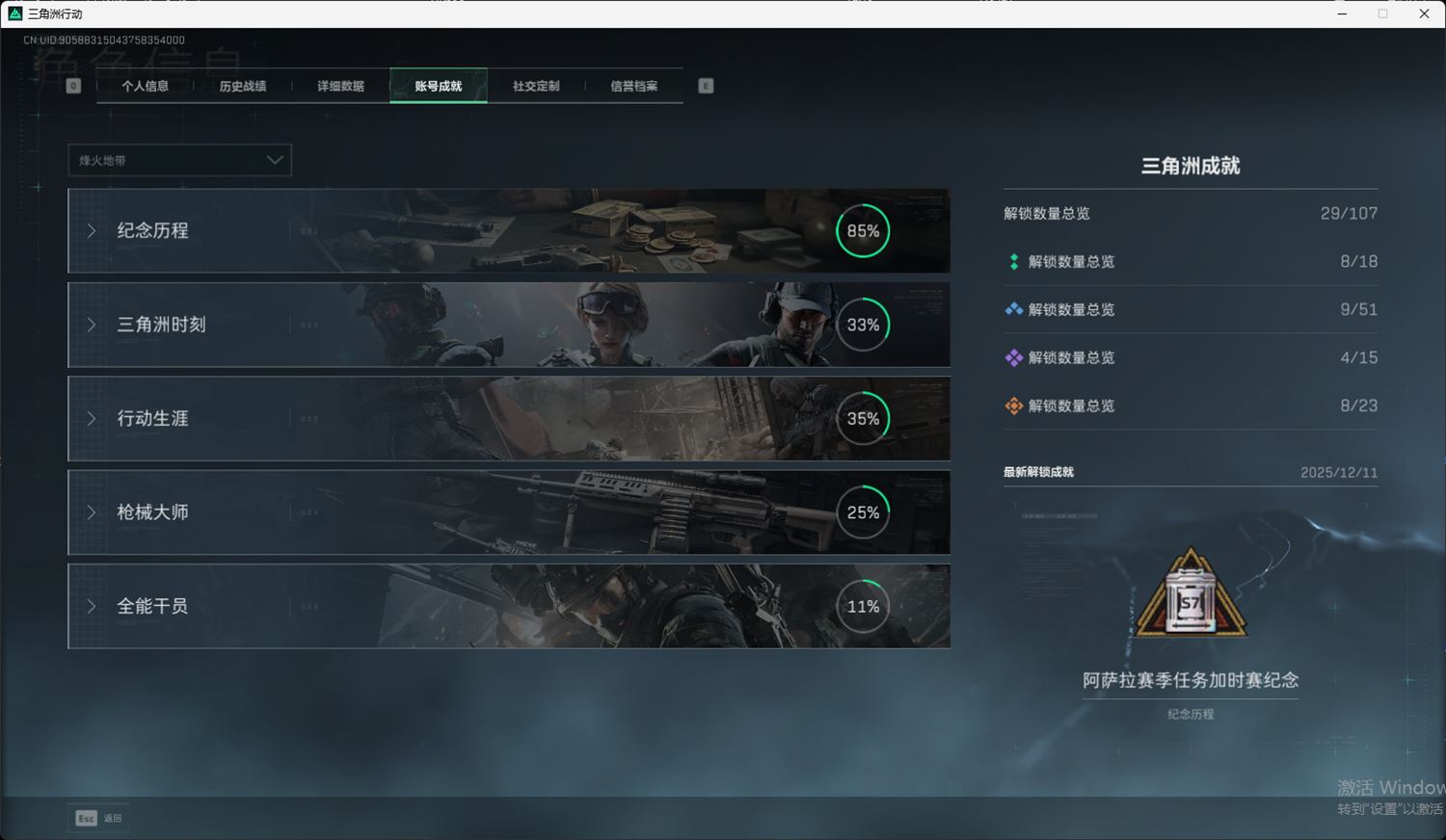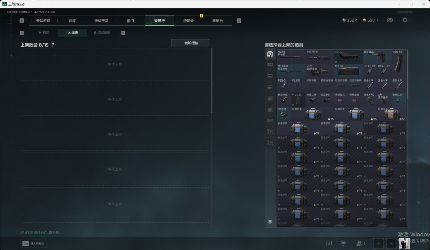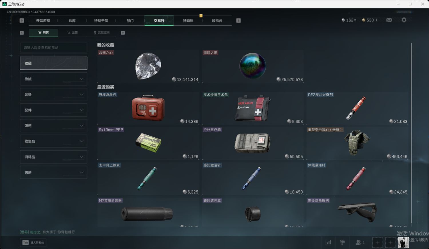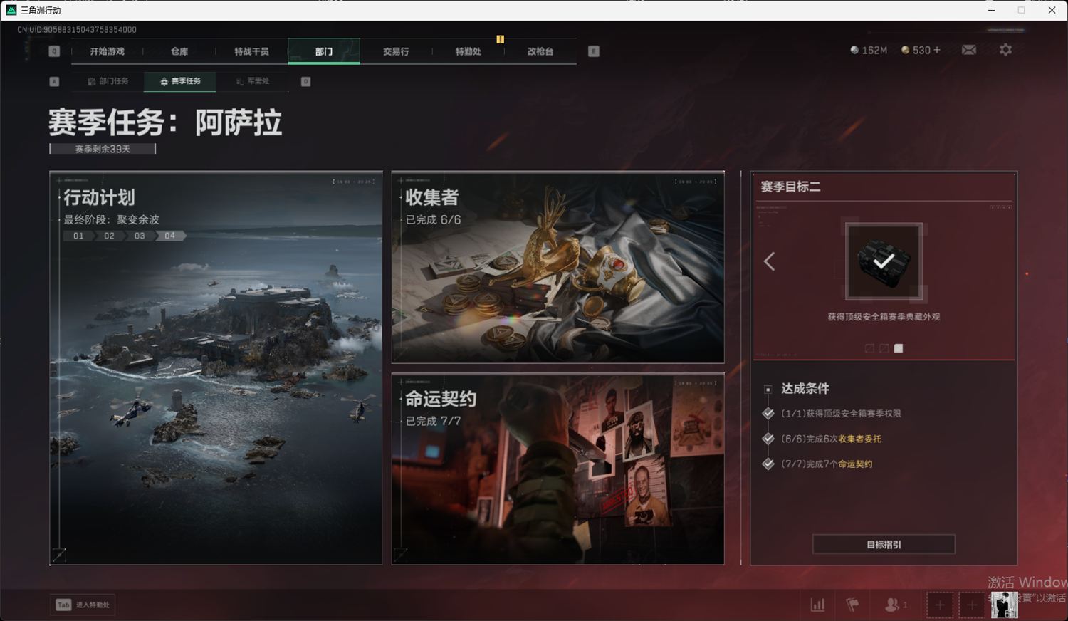 总资产:59.8M,哈夫币:260W,武器皮肤:25,钻石,战场60级:【安全箱】基础安全箱;【特勤处等级】仓库LV.8,靶场LV.7,训练中心LV.7;【干员皮肤】蜂医送葬人无题密令,无名夜鹰,红狼蚀金玫瑰;【近战武器】近战武器-北极星,近战武器-黑鹰;【步枪皮肤】M4A1突击步枪-蚀金玫瑰,M7战斗步枪-神秘艺术,SR-25射手步枪-水墨云图,ASVal突击步枪-蛇年祥瑞,AK-12突击步枪-夜鹰,K437突击步枪-北极星,CAR-15突击步枪-阿米娅,腾龙突击步枪-捞点薯条,AK-12突击步枪-特斯拉线圈,M4A1突击步枪-阿米娅,SCAR-H战斗步枪-启航,KC17突击步枪-电锯惊魂,SG552突击步枪-运动员;【冲锋枪皮肤】P90冲锋枪-神秘艺术,QCQ171冲锋枪-北极星,SMG-45冲锋枪-骑士,UZI冲锋枪-特斯拉线圈,SR-3M紧凑突击步枪-特斯拉线圈,勇士冲锋枪-能天使-午夜邮差;【狙击步枪皮肤】AWM狙击步枪-捞点薯条;【霰弹枪皮肤】725双管霰弹枪-送葬人-无题密令;【轻机枪皮肤】M250通用机枪-骑士之心;【手枪皮肤】93R-捞点薯条;