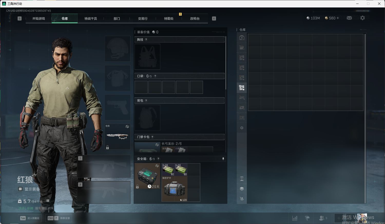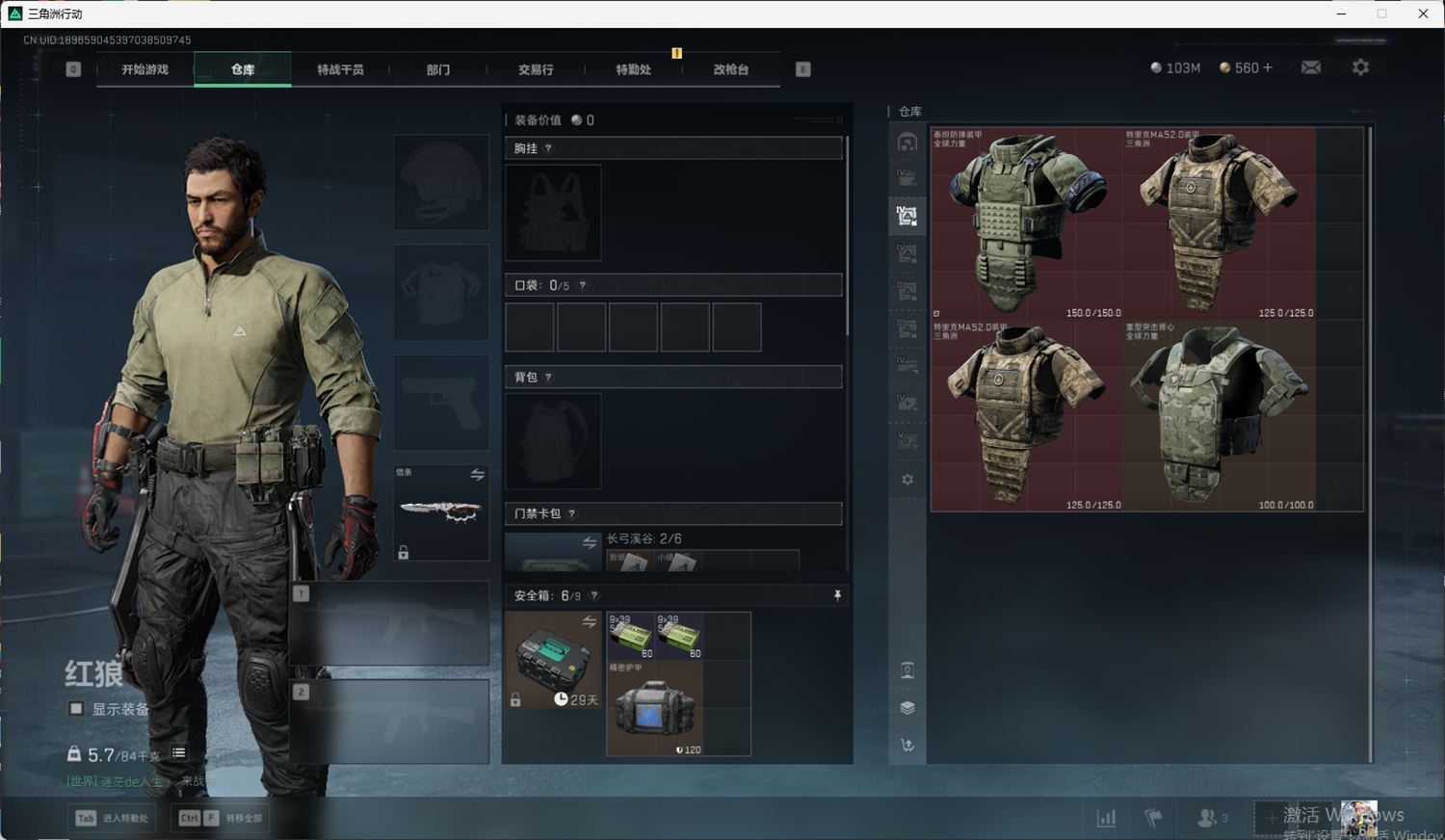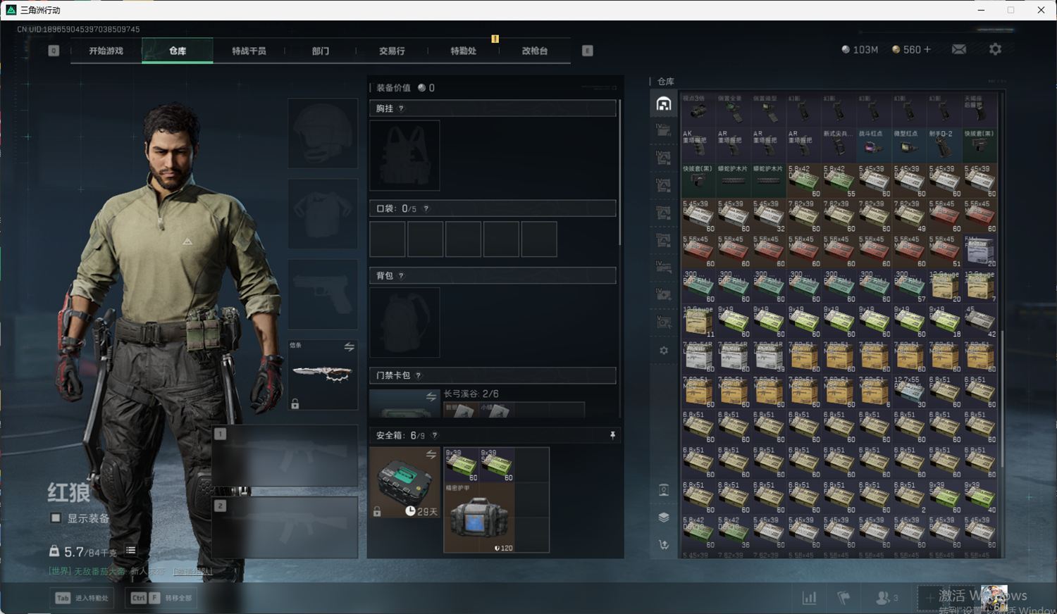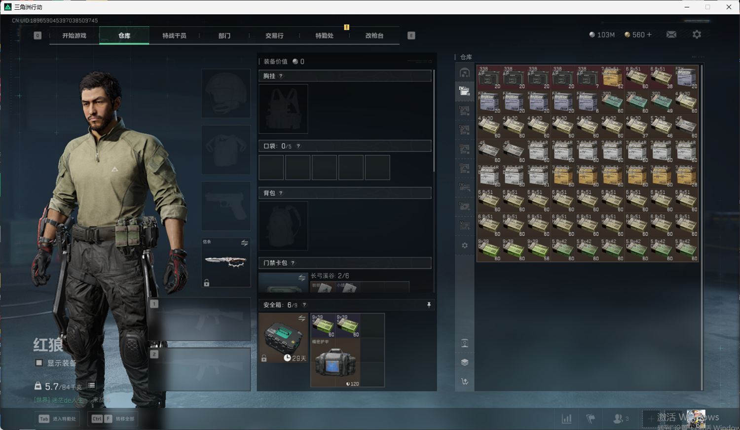 总资产:59.8M,哈夫币:260W,武器皮肤:25,钻石,战场60级:【安全箱】基础安全箱;【特勤处等级】仓库LV.8,靶场LV.7,训练中心LV.7;【干员皮肤】蜂医送葬人无题密令,无名夜鹰,红狼蚀金玫瑰;【近战武器】近战武器-北极星,近战武器-黑鹰;【步枪皮肤】M4A1突击步枪-蚀金玫瑰,M7战斗步枪-神秘艺术,SR-25射手步枪-水墨云图,ASVal突击步枪-蛇年祥瑞,AK-12突击步枪-夜鹰,K437突击步枪-北极星,CAR-15突击步枪-阿米娅,腾龙突击步枪-捞点薯条,AK-12突击步枪-特斯拉线圈,M4A1突击步枪-阿米娅,SCAR-H战斗步枪-启航,KC17突击步枪-电锯惊魂,SG552突击步枪-运动员;【冲锋枪皮肤】P90冲锋枪-神秘艺术,QCQ171冲锋枪-北极星,SMG-45冲锋枪-骑士,UZI冲锋枪-特斯拉线圈,SR-3M紧凑突击步枪-特斯拉线圈,勇士冲锋枪-能天使-午夜邮差;【狙击步枪皮肤】AWM狙击步枪-捞点薯条;【霰弹枪皮肤】725双管霰弹枪-送葬人-无题密令;【轻机枪皮肤】M250通用机枪-骑士之心;【手枪皮肤】93R-捞点薯条;