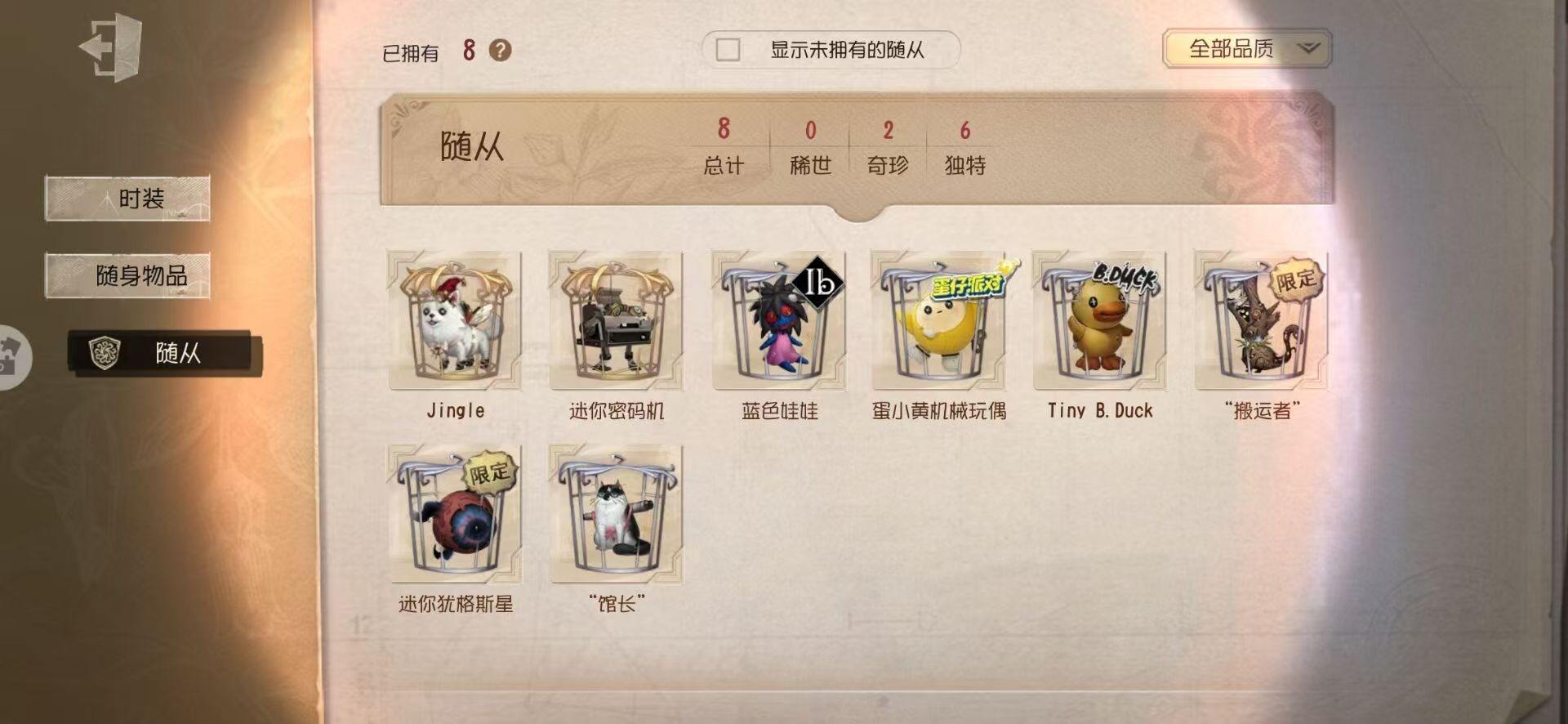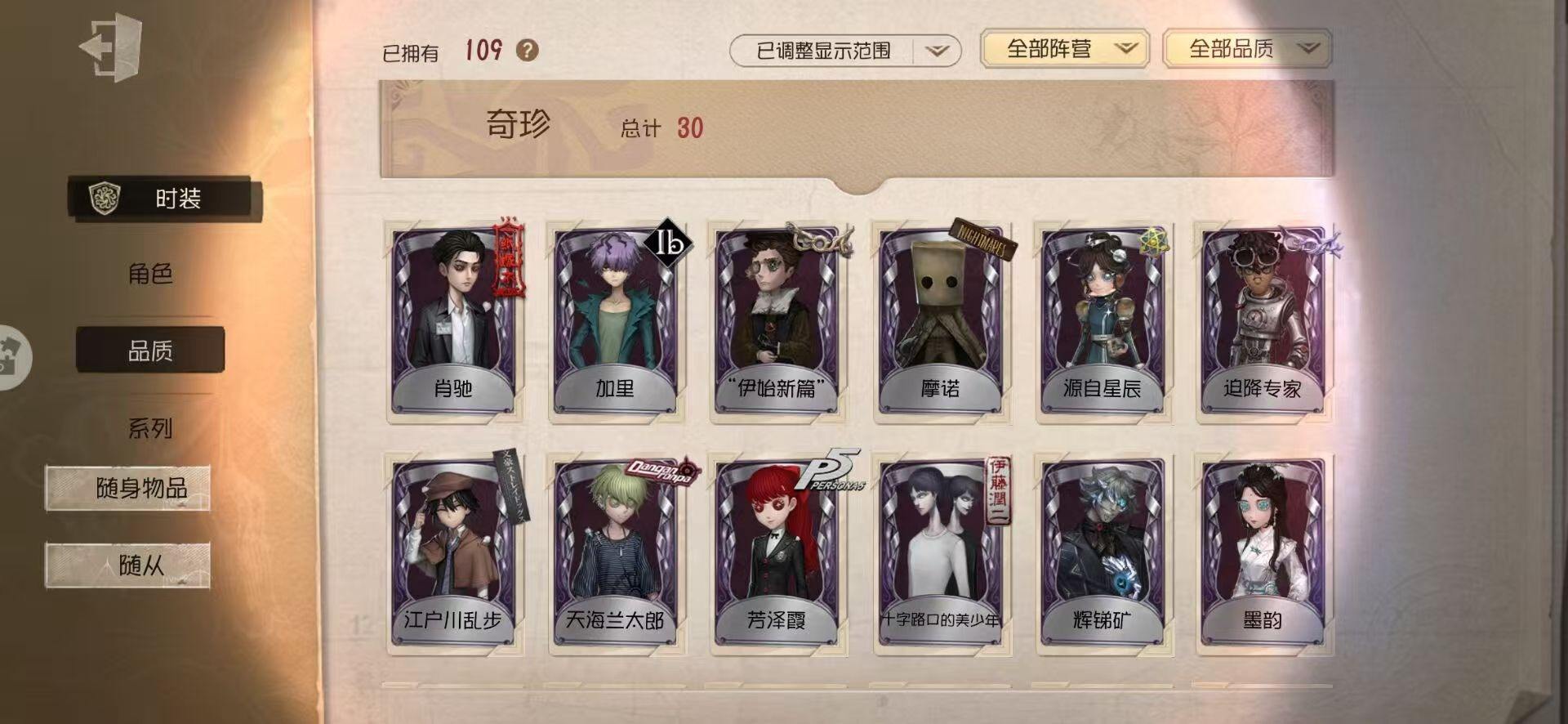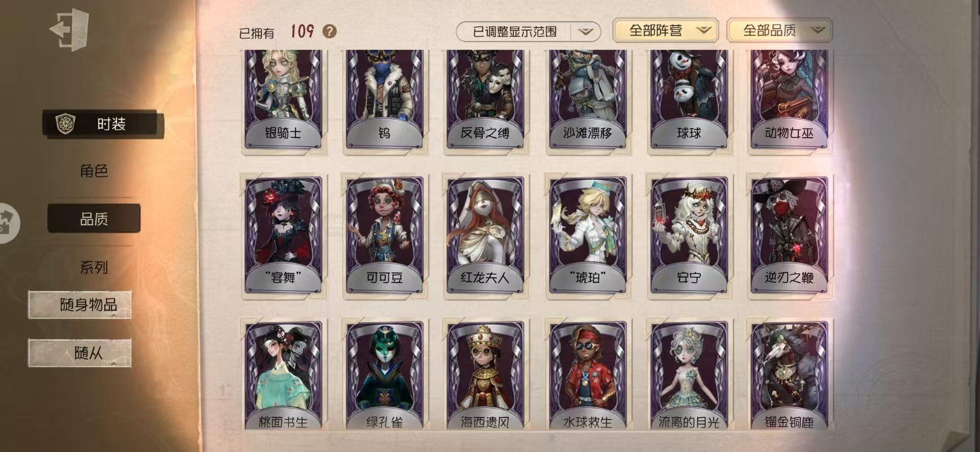 [14028274]OPPO-非账号转移 手机账号 559时装 23金皮 147紫皮 20随从 186随身物品 【时装】:勘探员-盖提亚之遗,爱哭鬼-摩诺,红蝶-壹原侑子,渔女-Chef K,小提琴家-不羁的浪漫,野人-雪原猎人,佣兵-柴郡猫,佣兵-赤井秀一,蜘蛛-花祭,“囚徒”-天海兰太郎,“小女孩”-欧律狄刻,调香师-提炼师,记者-伊布,医生-司药,雕刻家-善忘的海马体,记者-华生小姐,画家-掌中篆记,幸运儿-蛋小黄的好朋友,调香师-Buffy,教授-紧急运输,古董商-菌丝研究,画家-多色印刷,蜘蛛-不息载械,木偶师-义体再构,小说家-“伊始新篇”,击球手-迫降专家,空军-尼德霍格,空军-寒香舞,空军-毛利兰,机械师-不会枯萎的花,机械师-小红帽,26号守卫-蛋壳先生,爱哭鬼-点金,病患-逃罪之人,“杰克”-盛宴伯爵,红夫人-贝拉夫人,红蝶-花嫁,调香师-今夜不再,调香师-Lady K,“小女孩”-滚滚伙伴,医生-罪木蜜柑,幸运儿-苗木诚,幸运儿-拉塔托斯克,孽蜥-窃梦行者,盲女-暗金蛋糕,盲女-吉尔达,梦之女巫-川上富江,“囚徒”-蝰