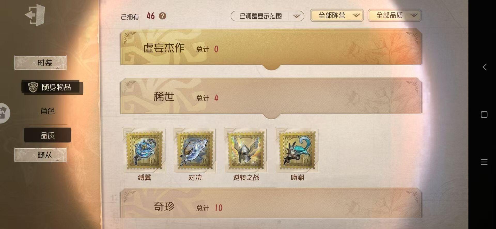 [13699808]安卓官服 手机账号 145时装 8金皮 37紫皮 12随从 37随身物品 【时装】:歌剧演员-幕外之音,作曲家-幽灵帆,爱丽丝·德罗斯-片刻闲暇,渔女-Chef K,调香师-提炼师,咒术师-噩之牙,作曲家-澄明的理性,骑士-Mentor K,骑士-艺术品商人,园丁-郁金香之梦,医生-司药,红蝶-硫火,调香师-Buffy,医生-永生花,小说家-“伊始新篇”,拉拉队员-采集速巡,宿伞之魂-桃面书生,祭司-“朝圣者”,教授-温泉煮酒,祭司-梦之使者,蜡像师-淋浴,昆虫学者-可妮兔,红夫人-女大公,画家-江户川乱步,红夫人-贝拉夫人,红蝶-白无垢,红蝶-更纱,调酒师-海盐特调,舞女-香薰桑拿,调香师-笼中之蝶,调香师-冰上舞蹈,调香师-致命温柔,调香师-今夜不再,调香师-Lady K,小提琴家-孤月骑士,医生-往昔,“使徒”-校监夫人,冒险家-爱丽丝,宿伞之魂-安魂曲【随身物品】:遗忘之花(稀世),沙滩镜(奇珍),月光(奇珍),记忆囚笼(奇珍),酩酊(奇珍),折柳(稀世),法典(奇珍),旧日征帆(奇珍),玫瑰手杖(蓝)(奇珍),长生(奇珍),焚樱(奇珍),玫瑰之下(稀世),完美人偶(稀世),星云瓶(稀世),小人偶(奇珍),“星辰”(稀世),梦魇结晶(稀世),凝露(奇珍),凝聚之水(奇珍),书中蝶(稀世)