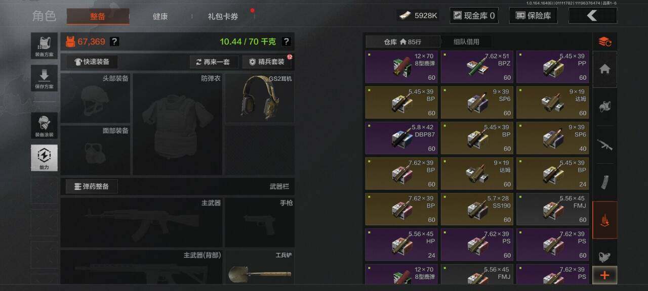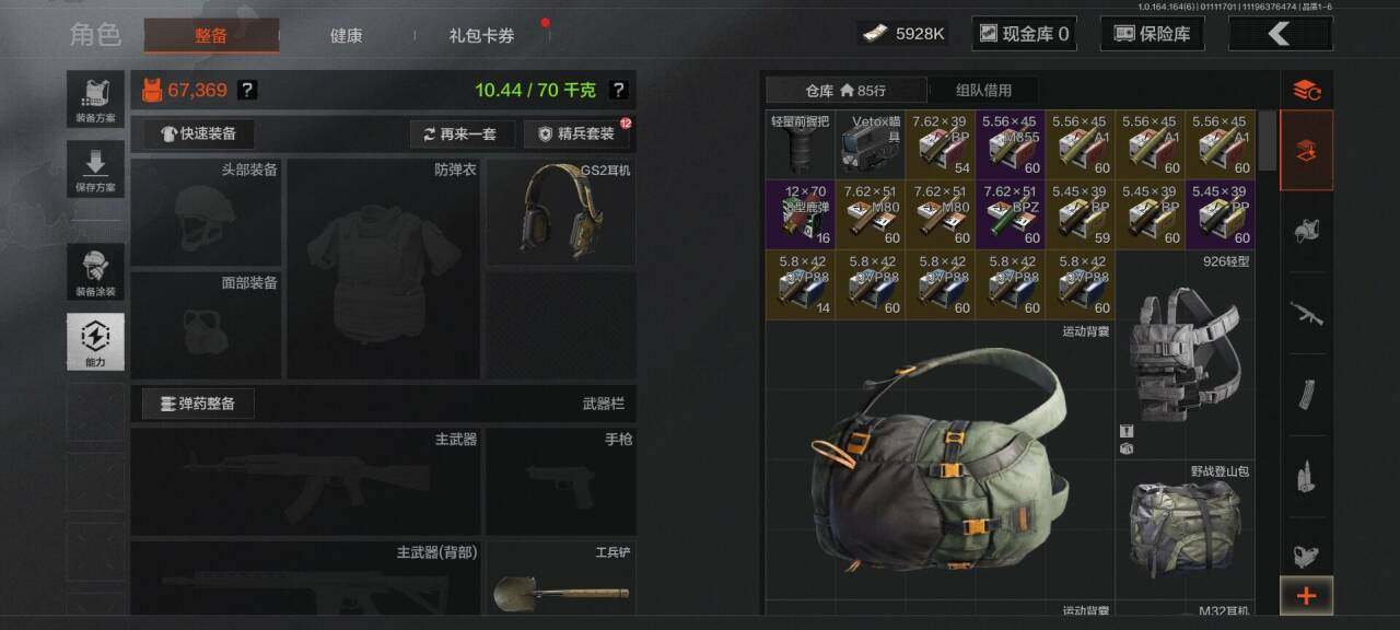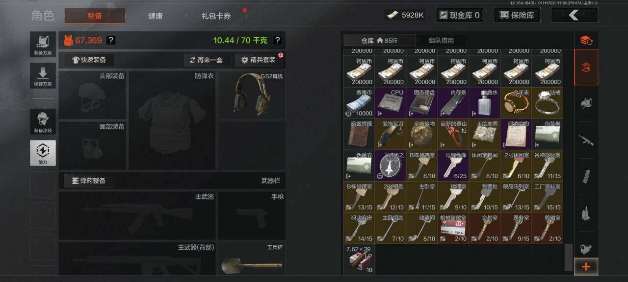 库存价值38.2 4近战武器 3金枪皮 可修改实名 【柯恩币数量】2052k现金库21m【近战武器】空腔战术,工兵铲,明刀·绣春,瑞兔折刀【金色枪皮】伦琴幻影·FAL,乌金黑曜·QBZ192,战术大师·AEK【紫色枪皮】伦琴计量·Vector45,粉绒臻选·AR30,逆火玄石·MP133,逆火玄石·AKM,粉绒臻选·AN94,战术大师·AK74N,战术大师·Suomi,战术大师·SKS【角色装扮(紫)】高地武士套装