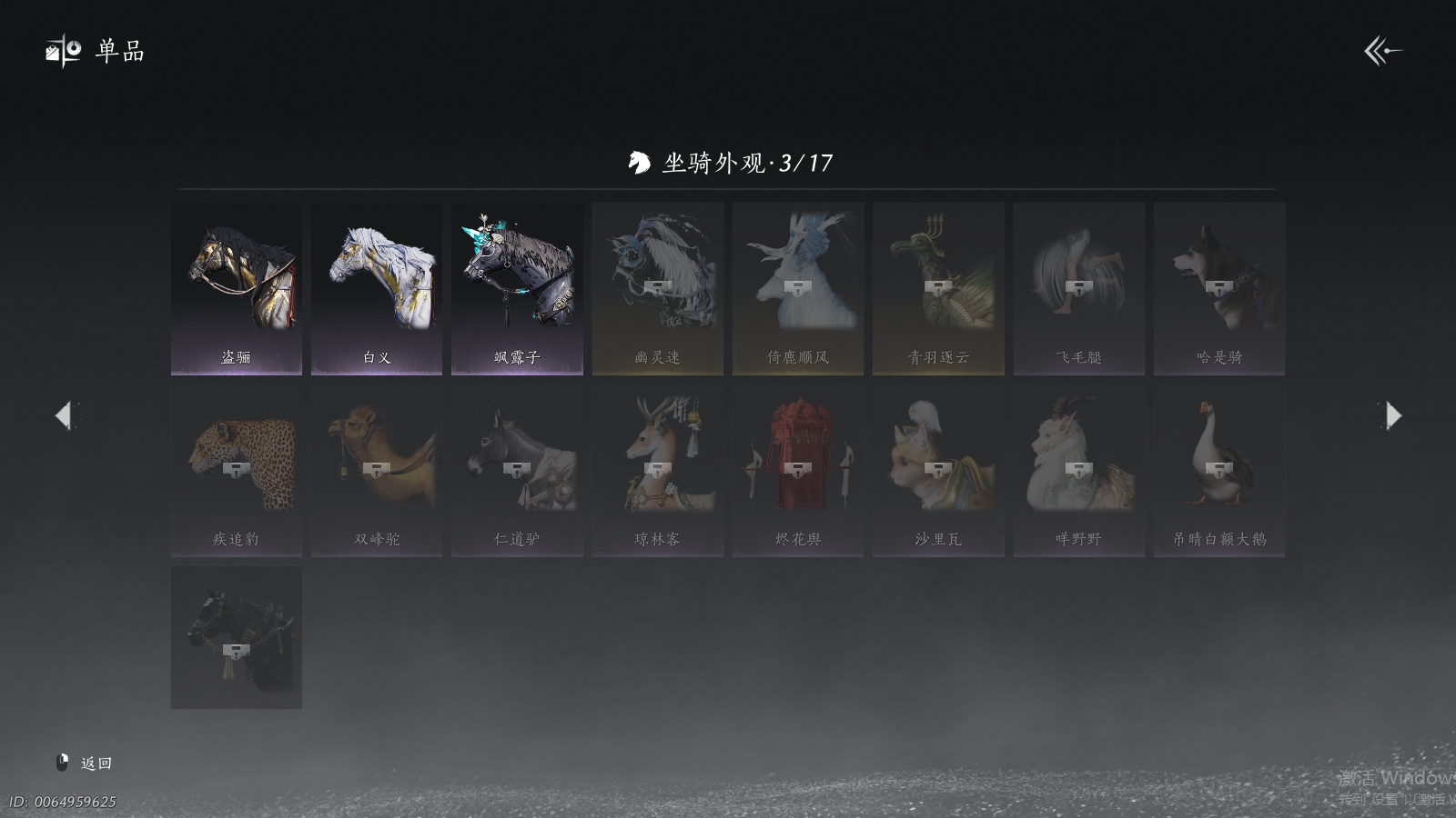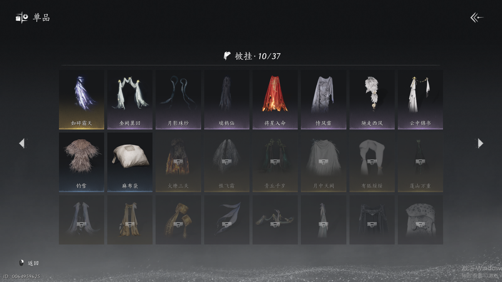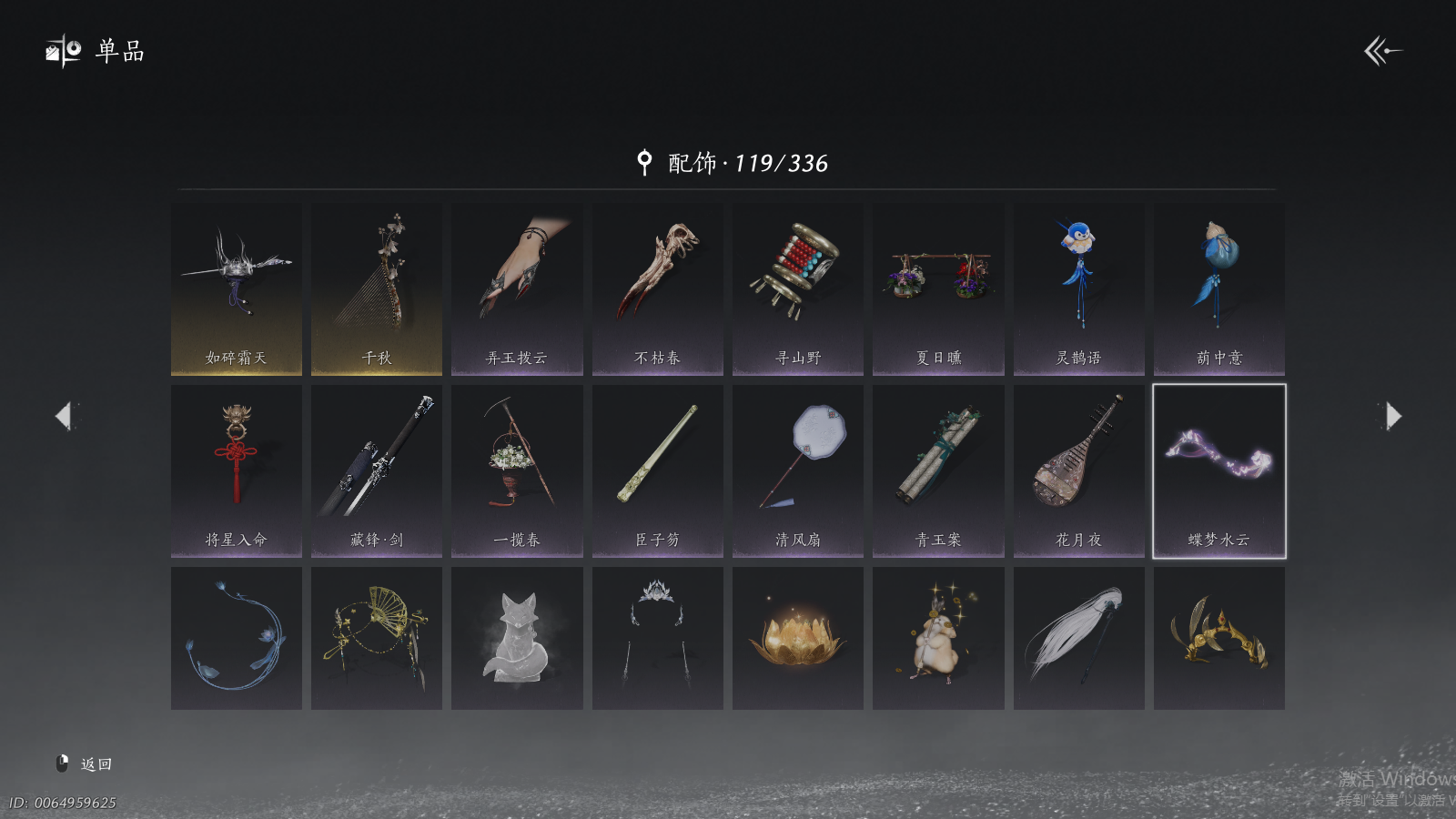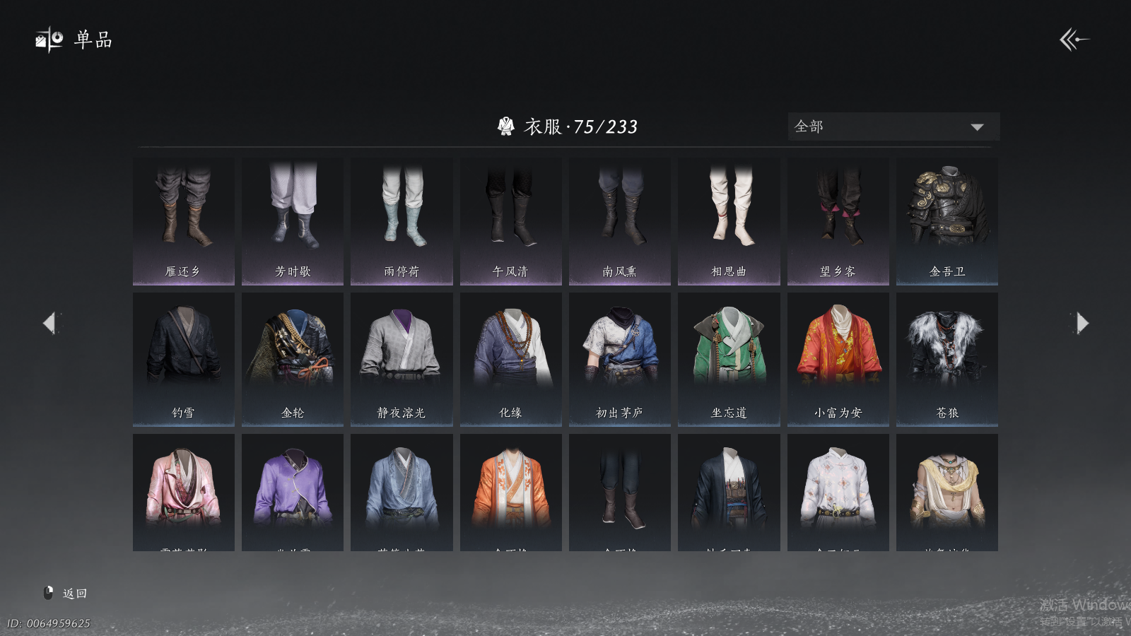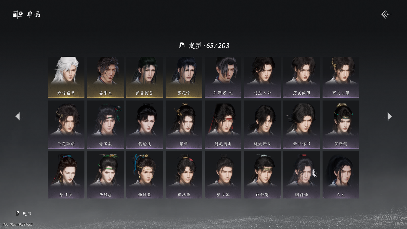 商品描述: 【背包两未用+可封装珍珠双惊霆五金枪+可封装腾光清弦四金弓+瑞鹤仙将星+碎冰冰+九剑+射虎五战令,武器封装cd半个月左右】 风华值48454 武林造诣(鹅)35423 已用八音窍数量5 未用八音窍数量2 等级100 角色性别【文本】男 【绝境】 【无换绑CD】 【未绑定或可换绑】 【未注册】 【不支持人脸包赔】 【男】 稀有套装1 稀有武器外观2 稀有武学奇术1 套装33 武器外观11 武学奇术1 坐骑2 稀有套装:如碎霜天; 稀有武器外观:藏音·千古断云,藏音·凤凰于飞; 稀有武学奇术:一斩绛天; 套装:葬花吟,问春何苦,云中锦书,青玉案,鹊踏枝,贺新词,雁还乡,红尘书,芳时歇,午风清,南风熏,相思曲,望乡客,一心三藏,逐红花,遥夜行,江湖客,雨停荷,舞花间,松花玉兰,上青云,螭骨,将星入命,青阳,白龙,射虎南山,金池鲤,瑞鹤仙,翠羽顾,落花闻诏,梨花泪,清河强者,驰走西风; 武器外观:大满贯,月中诗,出竹意,木棍,葱葱那年,飒陌耶,霜枫舞,霜枫愁,霜枫尽,无鸣,断鳞光; 武学奇术:御帚飞鸡; 坐骑:白义,飒露子;