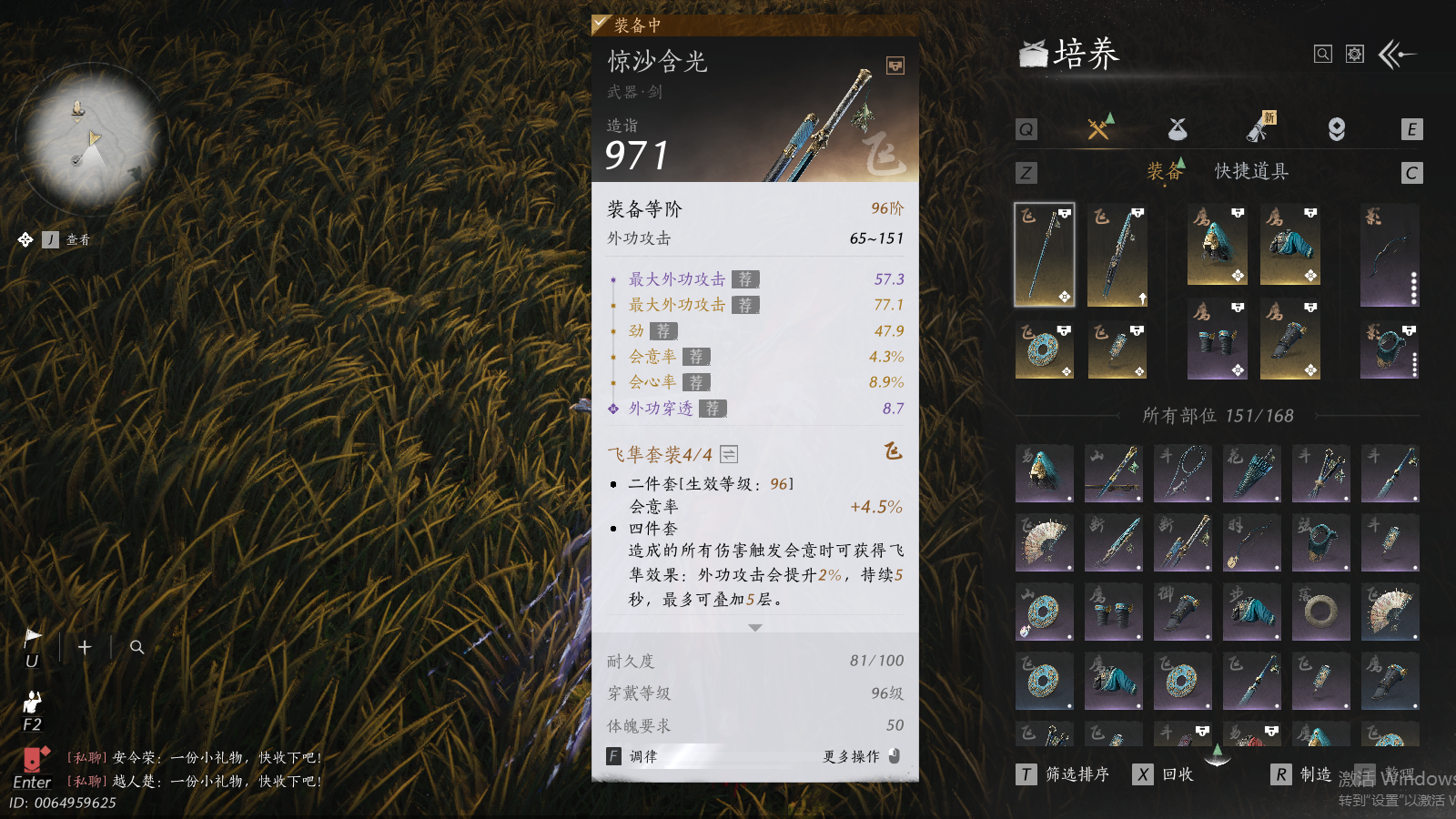 XY-076645101 风华值39611 武林造诣(鹅)34120 已用八音窍数量8 未用八音窍数量0 等级100 角色性别【文本】男 【绝境】 【无换绑CD】 【未注册】 【男】 【是】 【是】