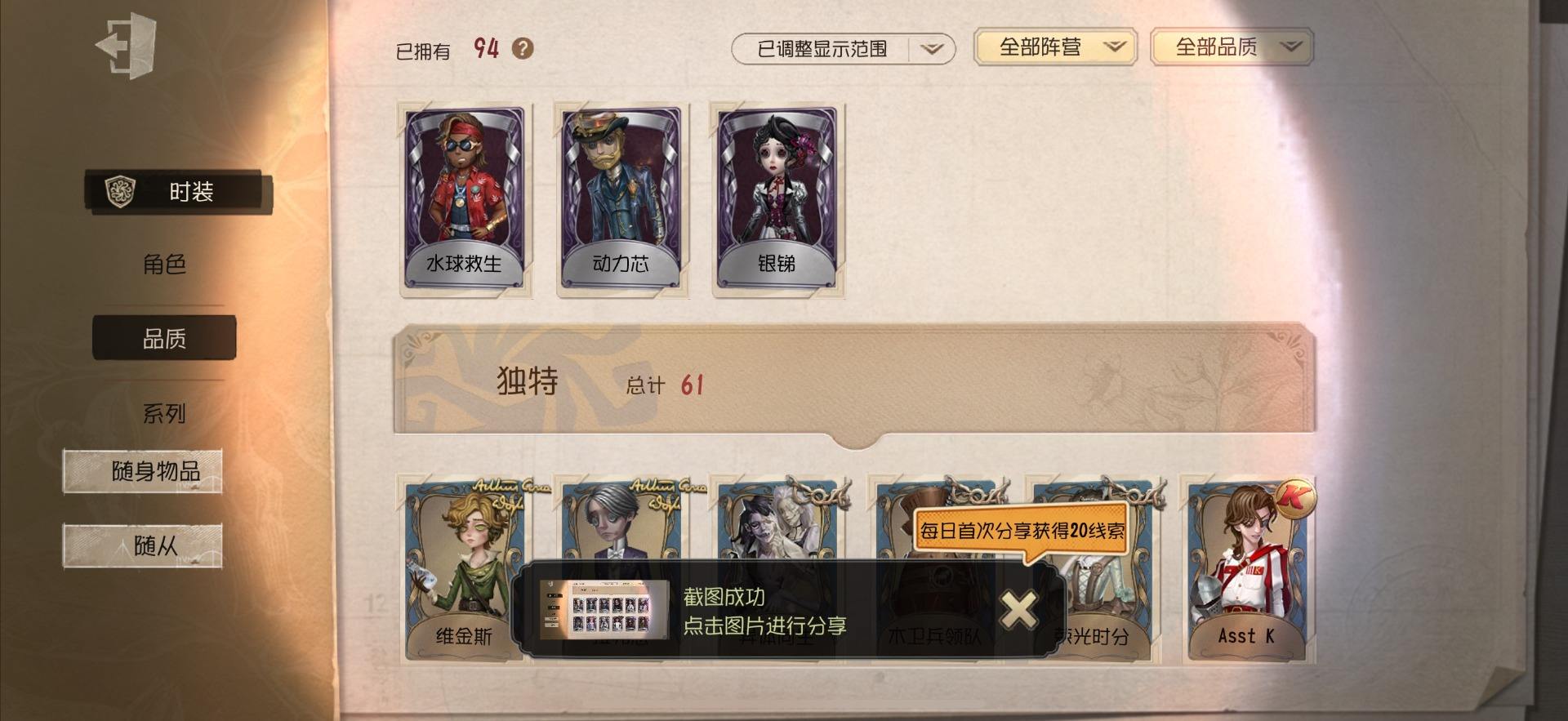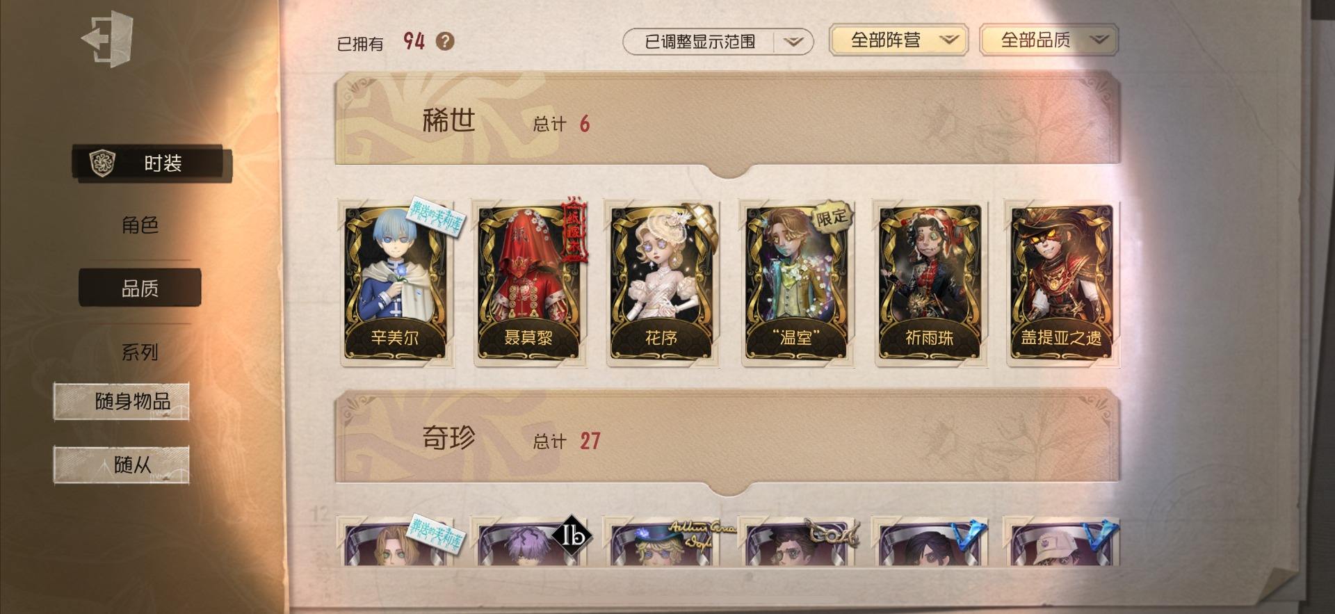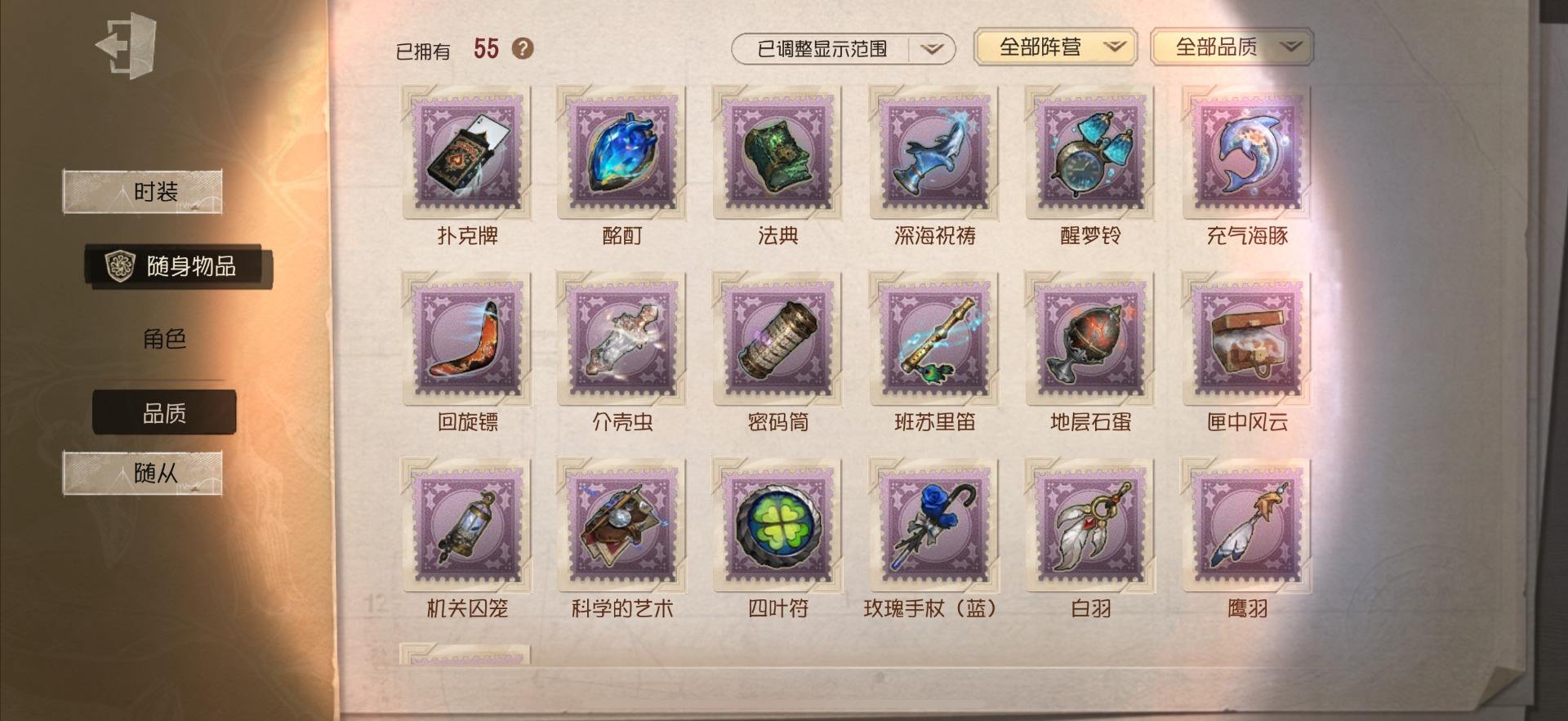 [14028274]OPPO-非账号转移 手机账号 559时装 23金皮 147紫皮 20随从 186随身物品 【时装】:勘探员-盖提亚之遗,爱哭鬼-摩诺,红蝶-壹原侑子,渔女-Chef K,小提琴家-不羁的浪漫,野人-雪原猎人,佣兵-柴郡猫,佣兵-赤井秀一,蜘蛛-花祭,“囚徒”-天海兰太郎,“小女孩”-欧律狄刻,调香师-提炼师,记者-伊布,医生-司药,雕刻家-善忘的海马体,记者-华生小姐,画家-掌中篆记,幸运儿-蛋小黄的好朋友,调香师-Buffy,教授-紧急运输,古董商-菌丝研究,画家-多色印刷,蜘蛛-不息载械,木偶师-义体再构,小说家-“伊始新篇”,击球手-迫降专家,空军-尼德霍格,空军-寒香舞,空军-毛利兰,机械师-不会枯萎的花,机械师-小红帽,26号守卫-蛋壳先生,爱哭鬼-点金,病患-逃罪之人,“杰克”-盛宴伯爵,红夫人-贝拉夫人,红蝶-花嫁,调香师-今夜不再,调香师-Lady K,“小女孩”-滚滚伙伴,医生-罪木蜜柑,幸运儿-苗木诚,幸运儿-拉塔托斯克,孽蜥-窃梦行者,盲女-暗金蛋糕,盲女-吉尔达,梦之女巫-川上富江,“囚徒”-蝰