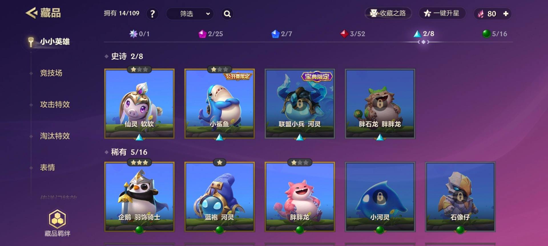 [14773508]【实名】:可修改【角色等级】:39【小小英雄数量】:28【小小英雄(神话)】:至臻 小小亚索,全球总决赛限定 T1 小小蔚,至臻 星辰鳞珑【竞技场(神话)】:幻境竞技场