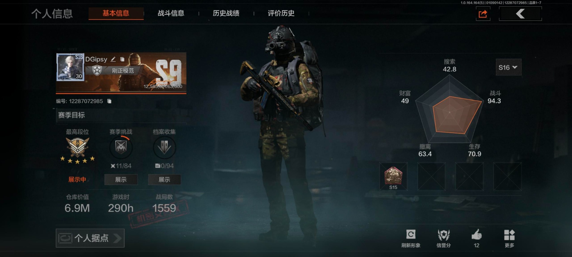 【AQQH269】段位:大师/仓库价值(百万):34/野战折刀/工兵铲/旧王圣谕VSS/利齿风暴MPX/旧王圣谕QBZ191/伦琴幻影AX50栓动步枪/芭斯特