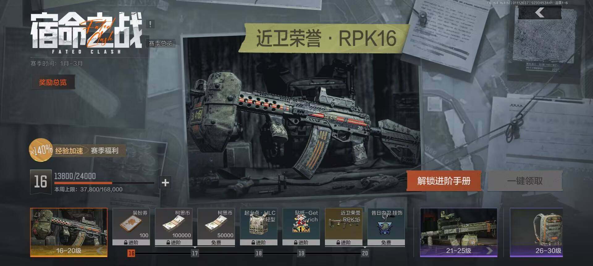【AQQH269】段位:大师/仓库价值(百万):34/野战折刀/工兵铲/旧王圣谕VSS/利齿风暴MPX/旧王圣谕QBZ191/伦琴幻影AX50栓动步枪/芭斯特