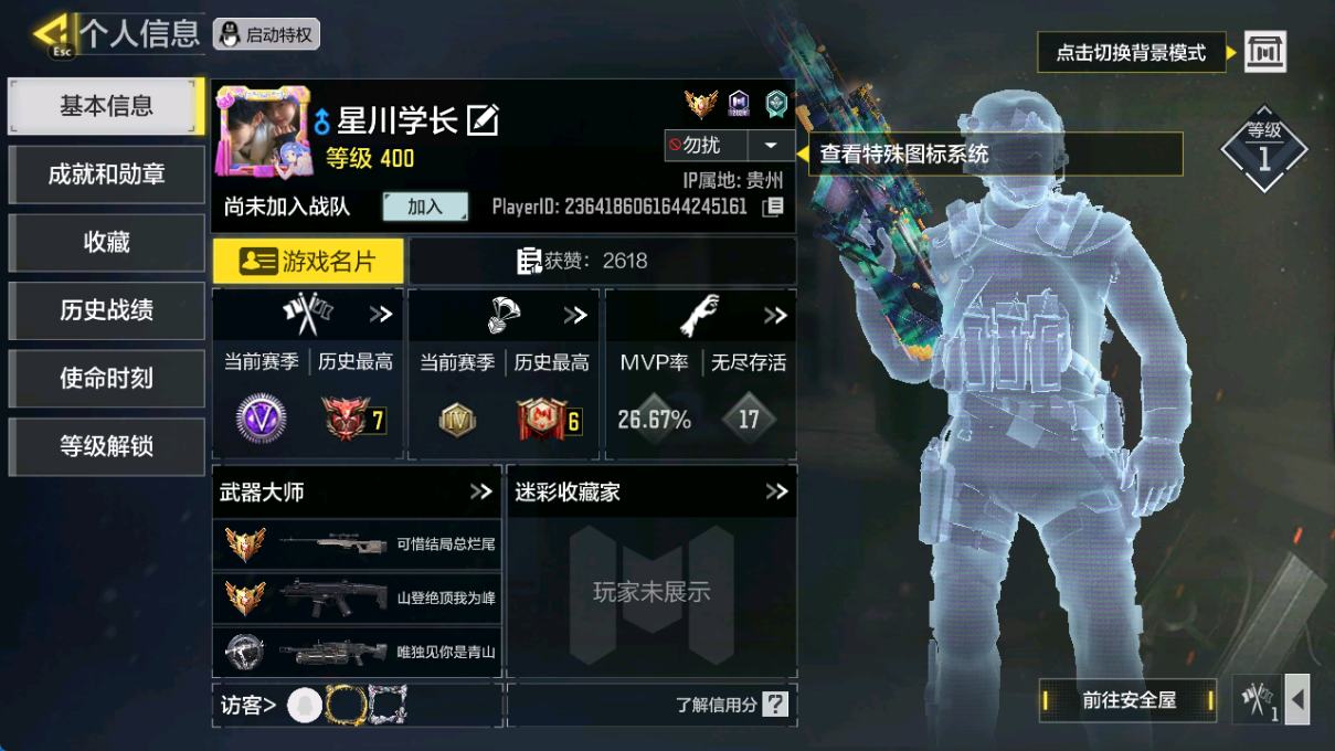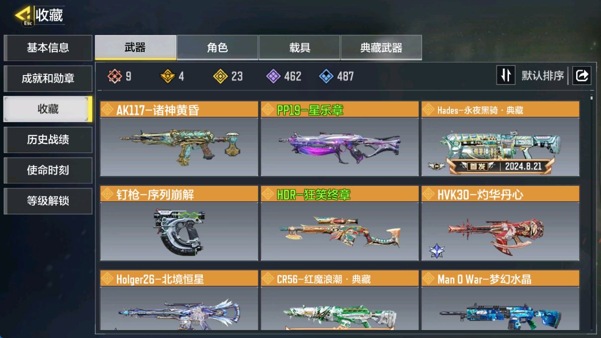 MHZ2415【7红2满12金】安卓Q-等级400-史诗枪械522 【7神话】AMR-亚特兰蒂斯(满级) Kilo 141-暗夜奏鸣曲(满级) M13-黑耀星辰 Switchblade X9-瞬影斩决 Krig6-冰霜巨龙 Fennec-无畏 AK117-熔岩 【12传说】 AN94-毁灭浪潮 十字弓-动能电流 Arctic50-青眸白虎 S36-甜心诱惑 DLQ33-先进火力 唐刀-白月魁 Type25-赤焰复仇 SA80-狂暴冲锋 电棍-永恒炽热 CR56-回音律动 AK47-火箭炮 飞翼浮游炮-v高达