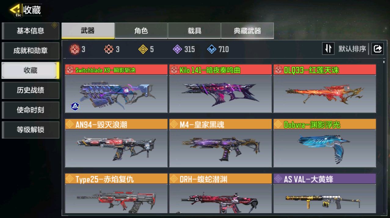 苹果QT888:可二次实名 22神话武器(19满) 9典藏武器 72传说武器,3传说角色,4传说载具,亚特兰蒂斯,双刃剑圣,远古神迹,无境空刃,无畏,源核天灾,黑暗曙光,暗夜奏鸣曲,离散单元,黑耀星辰,永别,神圣惩戒,星月夜,潮海汐月,瞬影斩决,丹青万壑,焕光跃迁,幽冥花海,天策含光,终墟,冰霜巨龙,熔岩,圣骑之刃,潘帕斯雄鹰,炫彩冬日,雪林歌谣,动能无限,尼克托-黑暗边缘 幽灵-复仇行动 梅斯-最终护卫,哈雷肥仔,肥仔改装版,砂蚀边界,路虎[14265730]307级 3神话 1典藏 10传说 135史诗 段位铂金 可二次 可修改实名 【典藏枪械】:AK47-炎舞慕雪·典藏 【神话枪械】:SMG5-潮海汐月,DLQ33-红莲天诛,EM2-苍穹 【传说枪械】:M4-皇家黑魂,Type25-赤焰复仇,RPD-一路悠扬,DLQ33-狂热祈愿,Kar98k-雷鸣光束,Fennec-终焉之光,唐刀-白月魁,Holger26-冥界提灯,Arctic50-青眸白虎