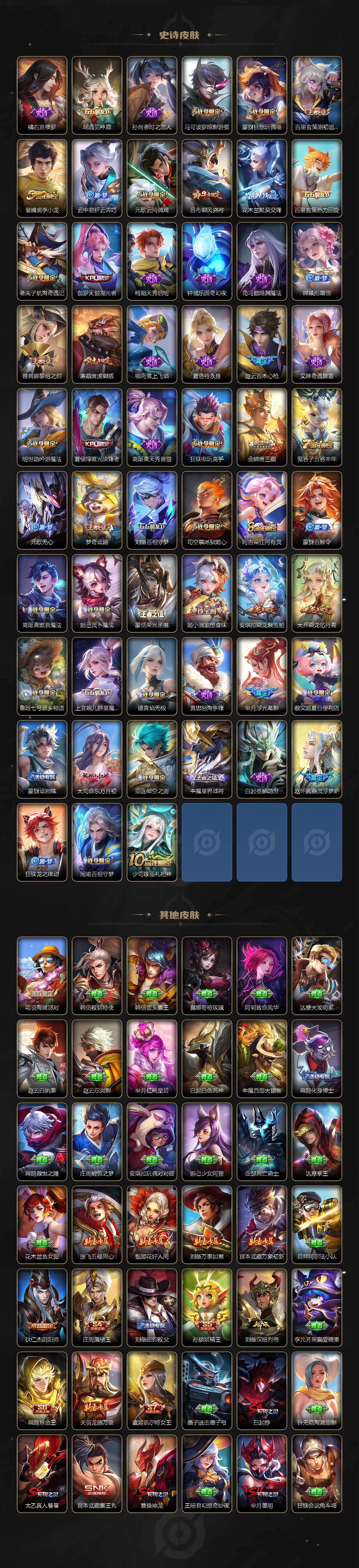 商品描述:[15563327]xr46043-苹果Q-可二次-V9-至尊星耀III段位-127英雄-368皮肤-1典藏皮肤-3无双-2珍品传说-33传说-110史诗【英雄全皮】:狂铁全皮,孙策全皮,司空震全皮,影全皮【荣耀典藏】:李白鸣剑曳影【无双皮肤】:小乔时之魔女,甄姬雪境奇遇,曜器灵螭龙剑【珍品传说】:孙策时之奇旅,嫦娥器灵落星盏【传说皮肤】:后羿神树通天,司空震愿照山河定,女娲愿照千秋盛,妲己愿照众生和,澜愿照九州拓,蔡文姬愿照福禄聚,虞姬愿照岁时盈,云缨幻光神枪,桑启鸣野蒿,夏侯惇霜北刀,墨子黄金天蝎座,亚连落雪白狼,孙尚香乘龙问璇玑,孙策乘龙淬吴钩,赵云乘龙铭钟鼎,干将莫邪画中仙,马超无双飞将,孙策挚爱之约,露娜启示之音,孙策末日机甲,鲁班七号寅虎瑞焰,貂蝉遇见胡旋,赵云淬星耀世,铠绛天战甲,镜炽阳神光,虞姬启明星使,曜云鹰飞将,李信一念神魔,干将莫邪久胜战神,百里玄策白虎志,后羿黄金射手座,诸葛亮武陵仙君,狄仁杰超时空战士【限定皮肤】:白起狰,夏侯惇霜北刀,蒙犽顽岩魄,蔡文姬夏日便利店,大乔绒语心约,虞姬夏日便利店,姜子牙天穹之誓,狄仁杰阴阳师,虞姬凯尔特女王,廉颇寅虎御盾,赵云皇家上将,赵云引擎之心,赵云百木心枪,墨子神迹守卫,嬴政优雅恋人,嬴政白昼王子,鲁班七号寅虎瑞焰,庄周蜃楼王,孙膑妖精王,扁鹊炼金王,白起夜都怪侠,芈月重明,吕布猎兽之王,吕布御风骁将,周瑜赤莲之焰,元歌云间偶戏,元歌无心,夏侯惇朔风刀,夏侯惇匿光决锋者,甄姬游园惊梦,曹操烛龙,典韦穷奇,典韦蓝屏警告,马可波罗暗影游猎,狄仁杰魔术师,狄仁杰万华元夜,达摩沙漠行僧,项羽海滩派对,老夫子醍醐杖,老夫子航海奇遇记,关羽冰锋战神,貂蝉遇见胡旋,程咬金演武夺筹,露娜启示之音,韩信逐梦之影,王昭君午后时光,兰陵王金庭之子,花木兰默契交锋,亚瑟潮玩骑士王,孙悟空至尊宝,牛魔御旌,后羿圣弓游侠,刘备百相守梦,李元芳银河之约,虞姬启明星使,钟馗驱傩正仪,杨玉环遇见飞天,女娲朔望之晖,干将莫邪画中仙,雅典娜单词大作战,雅典娜黎明之约,蔡文姬繁星吟游,太乙真人饕餮,鬼谷子原初探秘者,鬼谷子五谷丰年,诸葛亮武陵仙君,苏烈千军破阵,百里玄策白虎志,百里玄策原初追逐者,弈星混沌棋,梦奇顽趣,公孙离蜜橘之夏,沈梦溪星空之诺,明世隐疑决卦,明世隐吟游魔法,裴擒虎李小龙,狂铁御狮,狂铁电玩高手,米莱狄御霄,云中君纤云弄巧,伽罗