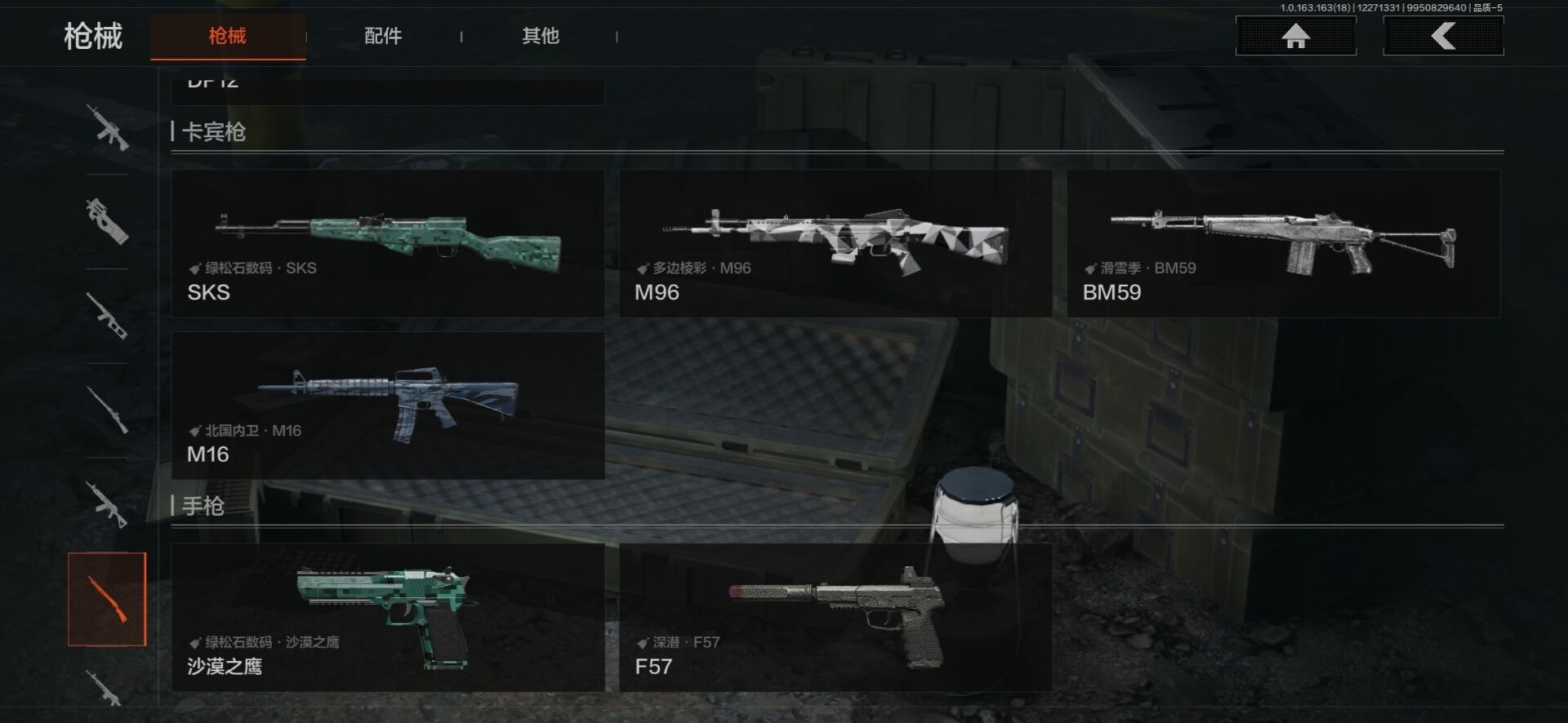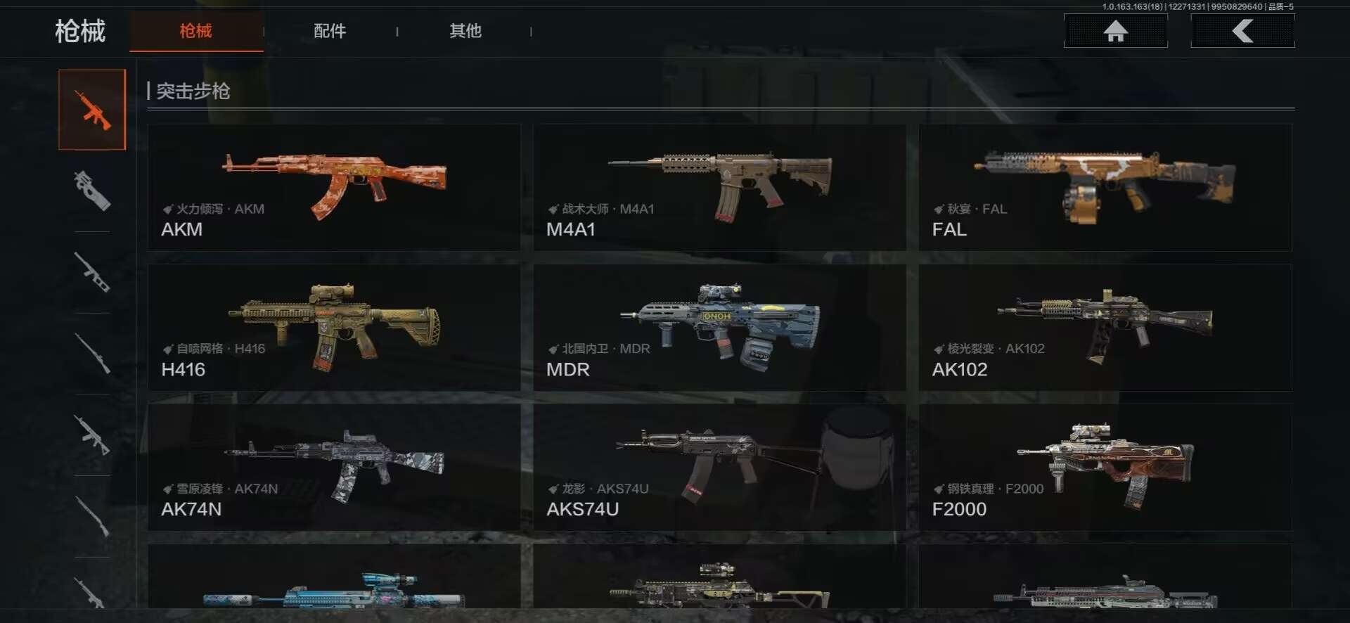 [15902972]库存价值46.3 4近战武器 1金套装 2金枪皮 可修改实名 【柯恩币数量】465440 【角色装扮(金)】不败坚守作战服 【近战武器】赢家匕首,工兵铲,来战·开山刀,涂鸦利刃 【金色枪皮】旧王圣谕·QBZ191,竞技·FAL 【紫色枪皮】赢家·F2000,棱光裂变·AK74N,竞技·AUG,北国内卫·MDR,炎夏浪花·H416,骑士之剑·ACE31,骑士之剑·AKS74U 【角色装扮(紫)】王国卫队礼装库存价值41.5 7近战武器 1金套装 8金枪皮 可修改实名 【柯恩币数量】:137323【角色装扮(金)】:脉冲·马克西姆【近战武器】:空腔战术,S-07折刀,工兵铲,来战·开山刀,胜利军刀,裁决手杖剑,百炼恒常【金色枪皮】:棱光裂变·QBU191,利齿风暴·MPX,浮鳞影青·QBZ192,旧王圣谕·VSS,战术大师·AEK,战术大师·AN94,旗帜·AEK,骑士之剑·VSS【紫色枪皮】:超越自我·Vector9,竞技·MDR,骤羽尖啸·M4A1,骤羽尖啸·MPX,利齿风暴·T03,利齿风暴·T79,猩红羽翼·VSS,最后防线·AEK,火力倾泻·AUG,棱光裂变·AKM,鱼跃丹青·T85,战术大师·Suomi,突变系谱·Groza,典礼武备·MCX,粉绒臻选·AN94,和平之手·FAL,缟兵玄墨·VSS【角色装扮(紫)】:高地武士套装,王国卫队礼装,鎏金街头套装