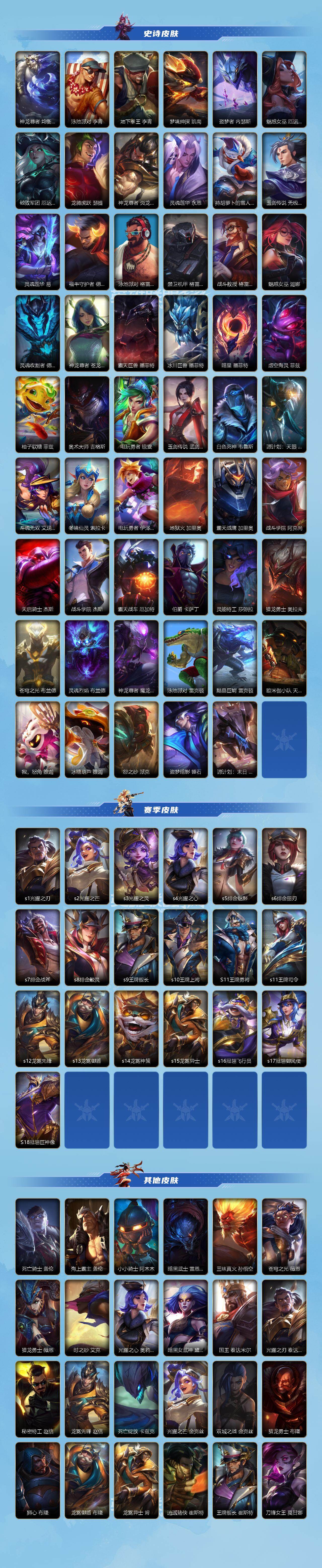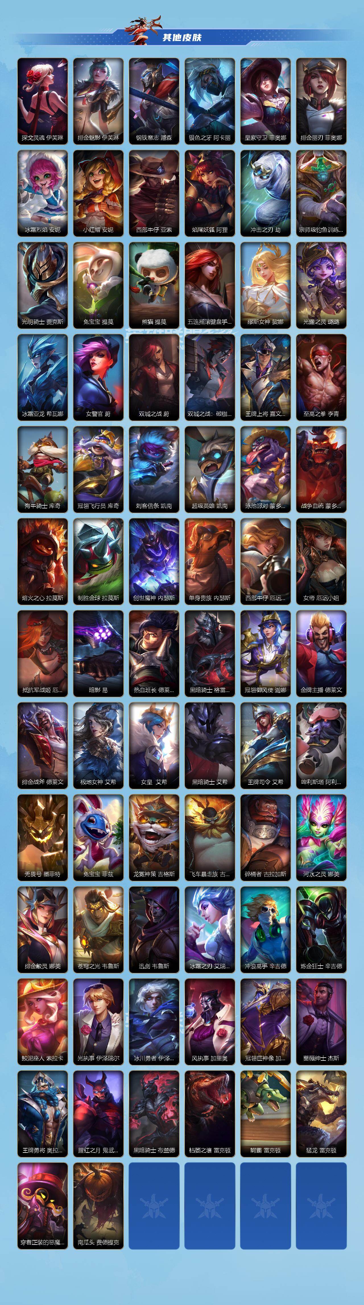 商品描述:【LOLSYH113】129英雄/240皮肤/超凡大师/夜星流火 金克丝/龙的传人 李青/臻藏 跳跳倩影 厄运小姐/张辽 文远 盖伦/神王 盖伦/光影巨翼 亚托克斯/海魔至尊 亚托克斯/心之钢 凯隐/暗星尊 烬/星域游侠 崔斯特/幻灵特战队长 菲奥娜/源计划:超体 莫德凯撒/黑夜使者 亚索/斗魂无双 亚索/天煞 劫/西部魔影 卢锡安/神拳 李青/律政大亨 蒙多医生/炼狱魔犬 内瑟斯/灵魂莲华 瑟提/黎明使者 永恩/神龙尊者 驭风啸龙 易/灌篮高手 德莱厄斯/神王 德莱厄斯/战斗学院 伊泽瑞尔/地狱之门卫士 加里奥/源计划:泯灭 雷克顿/霸天零式 赛恩/灵魂莲华 锤石/钢铁军团 盖伦/霸天剑魔