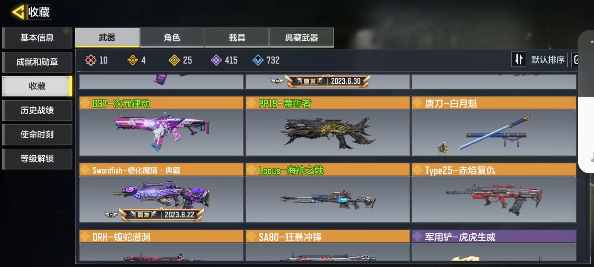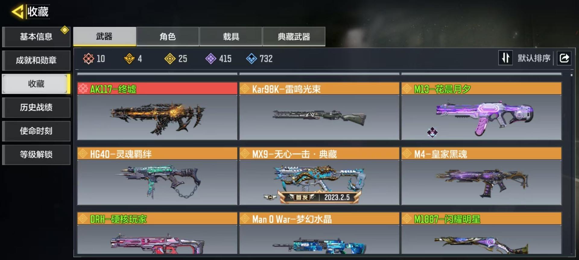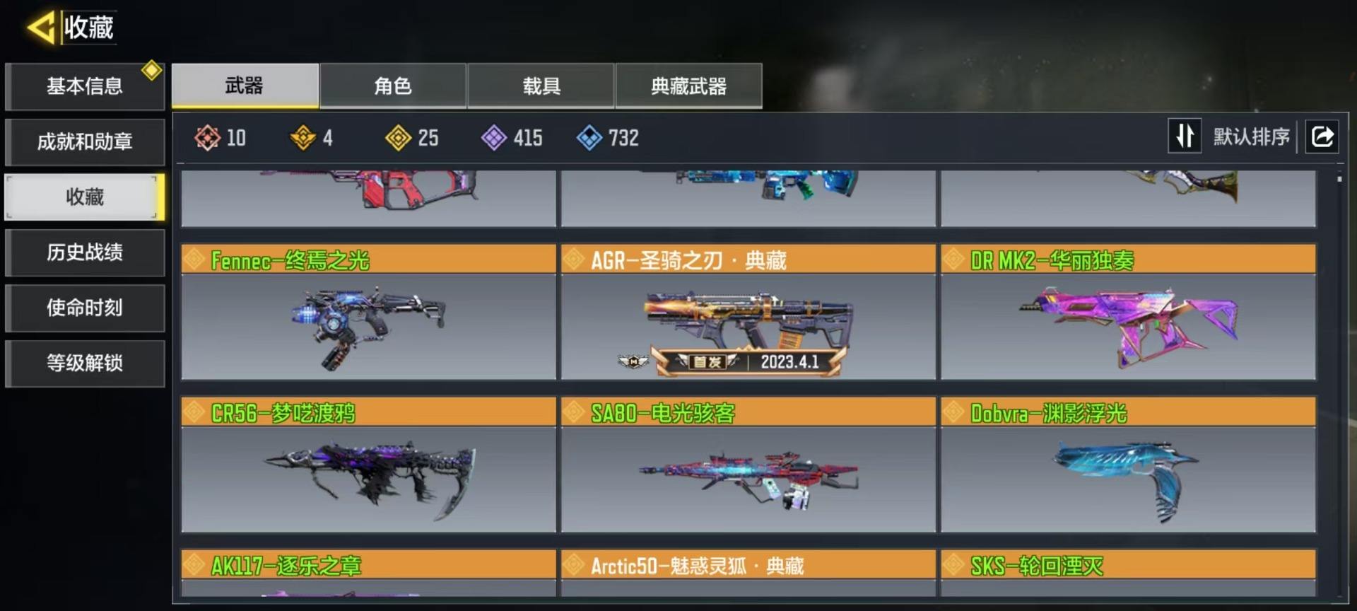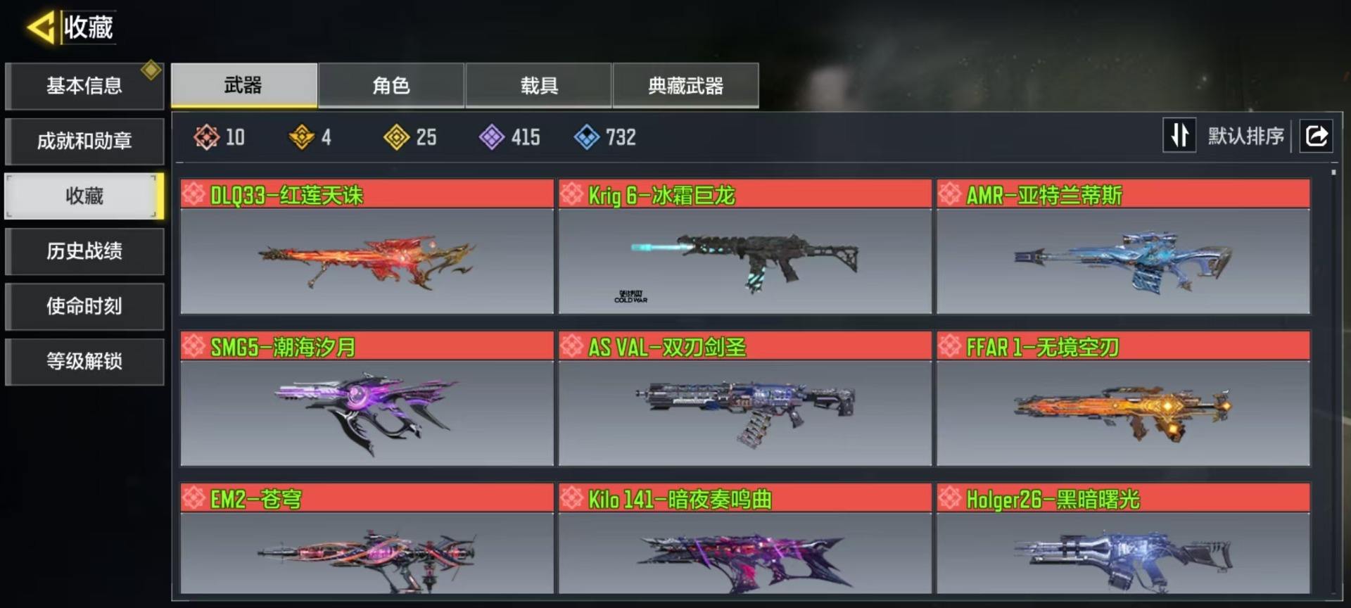 MHZ2415【7红2满12金】安卓Q-等级400-史诗枪械522 【7神话】AMR-亚特兰蒂斯(满级) Kilo 141-暗夜奏鸣曲(满级) M13-黑耀星辰 Switchblade X9-瞬影斩决 Krig6-冰霜巨龙 Fennec-无畏 AK117-熔岩 【12传说】 AN94-毁灭浪潮 十字弓-动能电流 Arctic50-青眸白虎 S36-甜心诱惑 DLQ33-先进火力 唐刀-白月魁 Type25-赤焰复仇 SA80-狂暴冲锋 电棍-永恒炽热 CR56-回音律动 AK47-火箭炮 飞翼浮游炮-v高达