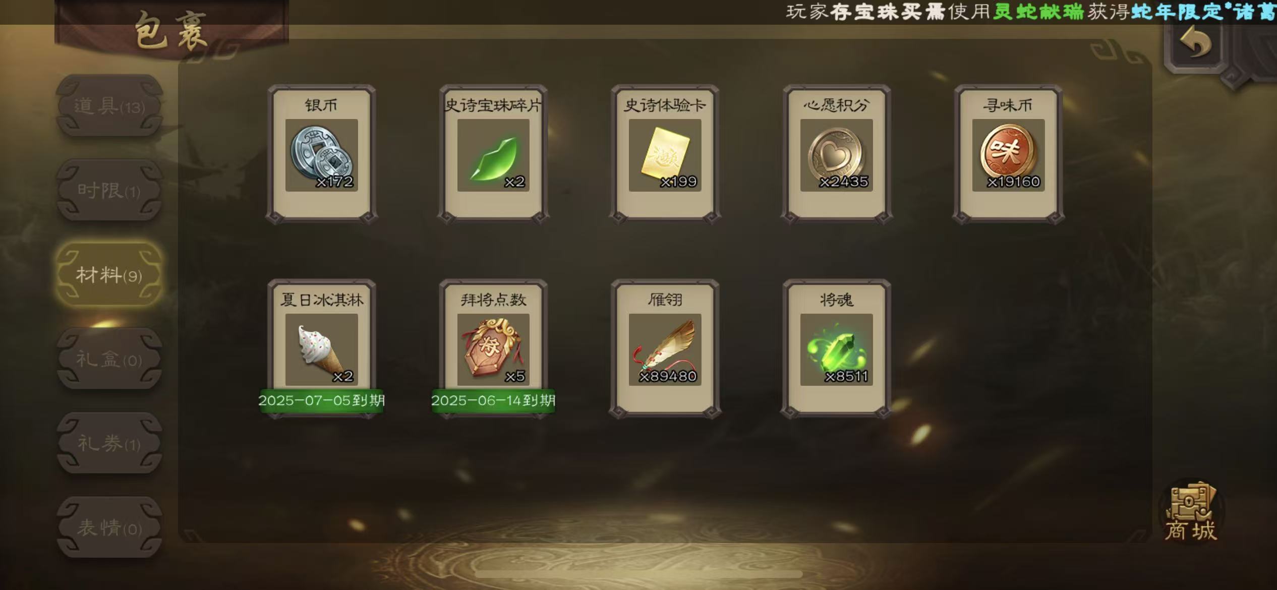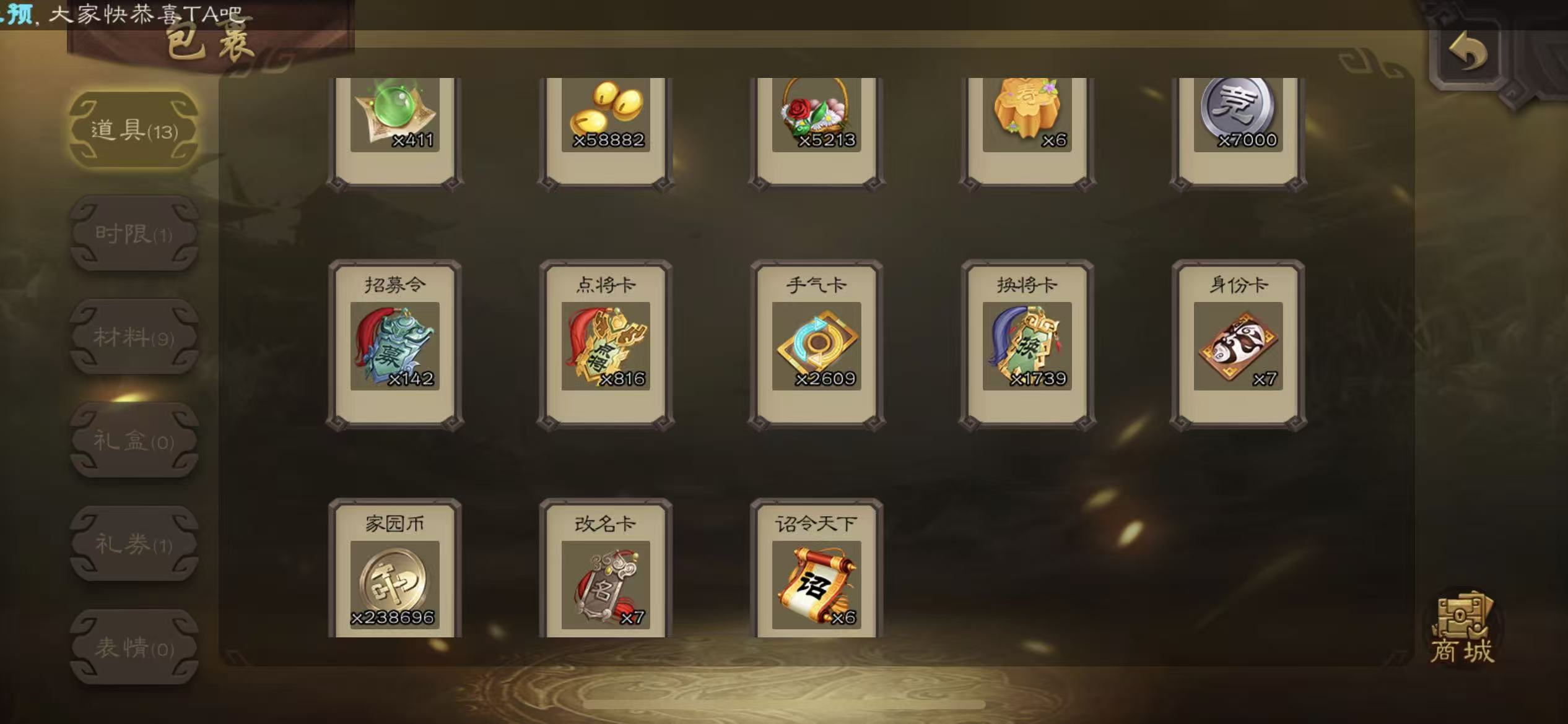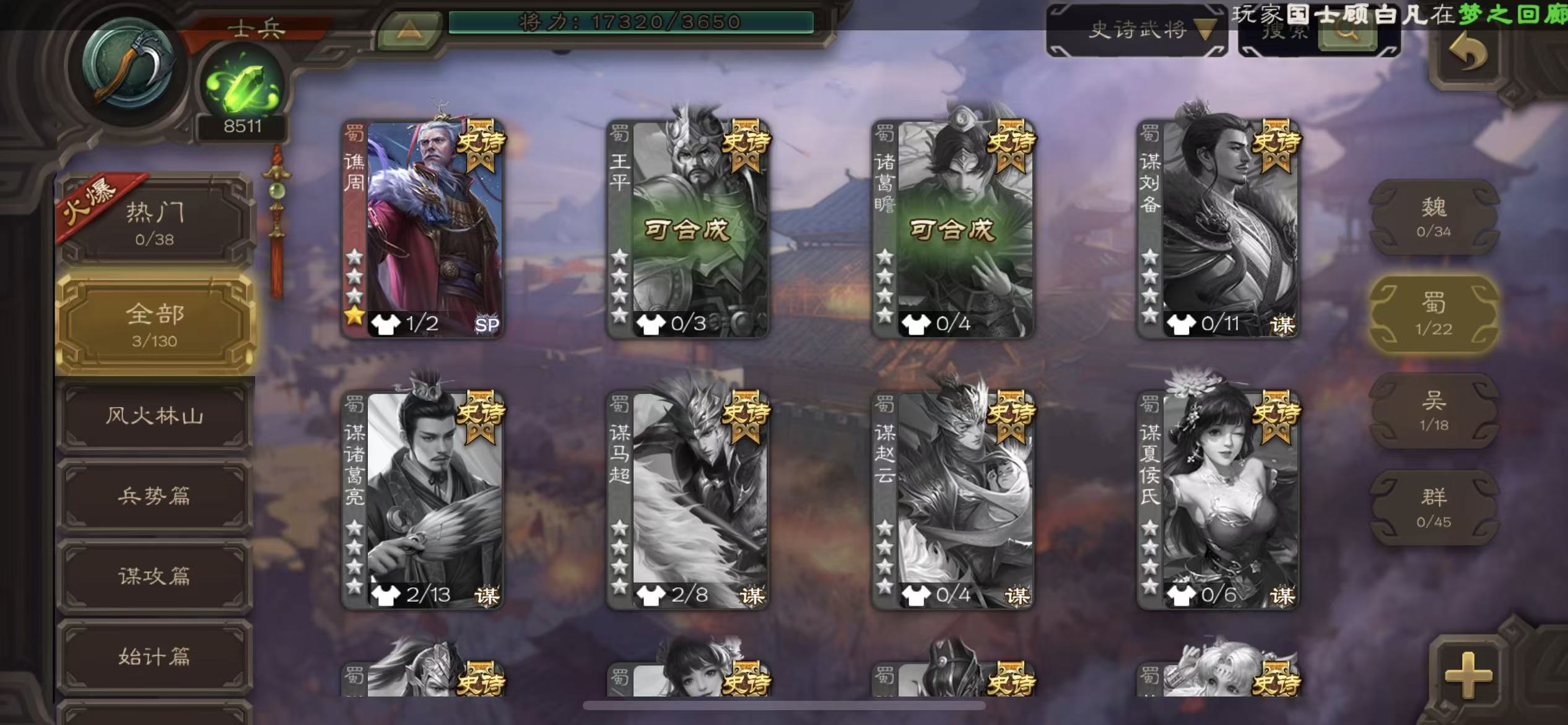 商品描述:士兵神华佗谯周8500将魂8.9万羽毛三卡