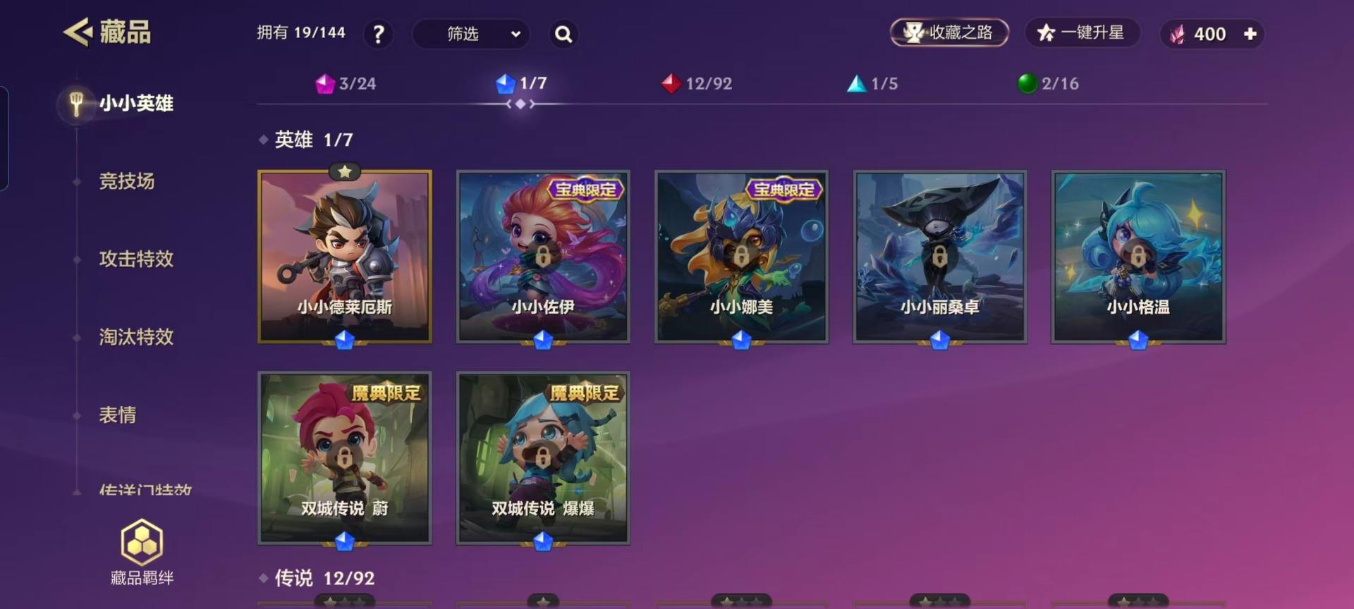 [14310629]【实名】:可修改【角色等级】:74【小小英雄数量】:59【小小英雄(英雄)】:小小格温,小小娑娜【竞技场(神话)】:幻境竞技场