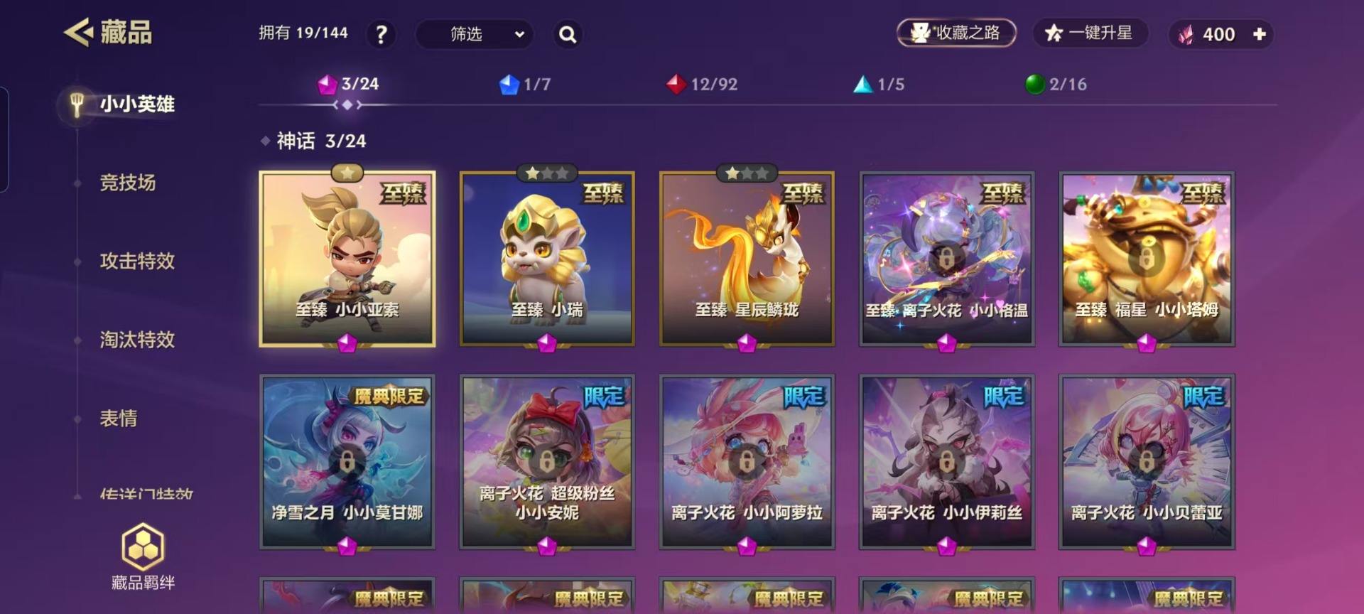 [14773508]【实名】:可修改【角色等级】:39【小小英雄数量】:28【小小英雄(神话)】:至臻 小小亚索,全球总决赛限定 T1 小小蔚,至臻 星辰鳞珑【竞技场(神话)】:幻境竞技场