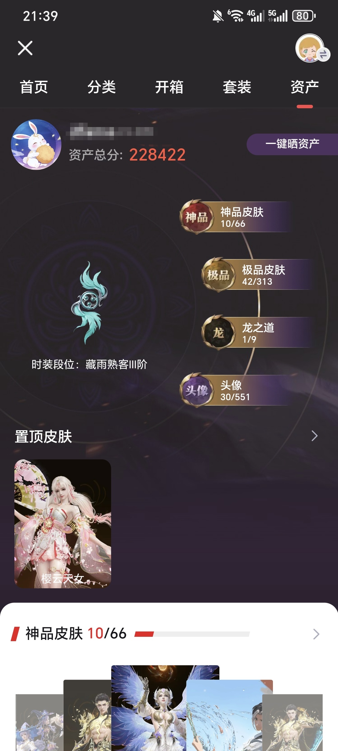 商品描述:MYJ248【10红 42金 1龙之道 锦鲤玉扇 帝星 樱云天女 通天狐袄 】【游戏等级】205【大区】国服【排位】陨星Ⅴ【神品皮肤】龙雀 逐光者 锦鲤玉扇 流金晓锦 苍穹之光 帝星 樱云天女 通天狐袄 化生明王 蝶梦 天罚【极品皮肤】倒反阴阳·炽羽 秋藏桂 寿竹云春 金财聚辉 开辟鸿蒙·风雨谐 开辟鸿蒙·金戈止 封神录·姜子牙 观山海·相柳 楚韵九歌·山鬼 楚韵九歌·湘夫人 浣烟纱 夏日派对·昭夏流金 斗罗大陆·唐三 夏日派对·盛夏白阳 拳皇·不知火舞 紫微星命 云溪仙子 追猎 游四海 玄青郁离 新倩女幽魂·瑶光沐月 山吹茶 昆仑圣女 九阴圣女 瀚海苍鹰 赤丹朱湛 碧水青天 西行劫·蜘蛛精 兰庭月 春日序曲·晨风 怒浪 梨园传奇·素贞 金沙·梦蜀 寒烟素 古冢行 春日序曲·寒芷 决战平安京·恋念私语 怦然心动·软暖甜梦 春日序曲·协光 春日序曲·夜汐 夏日派对·极光夏夜 龙之道·求真【龙之道】龙之道·求真
