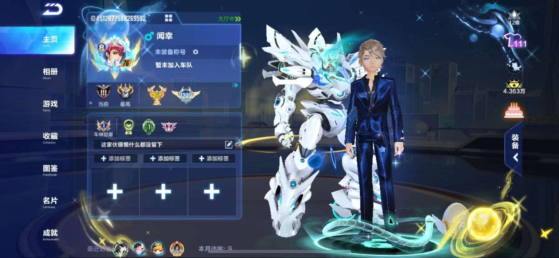 BZ644471 【热门双T-热门强力机甲魅娅世界之蛇/蓝波豚宝/多竞速宠物/多紫装服饰】 A车数量23 游戏等级67 T车数量2 【否】 【可二次实名】 【永久包赔】 【苹果微信】 稀有永久A车1 T车皮肤1 永久T车1 稀有永久A车:L-清; T车皮肤:魅娅世界之蛇; 永久T车:魅娅;