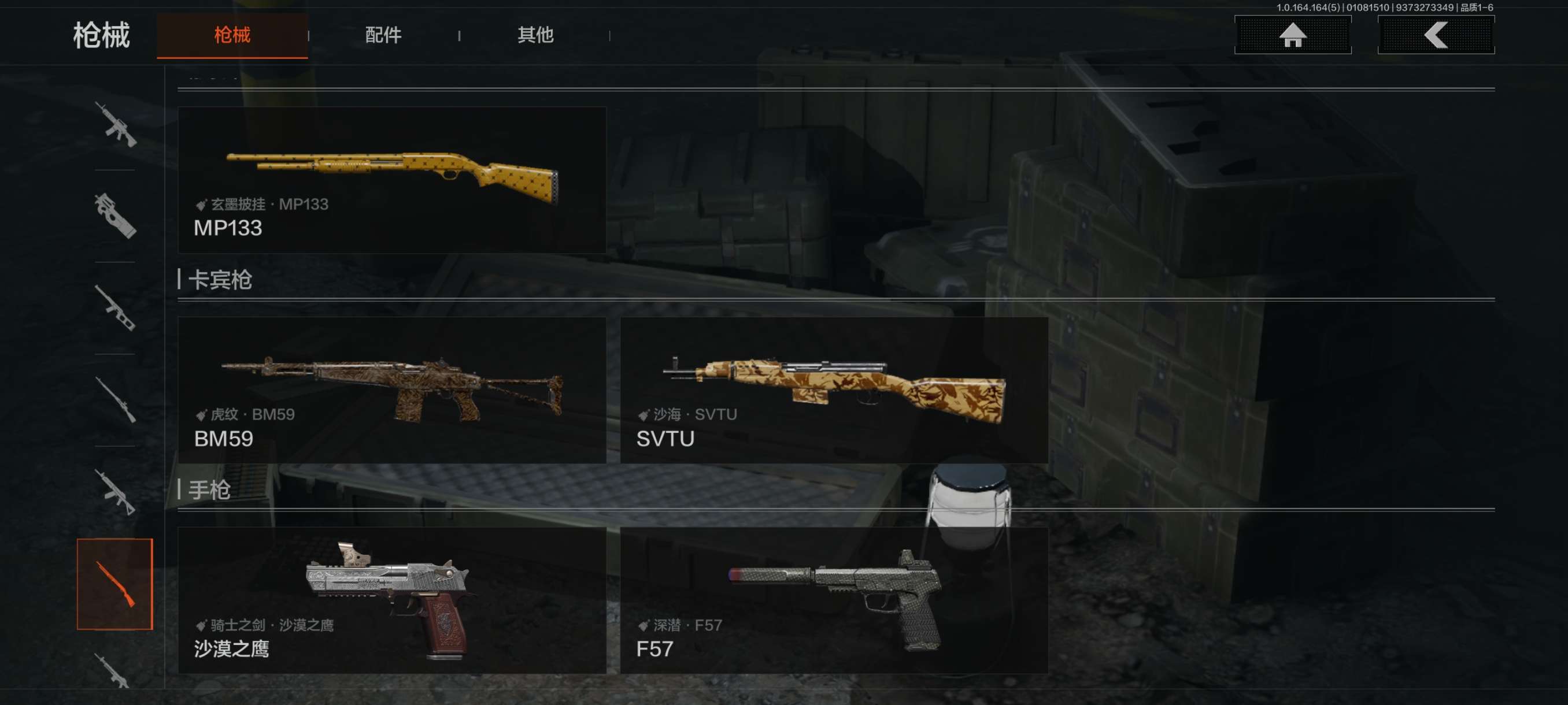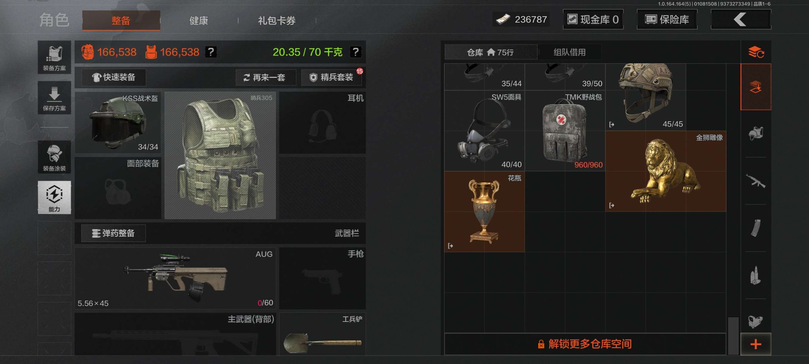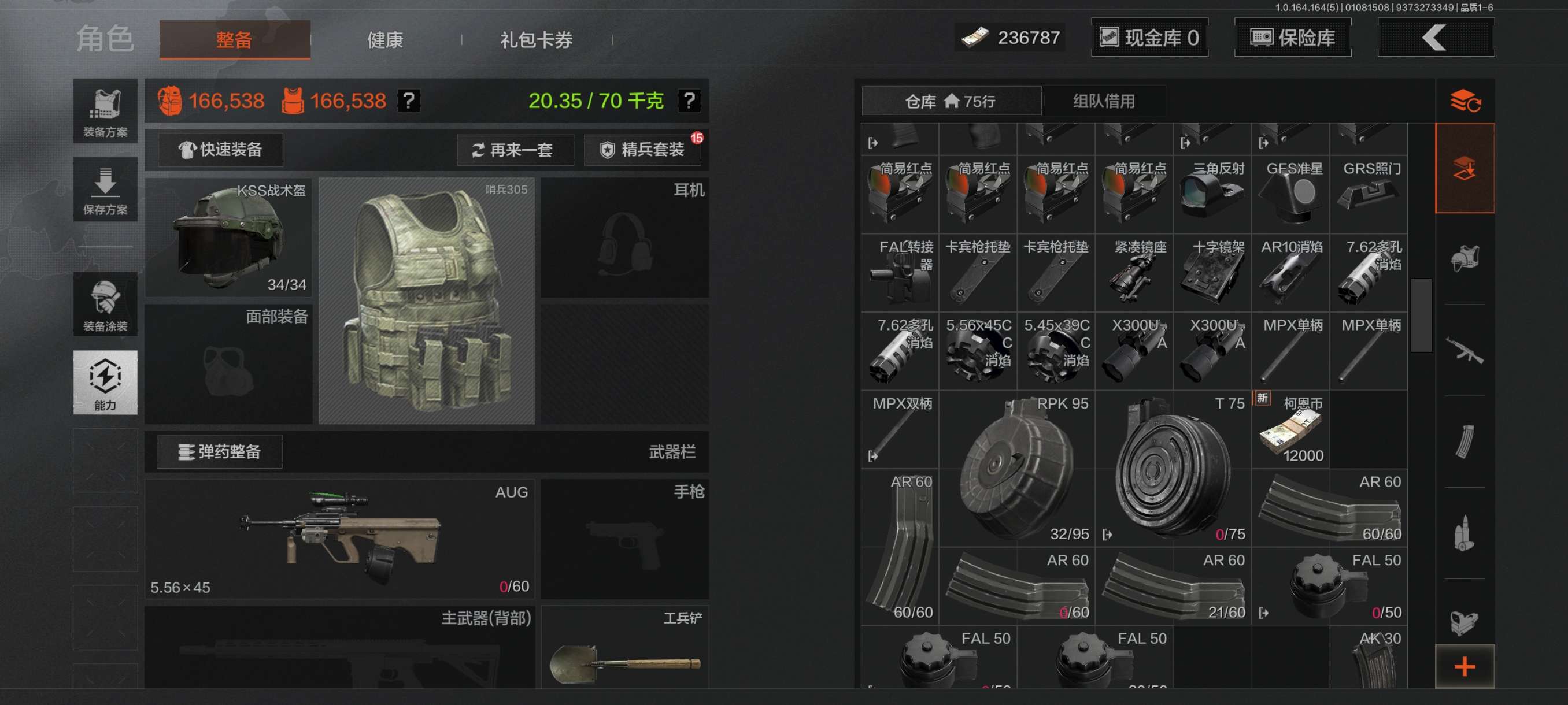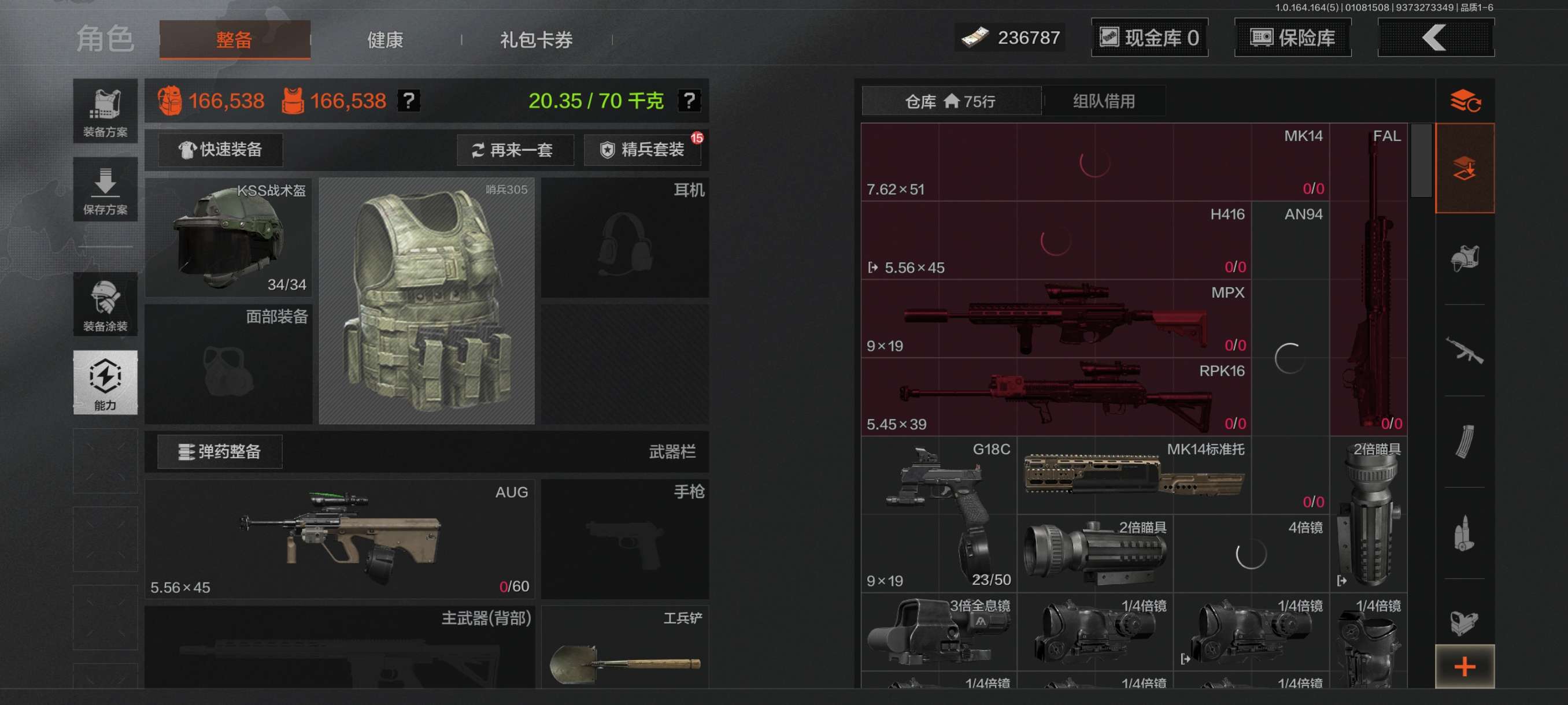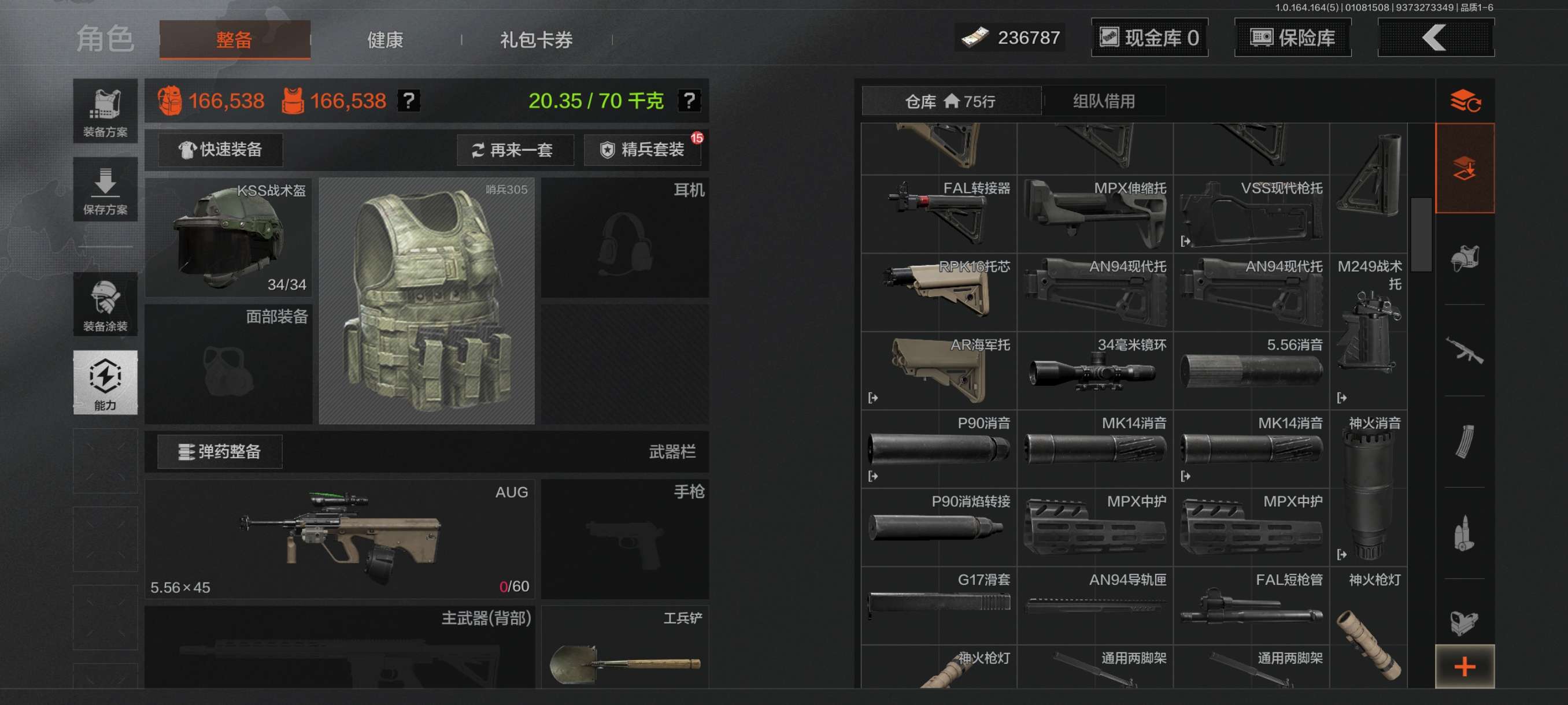 [15902972]库存价值46.3 4近战武器 1金套装 2金枪皮 可修改实名 【柯恩币数量】465440 【角色装扮(金)】不败坚守作战服 【近战武器】赢家匕首,工兵铲,来战·开山刀,涂鸦利刃 【金色枪皮】旧王圣谕·QBZ191,竞技·FAL 【紫色枪皮】赢家·F2000,棱光裂变·AK74N,竞技·AUG,北国内卫·MDR,炎夏浪花·H416,骑士之剑·ACE31,骑士之剑·AKS74U 【角色装扮(紫)】王国卫队礼装库存价值41.5 7近战武器 1金套装 8金枪皮 可修改实名 【柯恩币数量】:137323【角色装扮(金)】:脉冲·马克西姆【近战武器】:空腔战术,S-07折刀,工兵铲,来战·开山刀,胜利军刀,裁决手杖剑,百炼恒常【金色枪皮】:棱光裂变·QBU191,利齿风暴·MPX,浮鳞影青·QBZ192,旧王圣谕·VSS,战术大师·AEK,战术大师·AN94,旗帜·AEK,骑士之剑·VSS【紫色枪皮】:超越自我·Vector9,竞技·MDR,骤羽尖啸·M4A1,骤羽尖啸·MPX,利齿风暴·T03,利齿风暴·T79,猩红羽翼·VSS,最后防线·AEK,火力倾泻·AUG,棱光裂变·AKM,鱼跃丹青·T85,战术大师·Suomi,突变系谱·Groza,典礼武备·MCX,粉绒臻选·AN94,和平之手·FAL,缟兵玄墨·VSS【角色装扮(紫)】:高地武士套装,王国卫队礼装,鎏金街头套装
