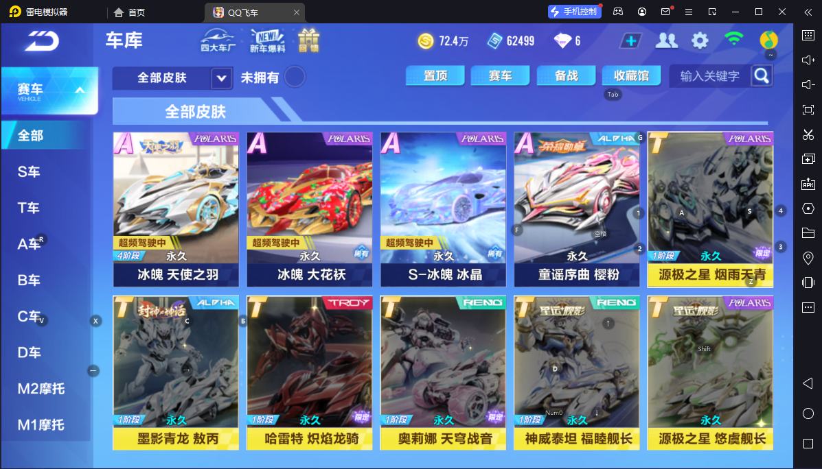 BZ643389 【双强联赛顶级皮肤-S幻星(冰晶),S追光者/永久T车-鸭宝超人/魔法套装-龙吟男装/宠物-竞速道具俱全/男女多套装服饰】 A车数量46 游戏等级82 车皮肤数量12 T车数量1 【否】 【可二次实名】 【永久包赔】 【安卓QQ】 稀有车型2 稀有永久A车2 永久T车1 稀有车型:双生战神,追光者; 稀有永久A车:龙珏雷诺,幻星; 永久T车:鸭宝超人;