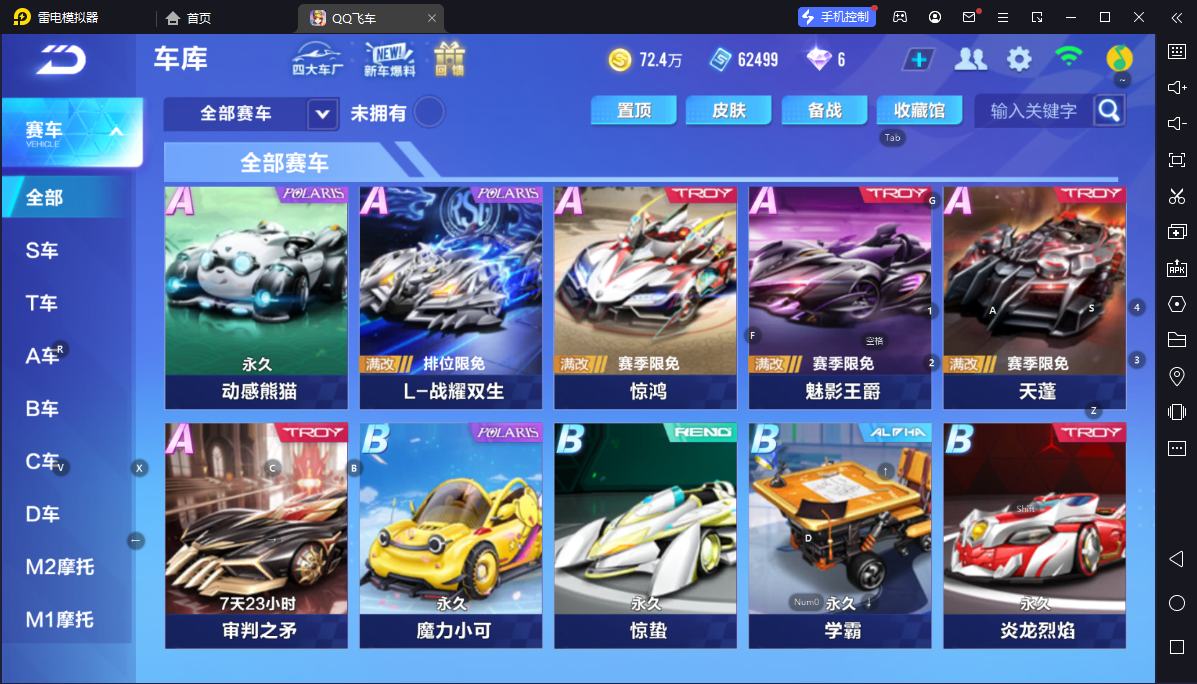 BZ642344 【最强机甲-神威泰坦RE/宠物-竞速道具俱全/多套装服饰】 A车数量17 游戏等级68 车皮肤数量5 T车数量1 【否】 【可二次实名】 【永久包赔】 【苹果QQ】 永久T车1 永久T车:神威泰坦RE;