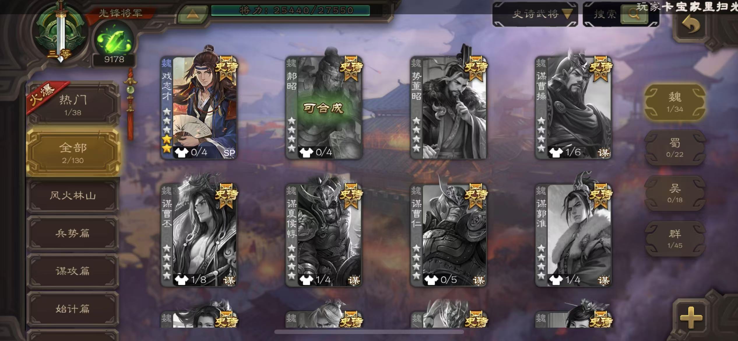 动态郑玄戏子9100将魂三卡