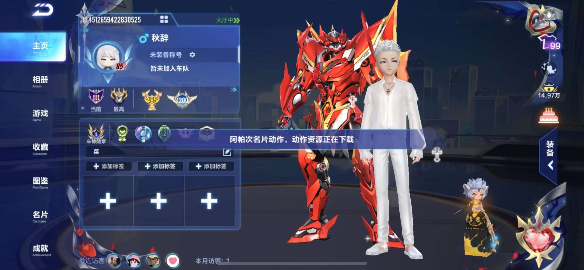 BZ642344 【最强机甲-神威泰坦RE/宠物-竞速道具俱全/多套装服饰】 A车数量17 游戏等级68 车皮肤数量5 T车数量1 【否】 【可二次实名】 【永久包赔】 【苹果QQ】 永久T车1 永久T车:神威泰坦RE;