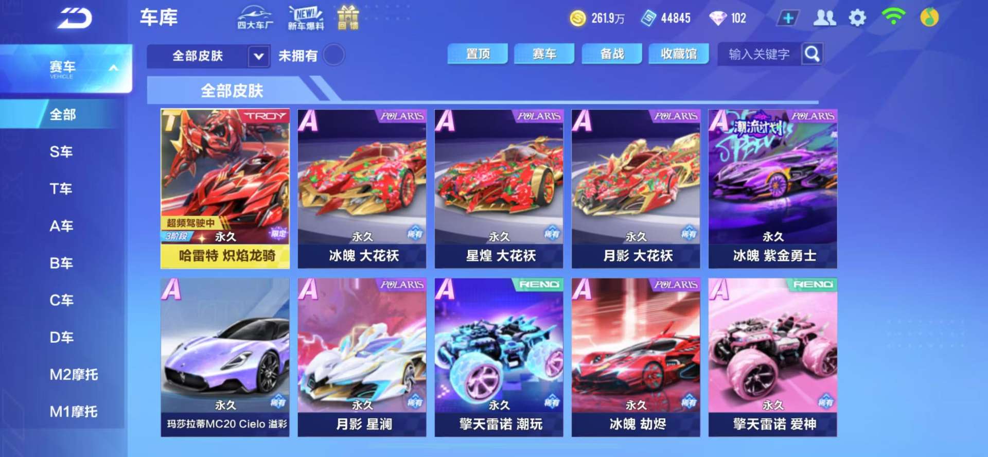 BZ643389 【双强联赛顶级皮肤-S幻星(冰晶),S追光者/永久T车-鸭宝超人/魔法套装-龙吟男装/宠物-竞速道具俱全/男女多套装服饰】 A车数量46 游戏等级82 车皮肤数量12 T车数量1 【否】 【可二次实名】 【永久包赔】 【安卓QQ】 稀有车型2 稀有永久A车2 永久T车1 稀有车型:双生战神,追光者; 稀有永久A车:龙珏雷诺,幻星; 永久T车:鸭宝超人;