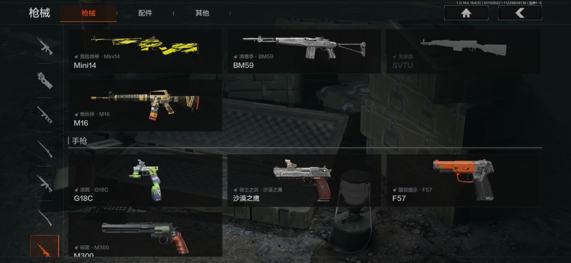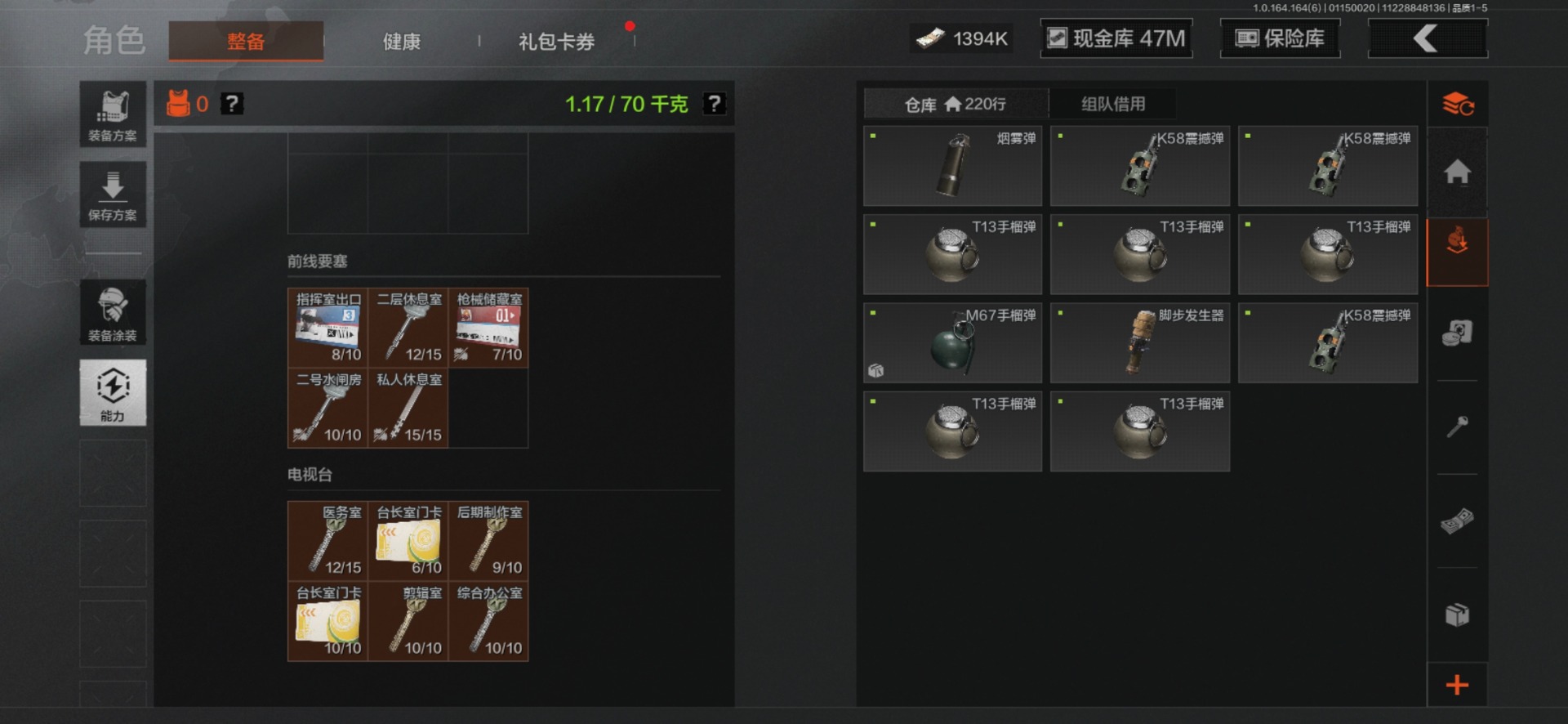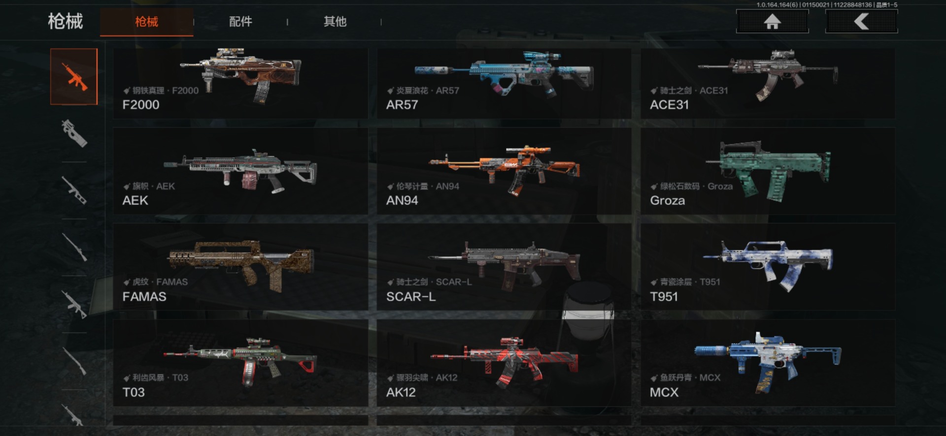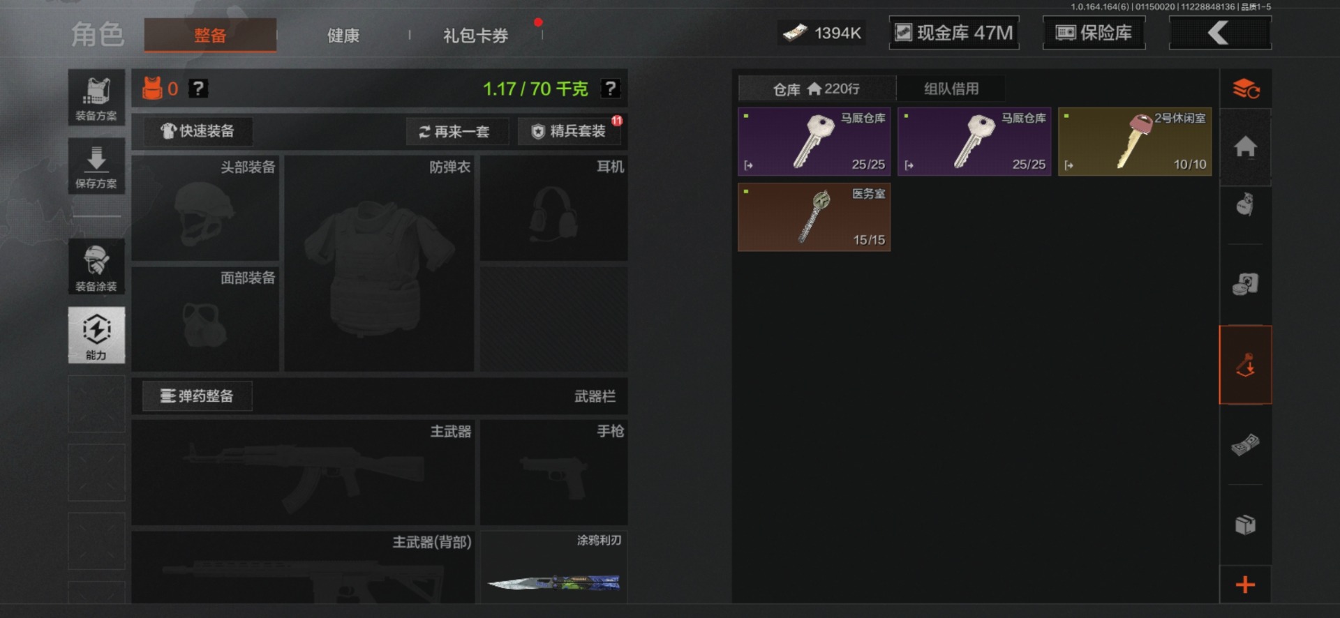 AQ393安Q-可二次-仓库价值:2.2M 科恩币: 525170 3刀皮: S-07折刀 工兵铲 来战·开山刀 金枪: 伦琴幻影· FAL 骑士之剑·VSS 武器: 来战·AKM 自喷网络·H416 北国内卫·MDR 鱼跃丹青·AK102 战术大师·AK74N 骑士之剑·AKS74U 火力倾泻·AUG 战术大师·AEK 幻象·FAMAS 典礼武器·MCX 利齿风暴·MPX 典礼武器·14
