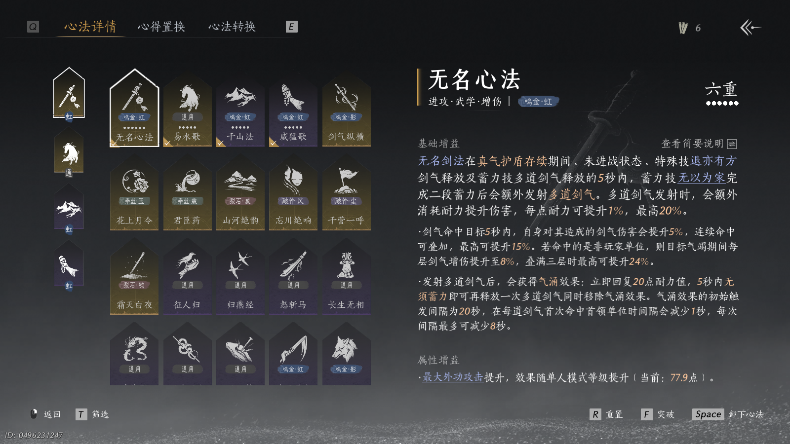 XY-076645101 风华值39611 武林造诣(鹅)34120 已用八音窍数量8 未用八音窍数量0 等级100 角色性别【文本】男 【绝境】 【无换绑CD】 【未注册】 【男】 【是】 【是】