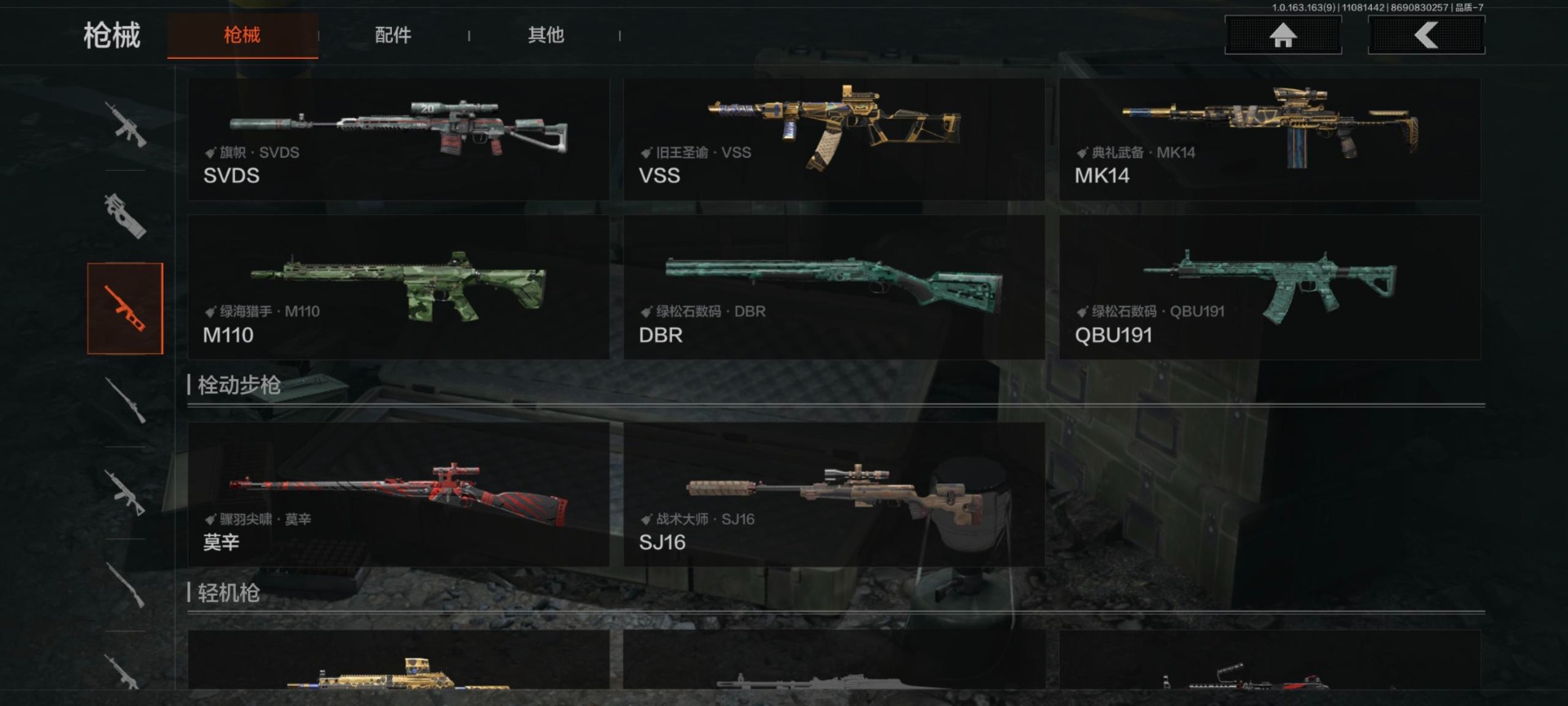 DSTW1595安卓Q-等级30-仓库价值555.1k科恩币328864 【套装】 王国卫队礼装 ·轻装 都市夜影套装 台风I竞技运动服 【近战武器】 急袭弯刀 【枪皮】 旗帜·AEK 旧王圣谕·QBZ191 冬夜·AK12 利齿风暴·MPX 旧王圣谕·VSS 骑士之剑·VSS 冰河碎影·14