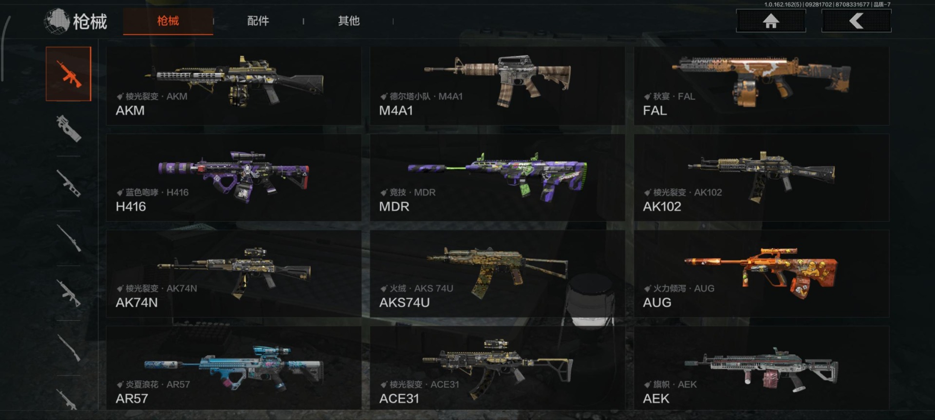 [13608797]库存价值379962 4近战武器 1金套装 4金枪皮 可修改实名 【柯恩币数量】:19.0 【角色装扮(金)】:使徒·欧瑞恩 【近战武器】:来战·开山刀,工兵铲,涂鸦利刃,急袭弯刀 【金色枪皮】:告丧夜曲·AUG,告丧夜曲·AR57,利齿风暴·MPX,冰河碎影·14 【紫色枪皮】:炎夏浪花·H416,快乐游戏·M110,快乐游戏·MPX,边缘矢量·MPX,伦琴计量·Vector45,骤羽尖啸·AK12,利齿风暴·T03,利齿风暴·T79,来战·AK74N,巅峰·M4A1,涂鸦·AK102,湖冰倒影·ACE31,湖冰倒影·MP5,涂绘猎人·AR57[13966792]库存价值35.5 5近战武器 1金套装 6金枪皮 可修改实名 【柯恩币数量】:31965【角色装扮(金)】:火绒·塔莉娅【近战武器】:来战·开山刀,S-07折刀,寒牙手刺,工兵铲,急袭弯刀【金色枪皮】:骑士之剑·VSS,竞技·FAL,旗帜·AEK,棱光裂变·QBU191,利齿风暴·MPX,蓝色咆哮·H416【紫色枪皮】:火绒·AK12,旗帜·SVDS,旗帜·RPK16,棱光裂变·莫辛,骑士之剑·AKS74U,竞技·AUG,快乐游戏·AK102,边缘矢量·AX50,典礼武备·14,超越自我·Vector9,超越自我·AR30,鱼跃丹青·DT MDR,利齿风暴·T03,利齿风暴·T79,来战·AKM,来战·AK74N,竞技·M4A1,焰色反应·M110【角色装扮(紫)】:使徒·瑞文,都市夜影套装