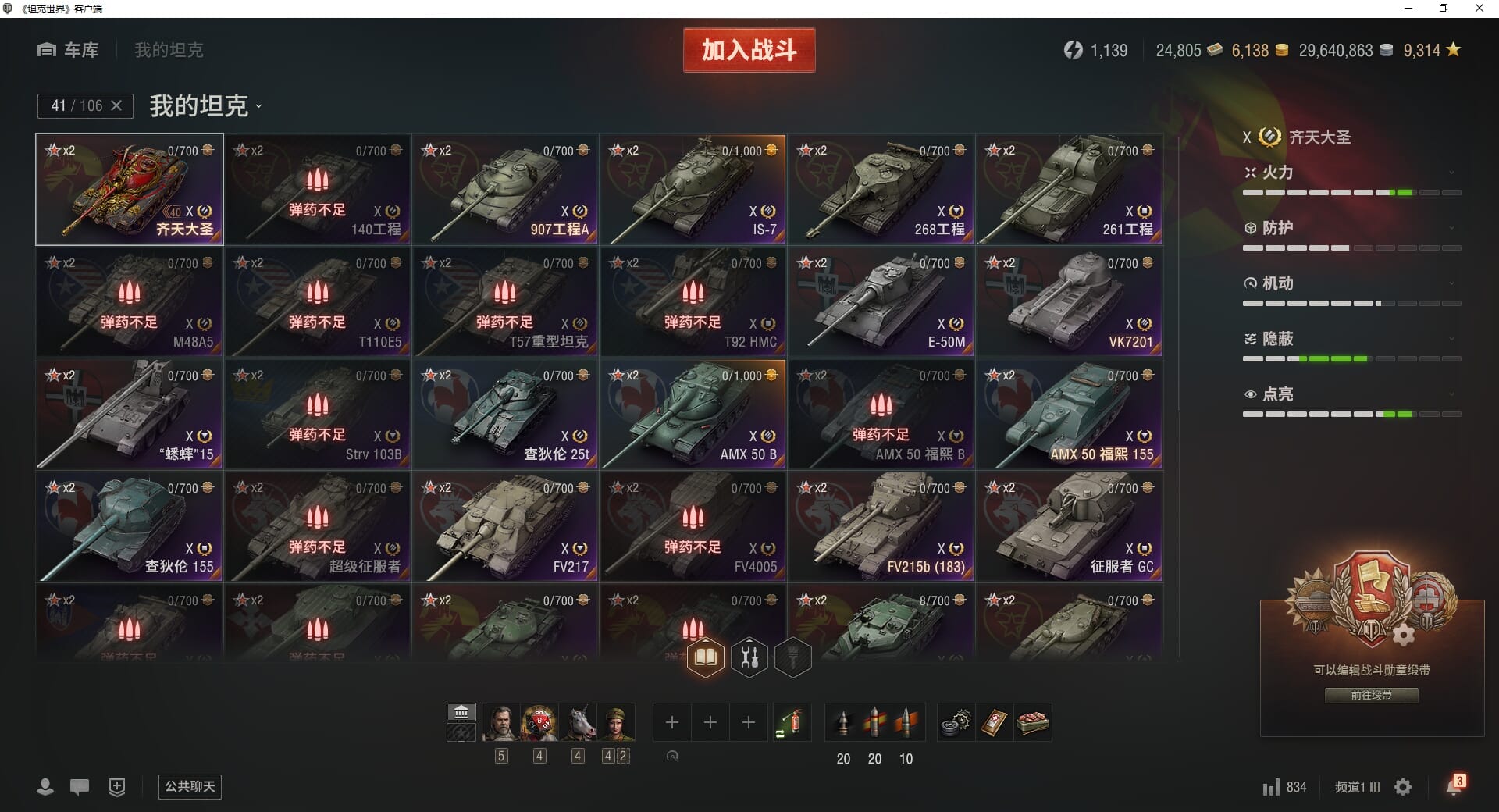 TE903//【精品账号/齐天大圣】/全部坦克99/十一级坦克1/BZ-79/十级坦克41/九级坦克8/八级坦克30/59式/天蝎/斯柯达T56/冈萨洛/十级/140工程/905工程A/IS-7/268工程/261工程/M48A5/T110E5/T57重型坦克/T92HMC/E-50M/VK7201/蟋蟀15/Strv103B/查狄伦25t/AMX50B/AMX50福熙B/AMX50福熙155/查狄伦155/超级征服者/FV217/FV4005/FV215b183/征服者GC/TVPT50/五式重战/121B/1115A/BZ-75/T-100LT/M-V-Y/T110E4/豹I/GWE系列/KRV/AMX13105/PM40/65/弥诺陶洛斯/Vz.55/STB-1/试验型重战车/债券24805/金币6138/银币2960万/全局7314/乘员575/服务承诺: