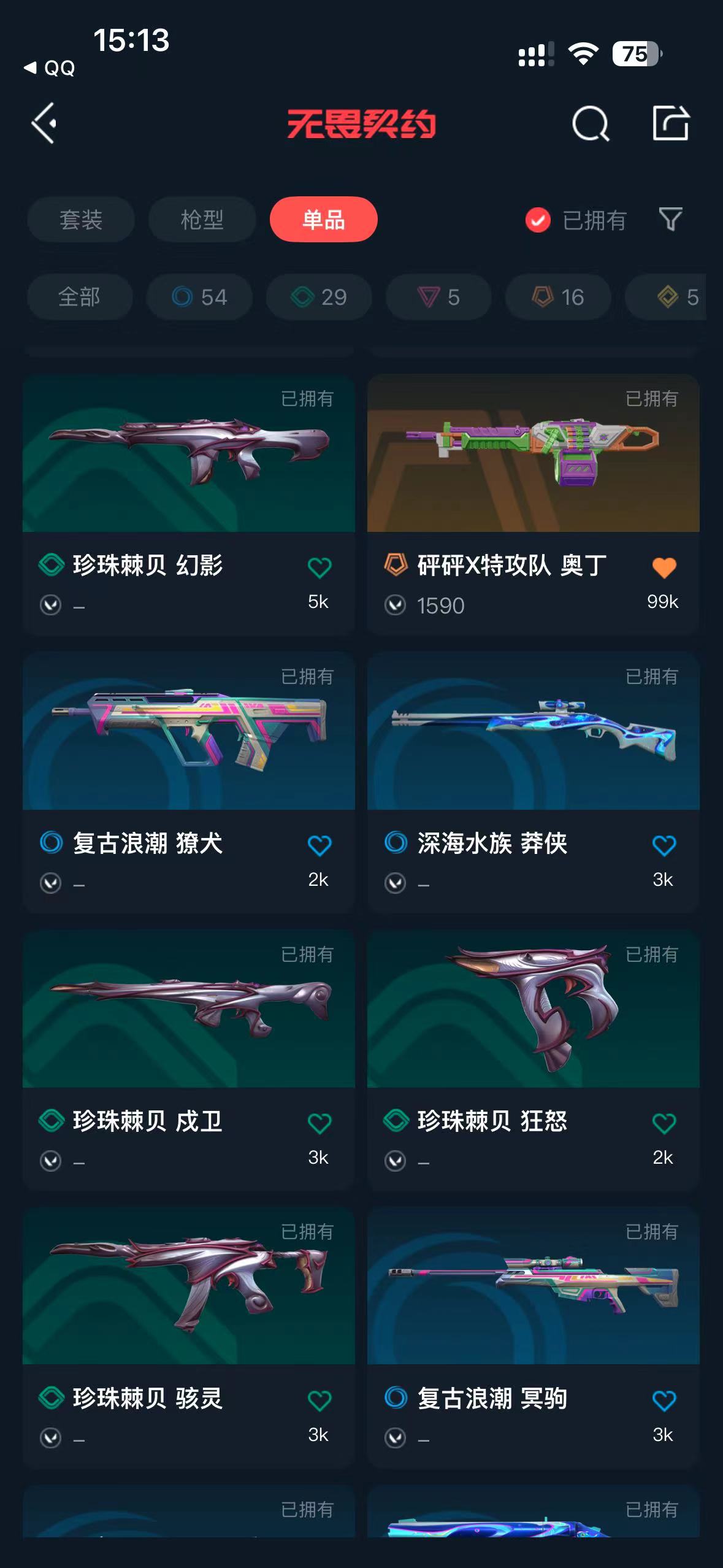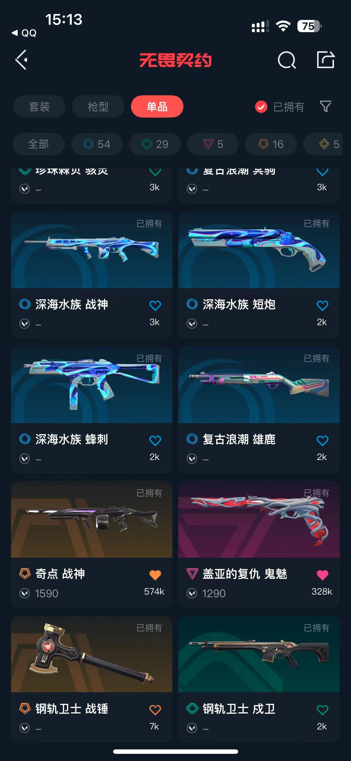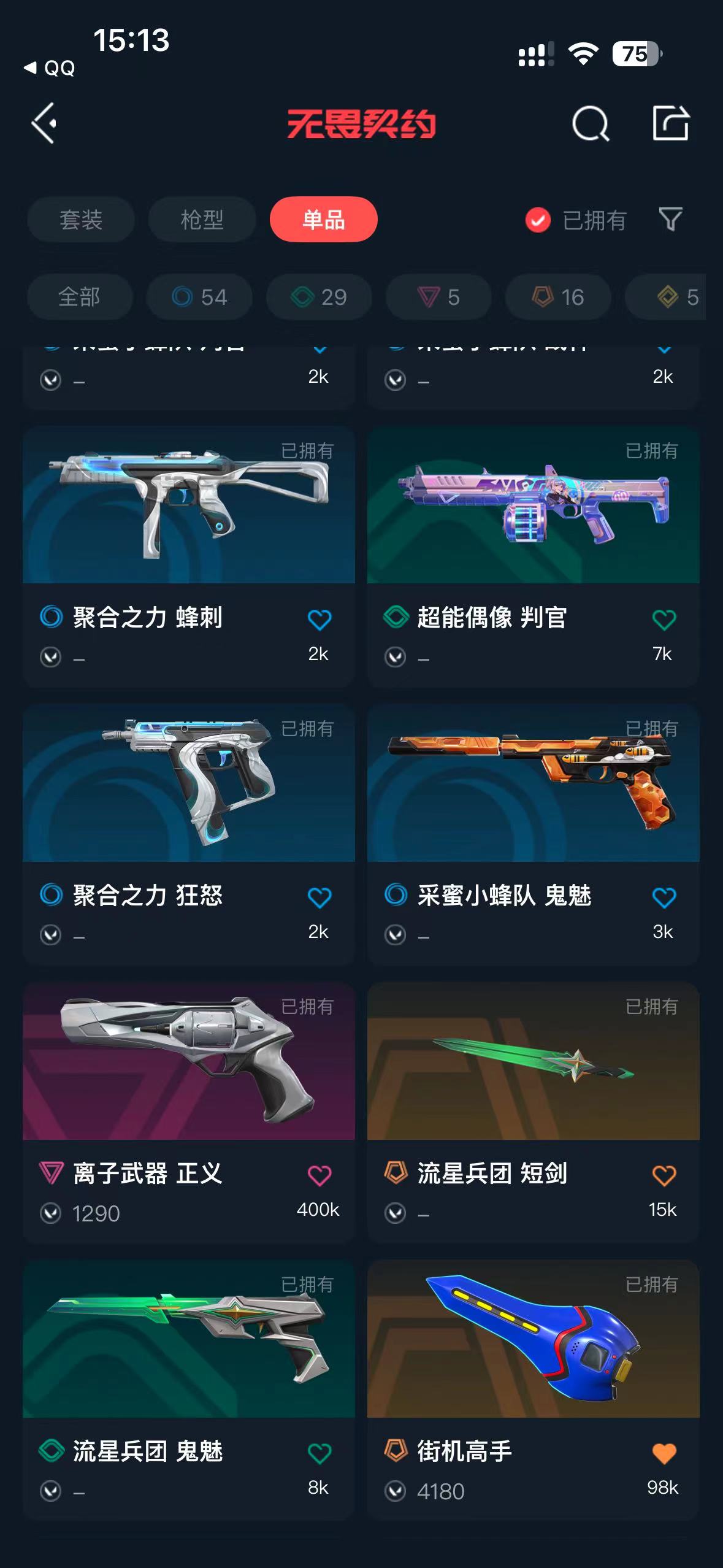 【套装】:2024全球冠军赛套装,2023全球冠军赛套装,《英雄联盟:双城之战》套装,紫阙金琅套装,无畏启程套装【英雄】:幻棱,炼狱,维斯,暮蝶,钛狐,壹决,铁臂,捷风,雷兹,幽影,不死鸟,贤者,猎枭,蝰蛇,零,芮娜,奇乐,尚勃勒,霓虹,斯凯,夜露,星礈,K/O,海神,盖可,黑梦,钢锁【近战 武器】:近战武器-2024全球冠军赛 战刀,近战武器-2023全球冠军赛 苦无,近战武器-合金战车 军刀,近战武器-弧光异彩 军刀,近战武器-金琅斧【狂徒】:狂徒-2023全球冠军赛,狂徒-混沌序曲,狂徒-双城之战,狂徒-RGX 11z Pro,狂徒-掠影,狂徒-紫阙金琅,狂徒-弧光异彩【幻影】