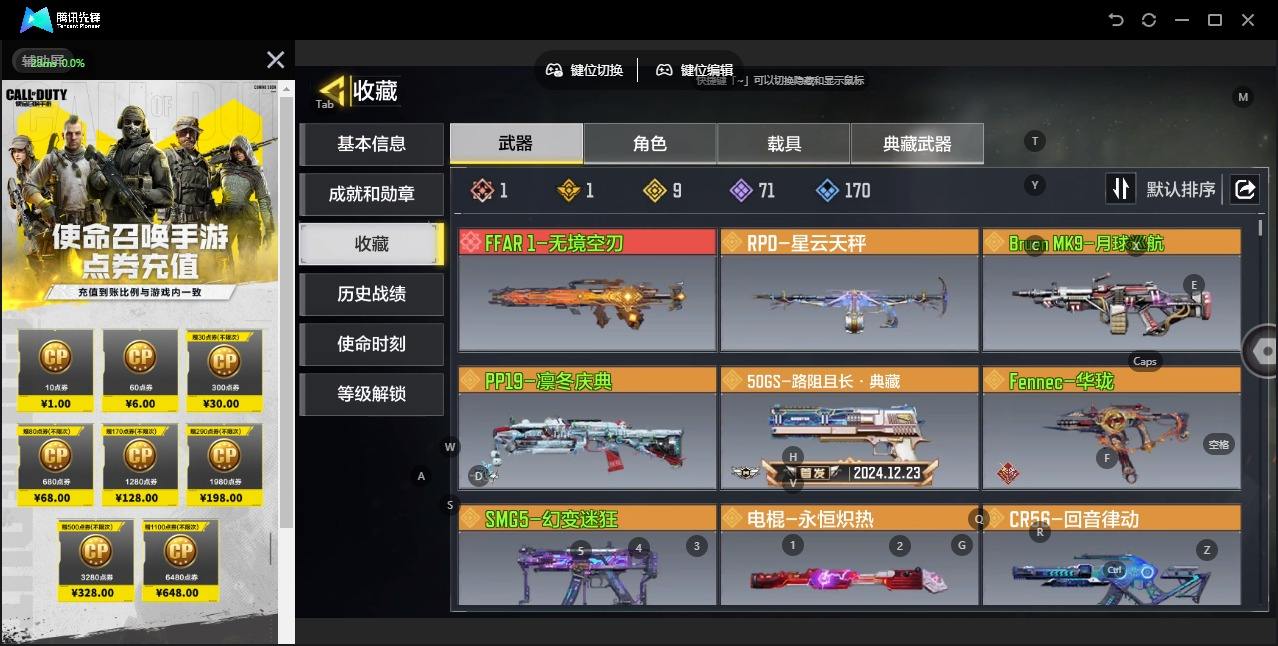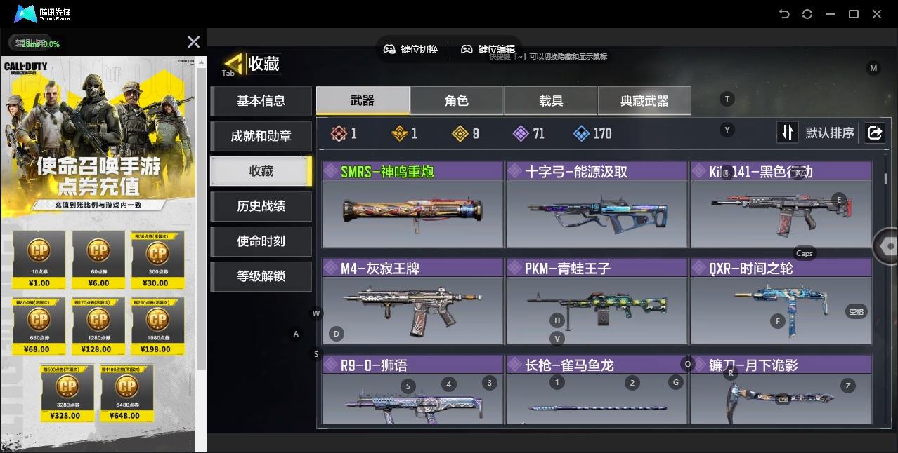 商品描述:[16102319]125级 1神话 1典藏 9传说 71史诗 段位青铜 可二次 可修改实名 【典藏枪械】50GS-路阻且长·典藏【神话枪械】FFAR 1-无境空刃【传说枪械】Bruen MK9-月球巡航,RPD-星云天秤,Fennec-华珑,CR56-回音律动,电棍-永恒炽热,SMG5-幻变迷狂,KRM262-深红地隙,PP19-凛冬庆典