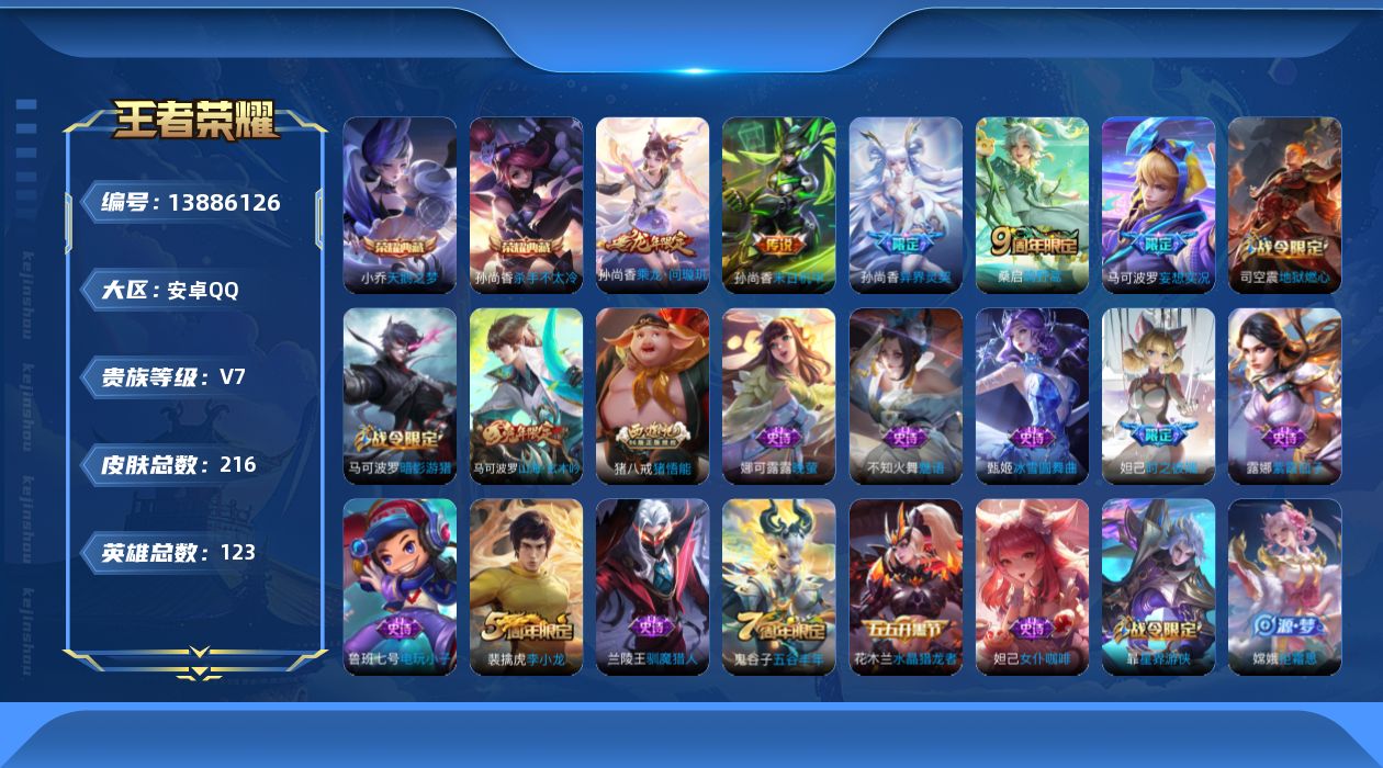 营地号370453389-【QQ(安卓)】贵族7-贵族积分3万-127英雄-248皮肤-100铭文