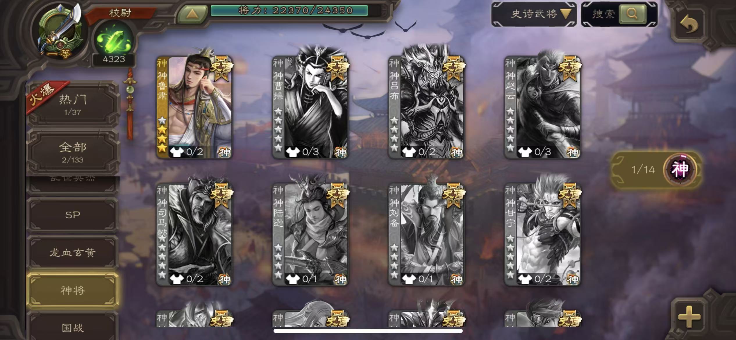 商品描述:校尉神鲁肃戏子4300将魂三卡