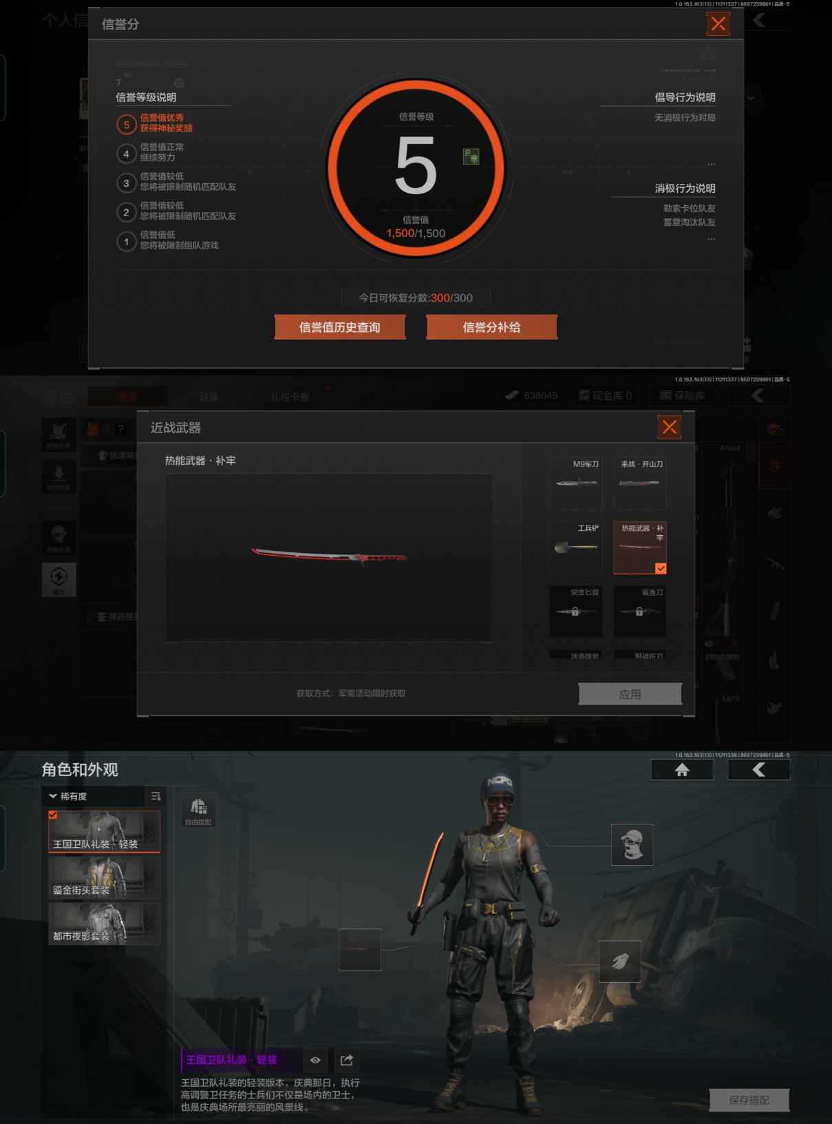 DSTW1595安卓Q-等级30-仓库价值555.1k科恩币328864 【套装】 王国卫队礼装 ·轻装 都市夜影套装 台风I竞技运动服 【近战武器】 急袭弯刀 【枪皮】 旗帜·AEK 旧王圣谕·QBZ191 冬夜·AK12 利齿风暴·MPX 旧王圣谕·VSS 骑士之剑·VSS 冰河碎影·14