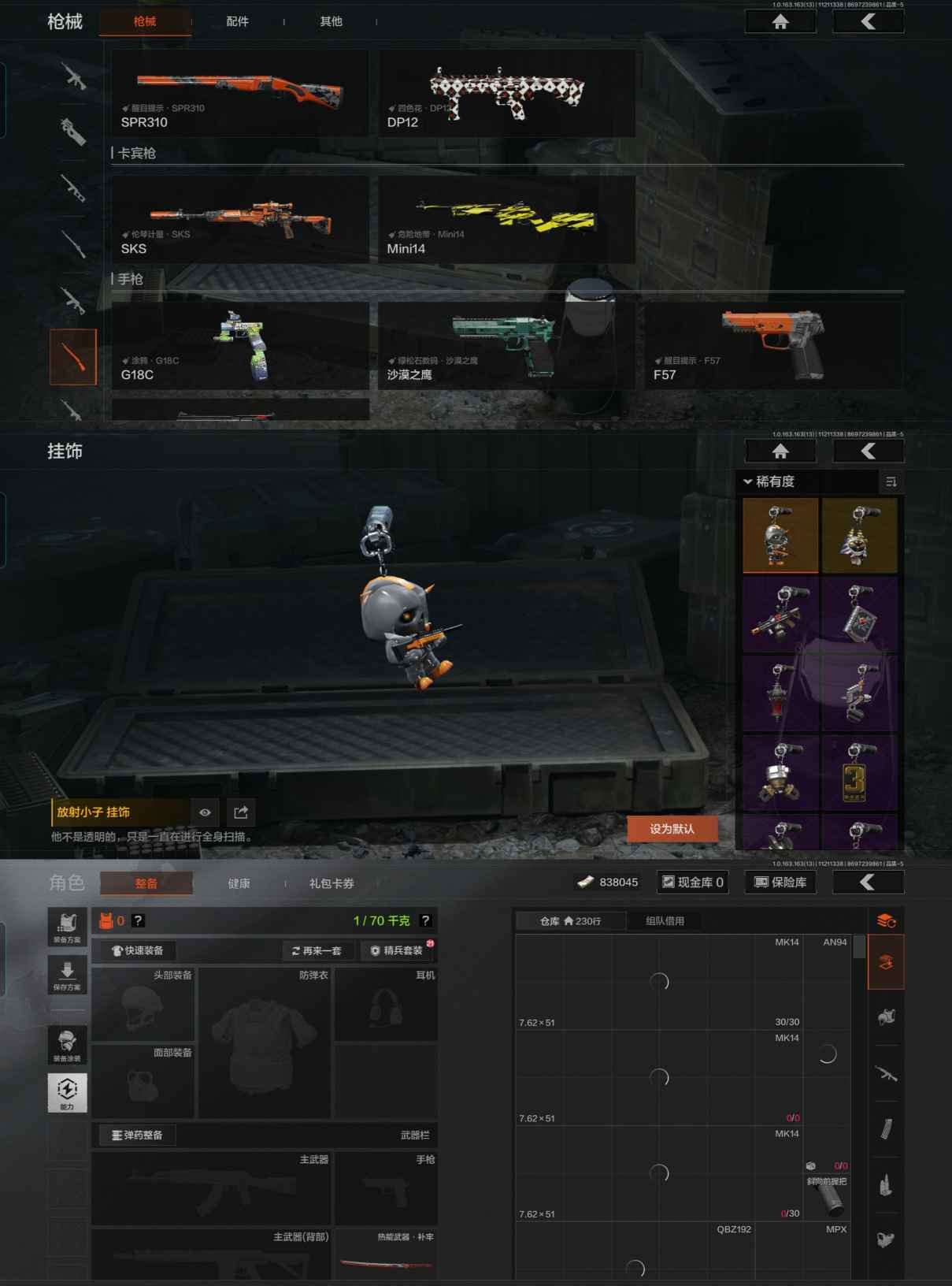 [13608797]库存价值379962 4近战武器 1金套装 4金枪皮 可修改实名 【柯恩币数量】:19.0 【角色装扮(金)】:使徒·欧瑞恩 【近战武器】:来战·开山刀,工兵铲,涂鸦利刃,急袭弯刀 【金色枪皮】:告丧夜曲·AUG,告丧夜曲·AR57,利齿风暴·MPX,冰河碎影·14 【紫色枪皮】:炎夏浪花·H416,快乐游戏·M110,快乐游戏·MPX,边缘矢量·MPX,伦琴计量·Vector45,骤羽尖啸·AK12,利齿风暴·T03,利齿风暴·T79,来战·AK74N,巅峰·M4A1,涂鸦·AK102,湖冰倒影·ACE31,湖冰倒影·MP5,涂绘猎人·AR57[13966792]库存价值35.5 5近战武器 1金套装 6金枪皮 可修改实名 【柯恩币数量】:31965【角色装扮(金)】:火绒·塔莉娅【近战武器】:来战·开山刀,S-07折刀,寒牙手刺,工兵铲,急袭弯刀【金色枪皮】:骑士之剑·VSS,竞技·FAL,旗帜·AEK,棱光裂变·QBU191,利齿风暴·MPX,蓝色咆哮·H416【紫色枪皮】:火绒·AK12,旗帜·SVDS,旗帜·RPK16,棱光裂变·莫辛,骑士之剑·AKS74U,竞技·AUG,快乐游戏·AK102,边缘矢量·AX50,典礼武备·14,超越自我·Vector9,超越自我·AR30,鱼跃丹青·DT MDR,利齿风暴·T03,利齿风暴·T79,来战·AKM,来战·AK74N,竞技·M4A1,焰色反应·M110【角色装扮(紫)】:使徒·瑞文,都市夜影套装