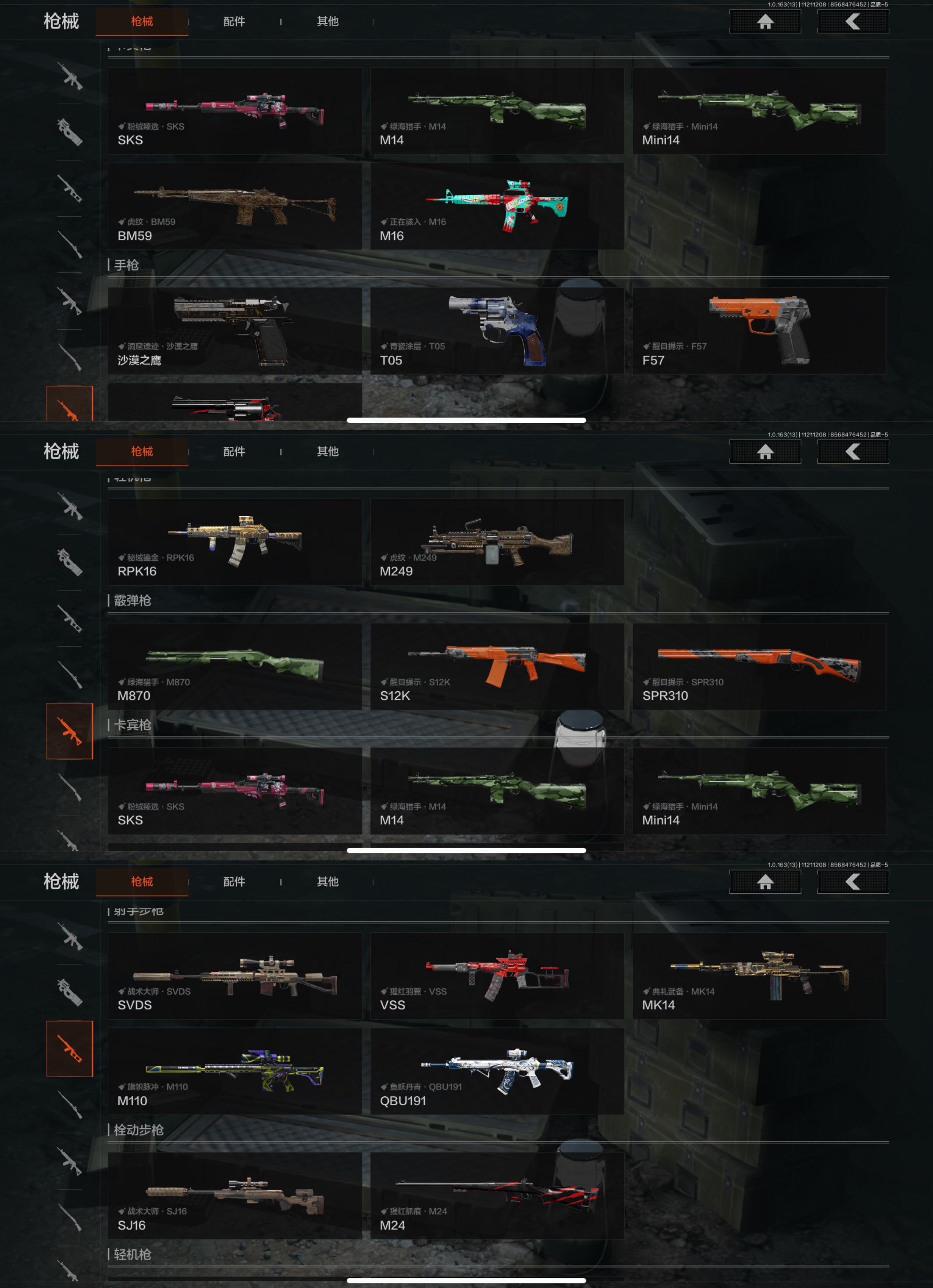 呀16:仓库价值:58.1M 科恩币:400350 4金枪19紫 机密文件DSTW1595安卓Q-等级30-仓库价值555.1k科恩币328864 【套装】 王国卫队礼装 ·轻装 都市夜影套装 台风I竞技运动服 【近战武器】 急袭弯刀 【枪皮】 旗帜·AEK 旧王圣谕·QBZ191 冬夜·AK12 利齿风暴·MPX 旧王圣谕·VSS 骑士之剑·VSS 冰河碎影·14